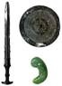 弥生時代(後期)を考察する時、注目されるものに祭器があります。それを区分すると当時の文化圏が推定できます。九州、西日本は銅剣、銅矛、銅鏡、勾玉、これが後に「三種の神器」となります。 |