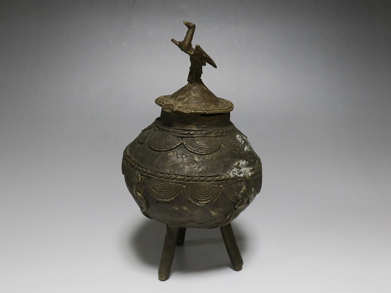 銅製 三つ足 鳥動物文 蓋物 (コートジボワール 20世紀前半) 商品番号:2661 10,000円