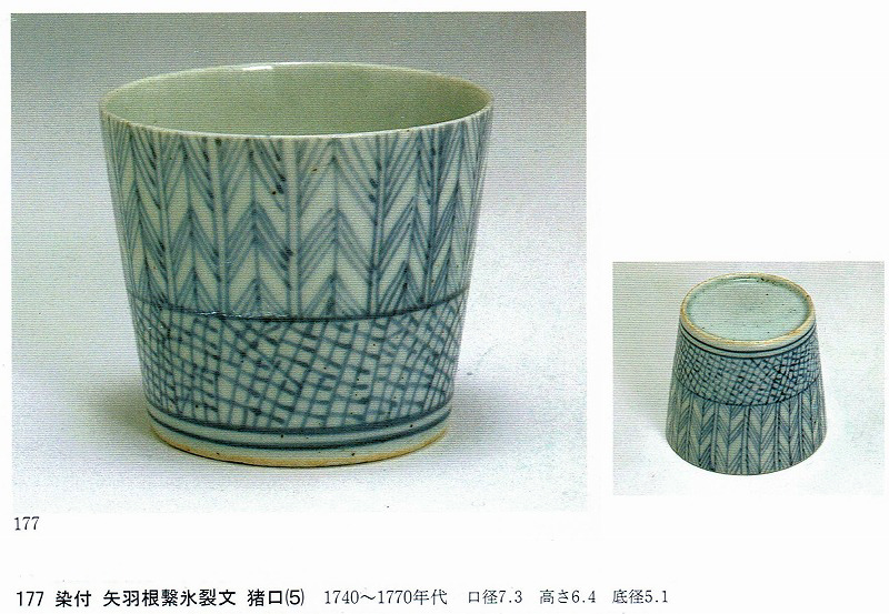 伊万里焼 染付 矢羽根 そば猪口