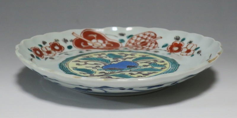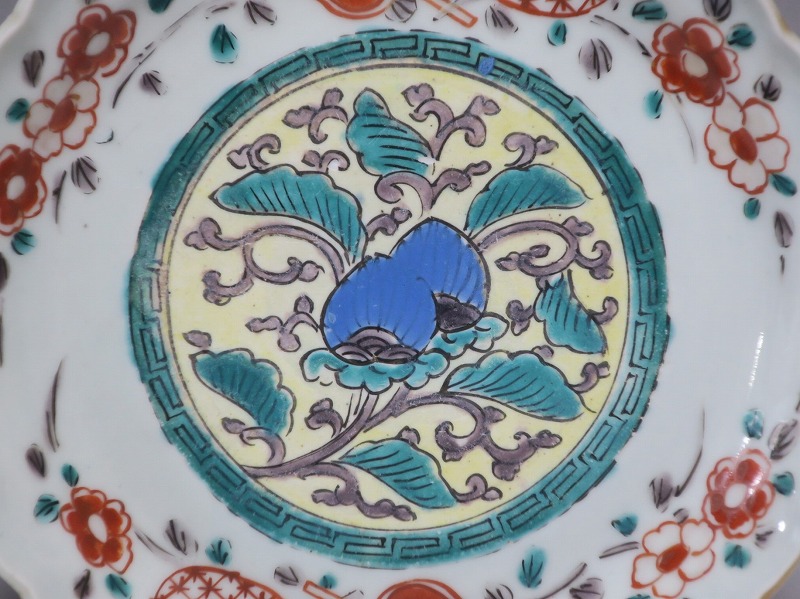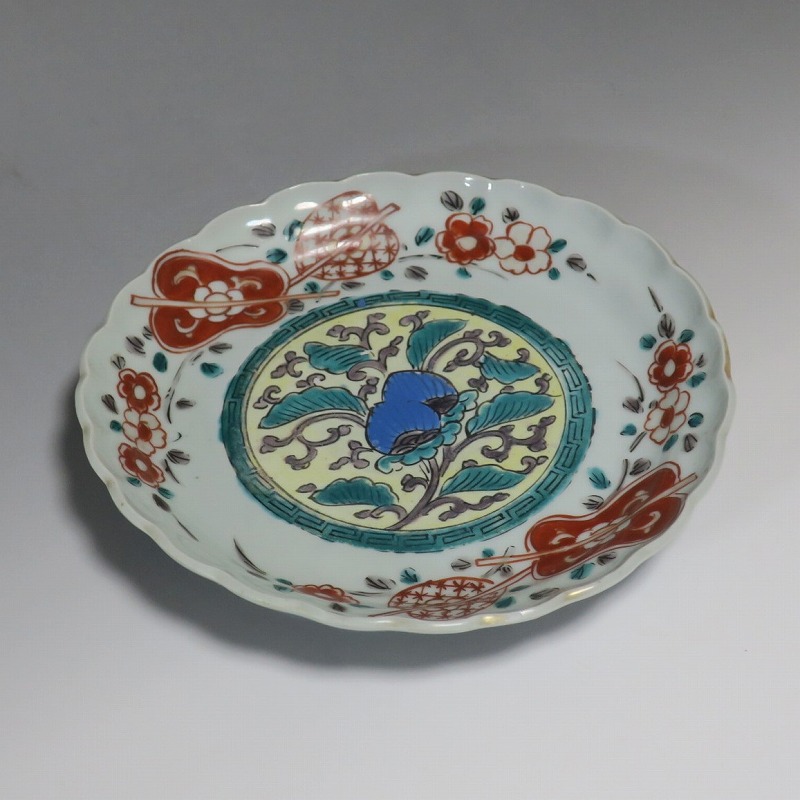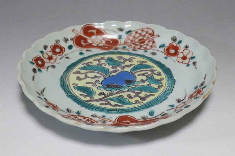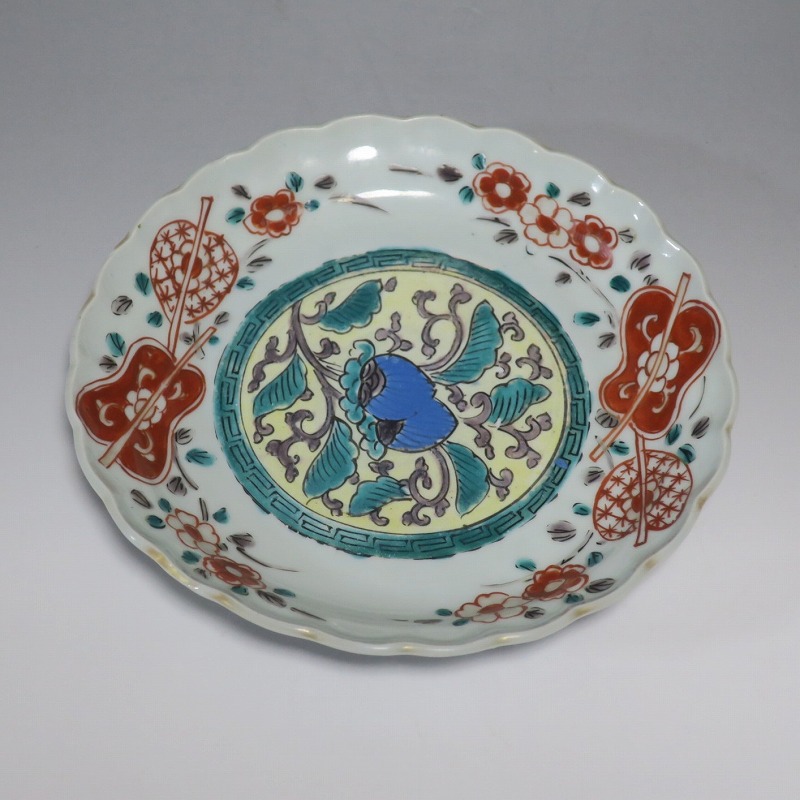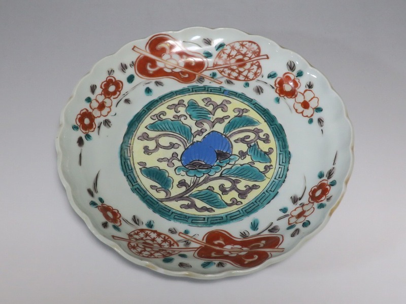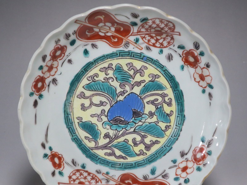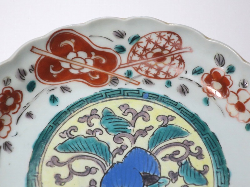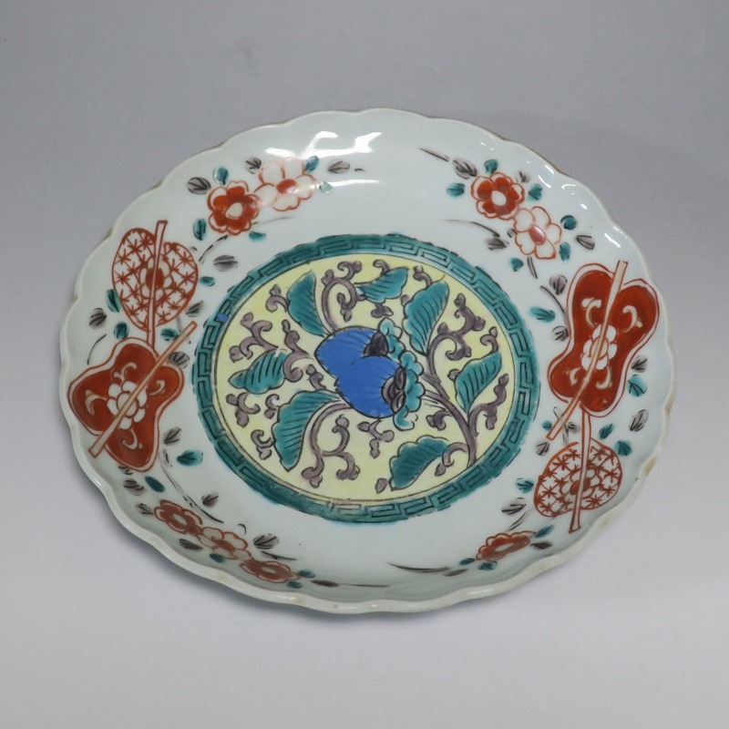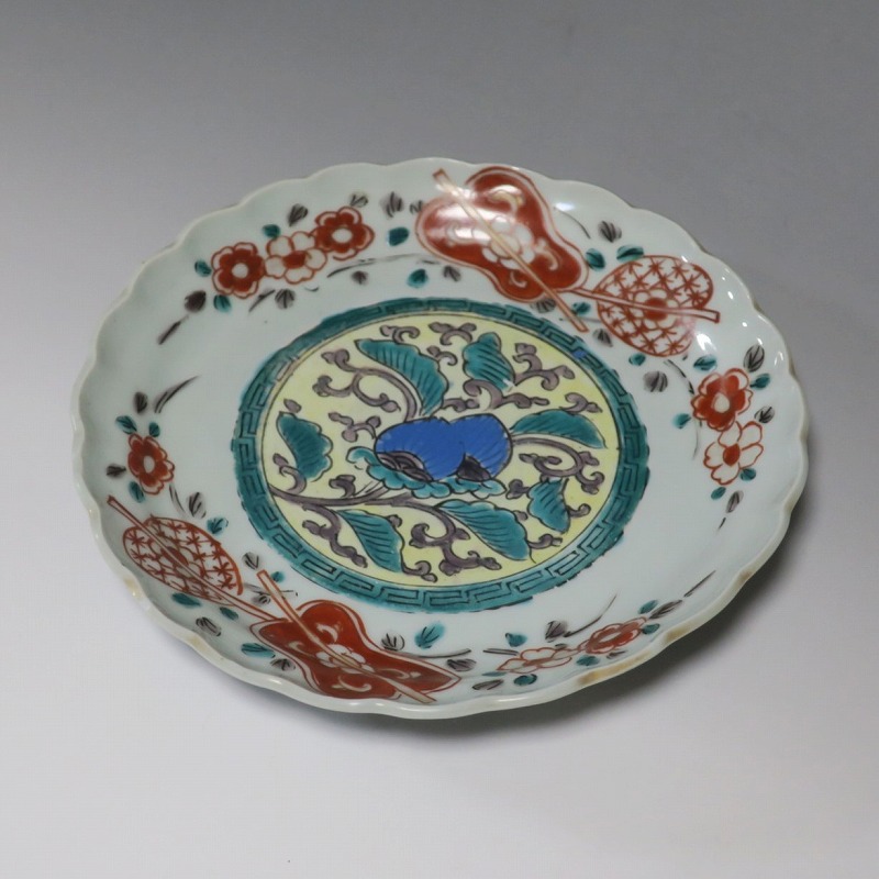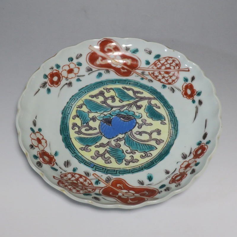 伊万里焼 色絵 葵 軍配文 六寸皿