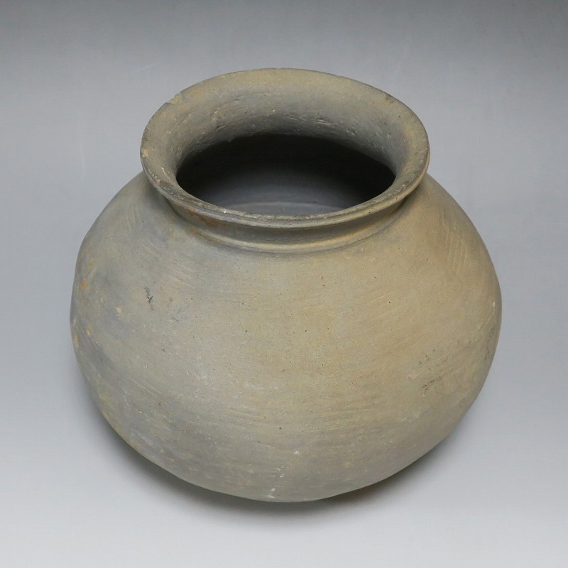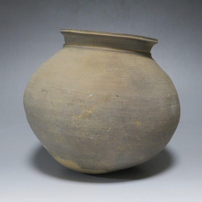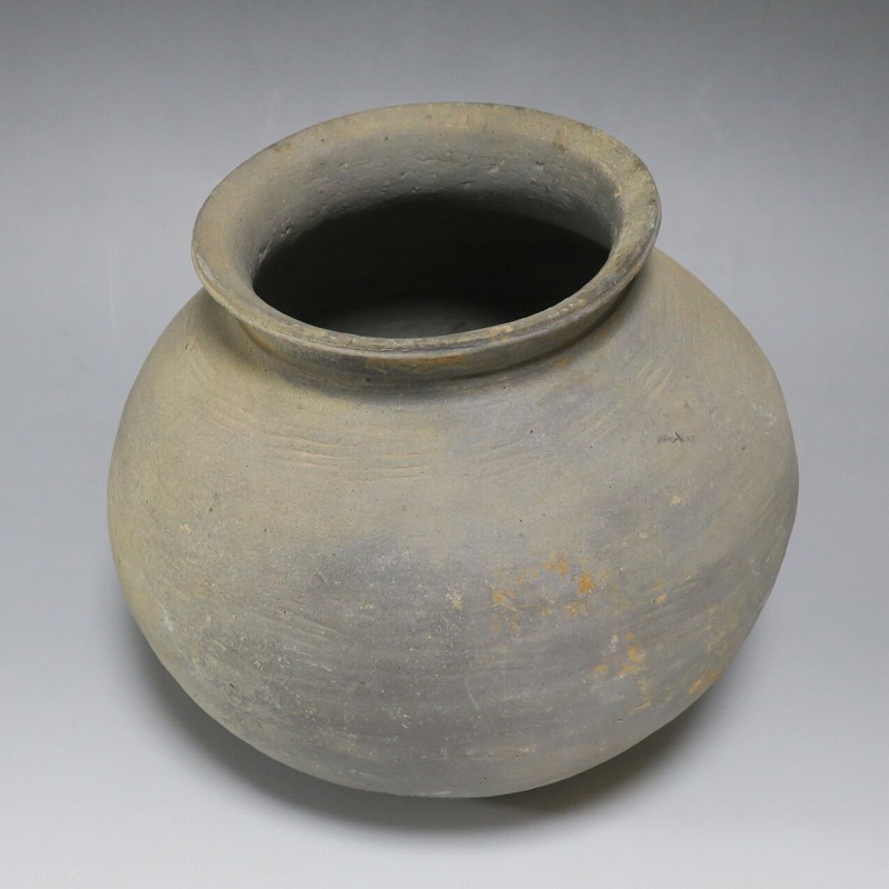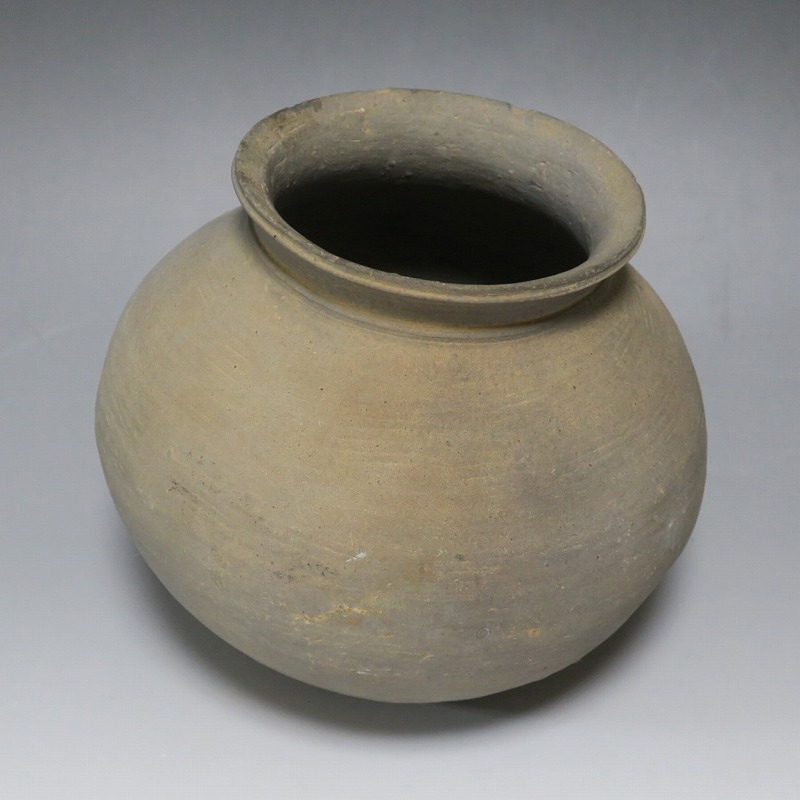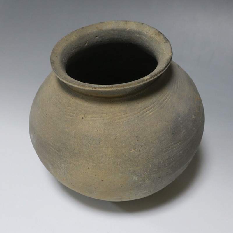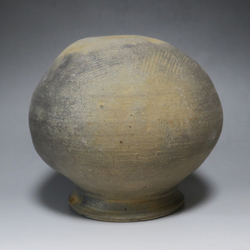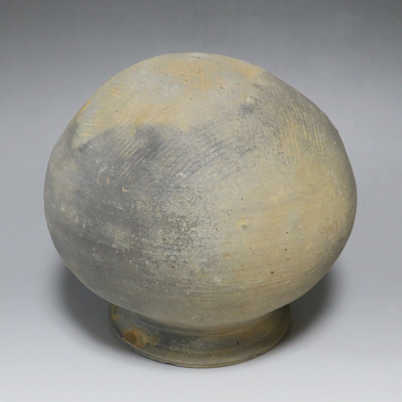 (三国時代 6世紀) 商品番号 3719 高さ 約17cm/胴径 約18.5cm/口径 約11cm 口辺に若干のソゲがありますが、総じて良い状態です。傷はありませんが、花を生ける際は落としをご使用ください。状態は写真でご確認ください。 須恵器は4世紀頃、朝鮮半島で焼き始められた硬質陶器(b器)で4世紀後半、日本に伝播しました。その多くは朝鮮半島南部の伽耶から輸入されたもので、5世紀中頃には日本列島でも生産が始まります。本品は6世紀に朝鮮半島南部、伽耶地方で製作された丸壺。祭器などに使用された作品です。シンプルな形をしているので花を活けると映えると思います。飾ると古代世界を身近に感じることができるでしょう。 | ||