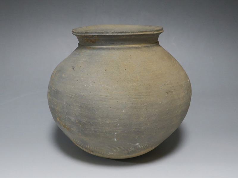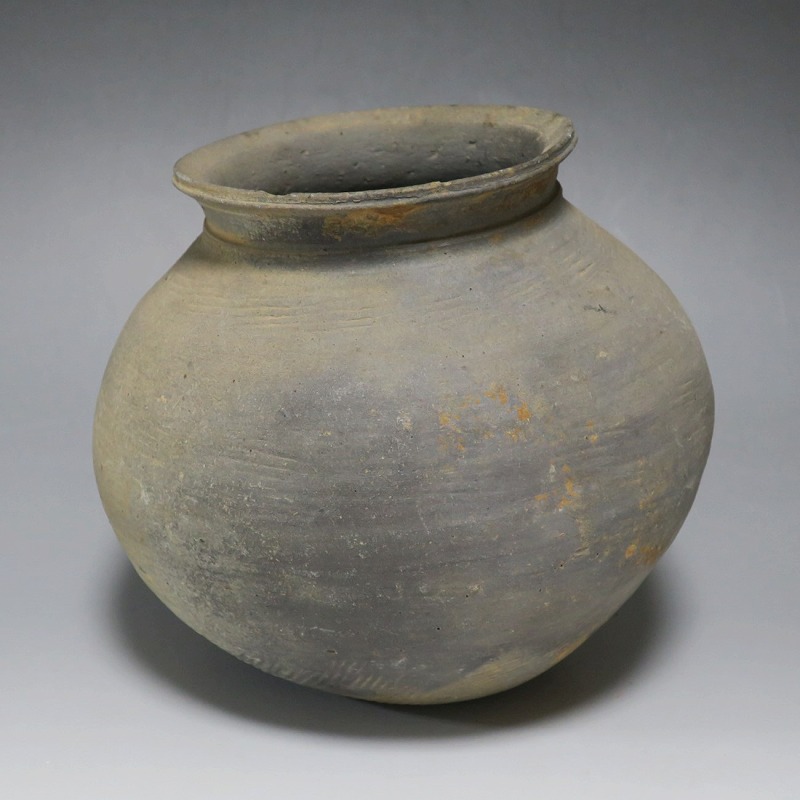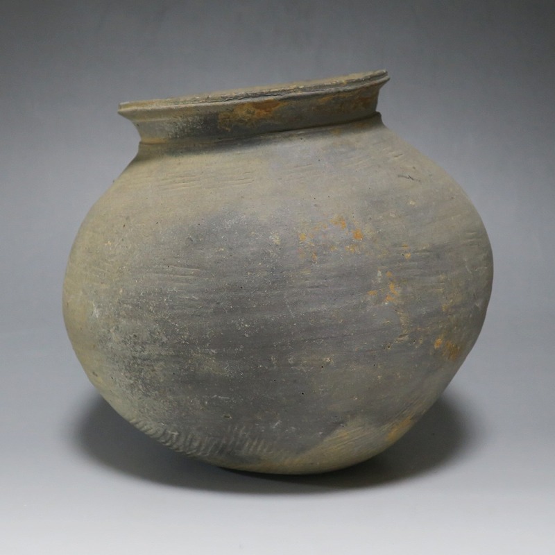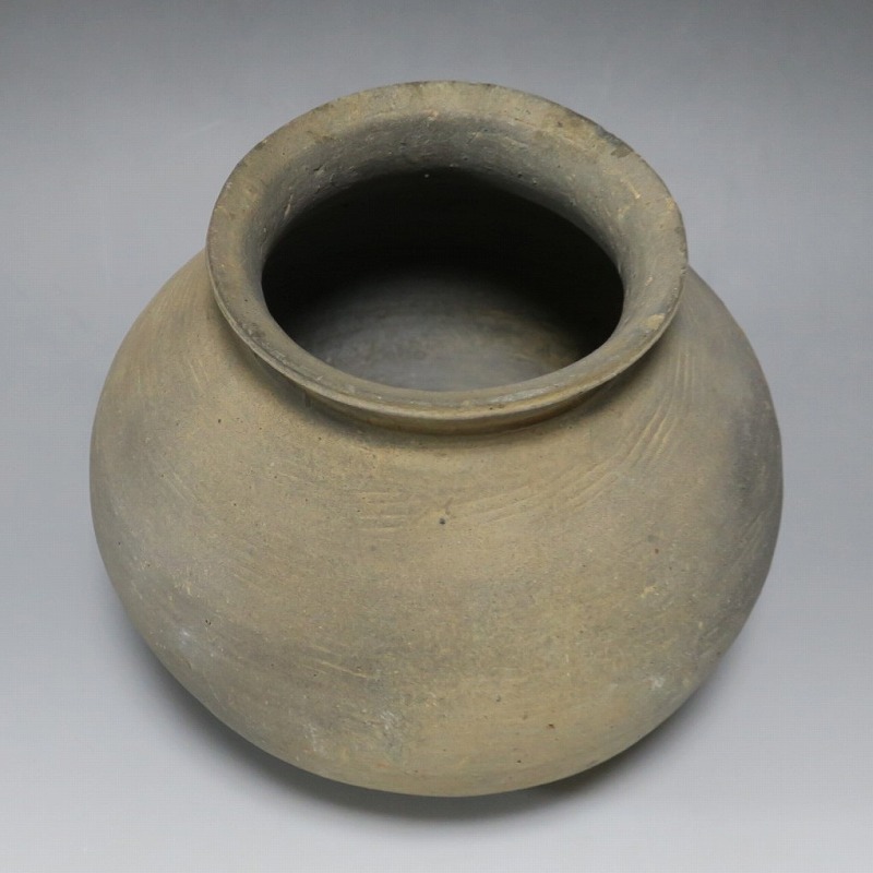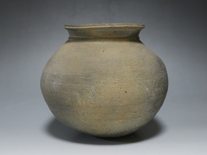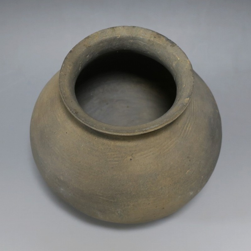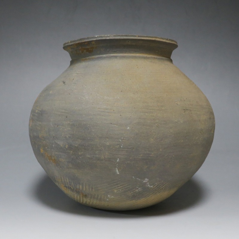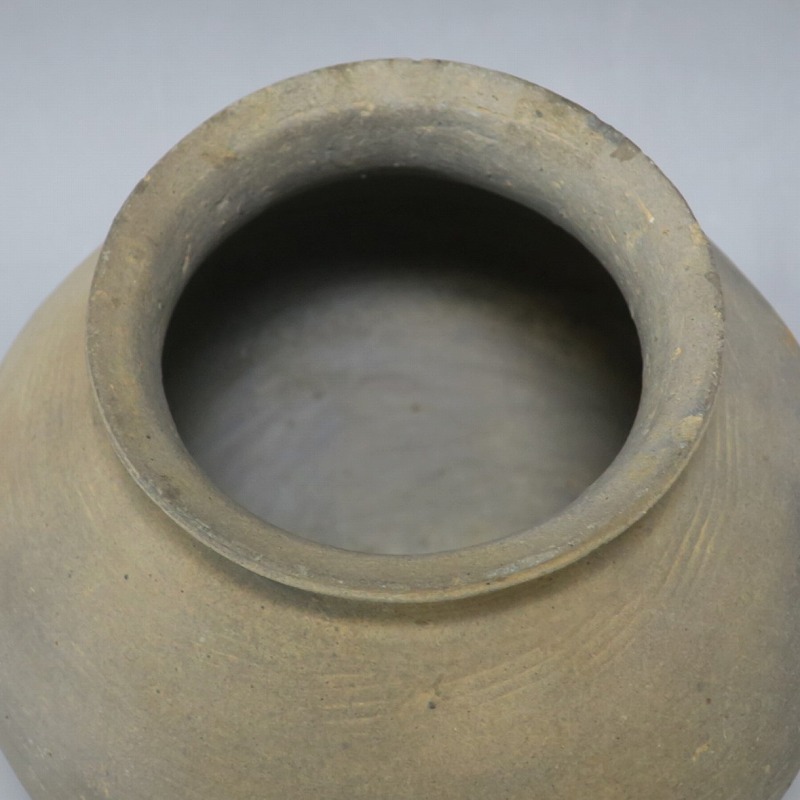(三国時代 6世紀) 商品番号 3719 高さ 約17cm/胴径 約18.5cm/口径 約11cm 口辺に若干のソゲがありますが、総じて良い状態です。傷はありませんが、花を生ける際は落としをご使用ください。状態は写真でご確認ください。 須恵器は4世紀頃、朝鮮半島で焼き始められた硬質陶器(b器)で4世紀後半、日本に伝播しました。その多くは朝鮮半島南部の伽耶から輸入されたもので、5世紀中頃には日本列島でも生産が始まります。本品は6世紀に朝鮮半島南部、伽耶地方で製作された丸壺。祭器などに使用された作品です。シンプルな形をしているので花を活けると映えると思います。飾ると古代世界を身近に感じることができるでしょう。 | ||