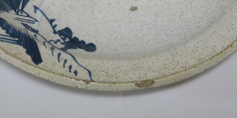 (明治時代 19世紀後半) 商品番号 3720_mingei 口径 約21.5cm/高さ 約3.5cm/高台径 約10cm 口辺に約3mm〜1cmの複数の欠け、裏の縁と見込みのいっちんの一部に釉ハゲがあります、状態は写真でご確認ください。 益子焼は江戸時代末期の嘉永年間、笠間藩(茨城県笠間市)の大塚啓三郎が創設した窯です。明治時代に入ると甕、火鉢、壷、皿などの生活雑器を作っていましたが、1927年、浜田庄司が花器・茶器などの民芸品を製作して、名声を博しました。本品は明治時代に作られた白釉の地にいっちん(筒書き)で富士山、染付で風景を描いた七寸皿。瀬戸焼などの石皿とは雰囲気が異なる東日本の焼物です。このような作品は壊れやすいので残存数が少なく貴重品。国焼ファンにお勧めの一品です。 | ||