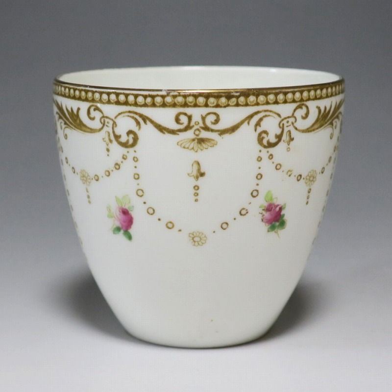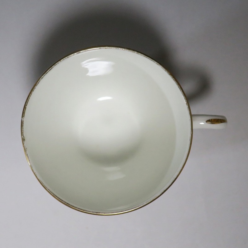 カップの口径 約7.7cm/高さ 約6.8cm 総じて良い状態です。状態は写真でご確認ください。 シェリーは1860年、英国スタフォードシャー州に創設された窯です。他の窯から腕利きの職人を登用、イギリスを代表する窯となりました。本品は金彩で細かな装飾を施した薔薇文のカップトリオ。ボーンチャイナの白と金彩のデザインが美しい作品です。裏に1925年から採用されているシェリーのバックスタンプがあります。本作を使って午後のお茶をお楽しみください。 | ||