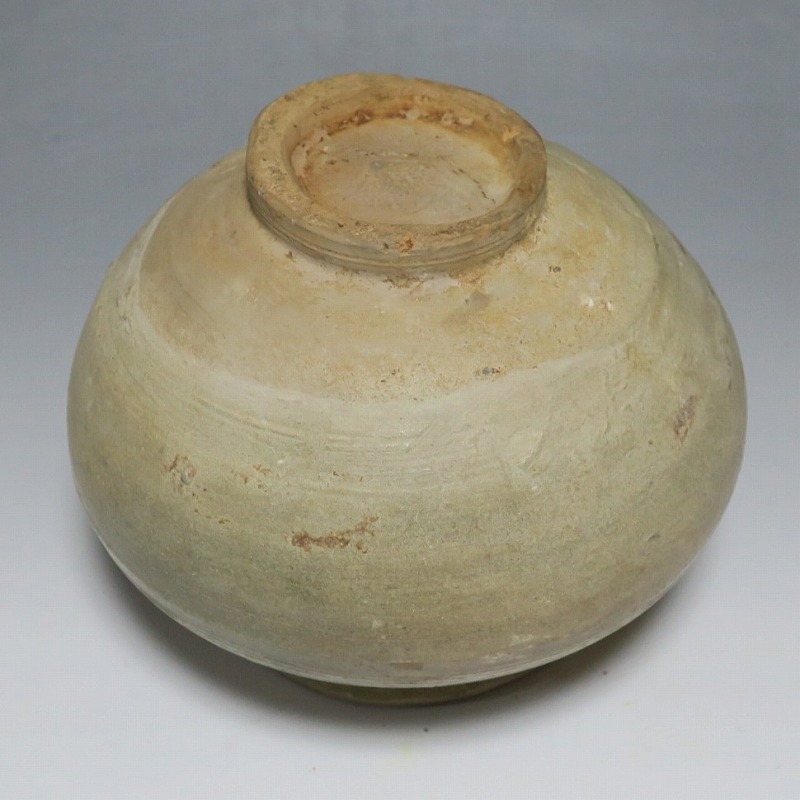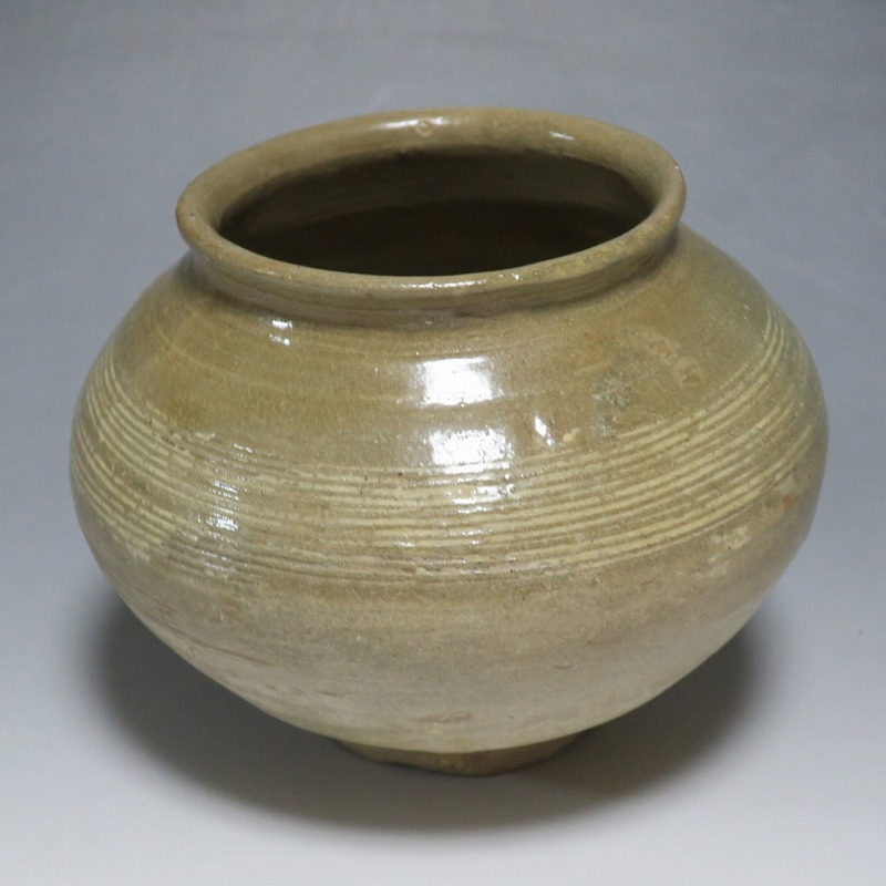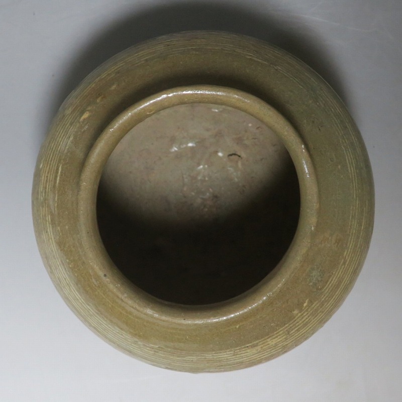 高さ 約13cm/胴径 約16cm 口辺の3分の1に共直し、発掘時の土がつき、高台や胴部に窯傷があり水が漏れます。花を生ける場合はオトシをご使用ください。状態は写真でご確認ください。 高麗から李朝に政権が交代した14世紀、粉青沙器と呼ばれる新しい様式の焼物が出現します。灰釉、刷毛目、井戸などの多様な粉青沙器は独特の味わいがあるので古美術品として人気があります。本品は16世紀に作られた象嵌輪線文壺。シンプルなデザインの作品です。李朝独自の造形、由宇町の変化のある味わい深い壺。インテリア、落としを使って花器としてお楽しみください。 | ||