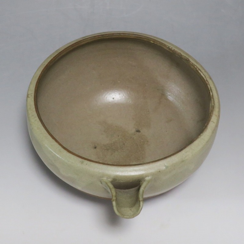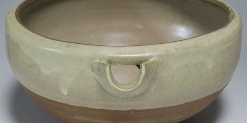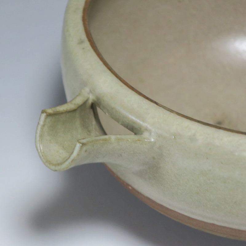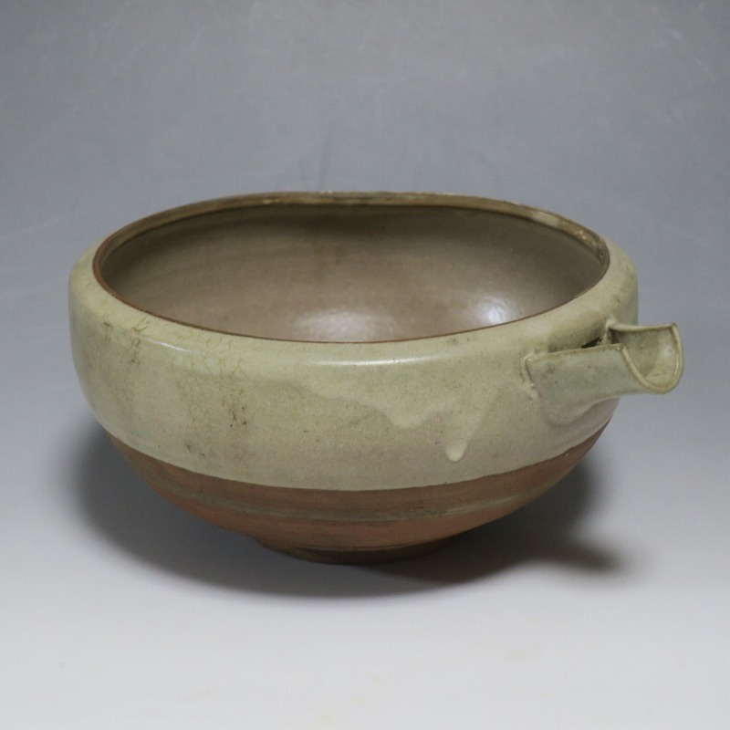 口径 約13.5cm/胴径 約15.3cm/横幅 約18cm 窯傷はありますが完品です。状態は写真でご確認ください。 丹波焼は、兵庫県今田町周辺で生産される焼物で鎌倉時代初期から現在まで窯が続いています。 江戸時代後期に窯が立杭へ移ると丹波焼の陶技も多彩になり、様々な意匠の作品が製作されるようになります。本品は幕末期前後に作られた灰釉の片口。酒屋などで量り売りをする時に使用された道具です。現在、片口は焼酎容器や料理鉢として使われています。本品を使って郷土料理などを食べると楽しいでしょう。 | ||