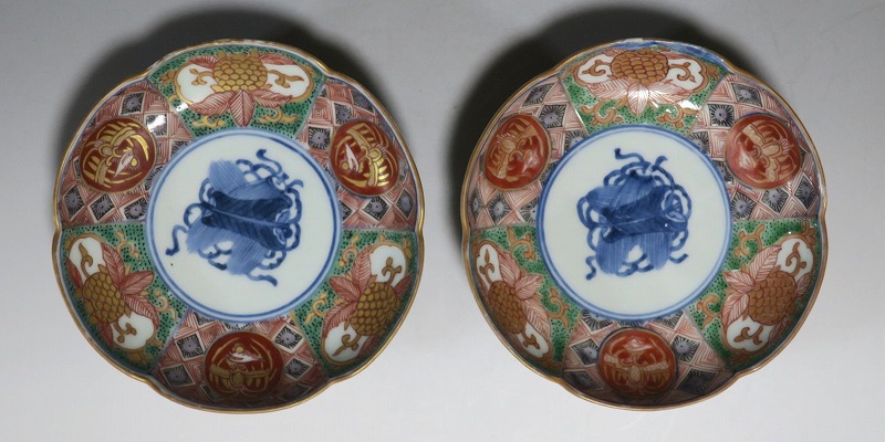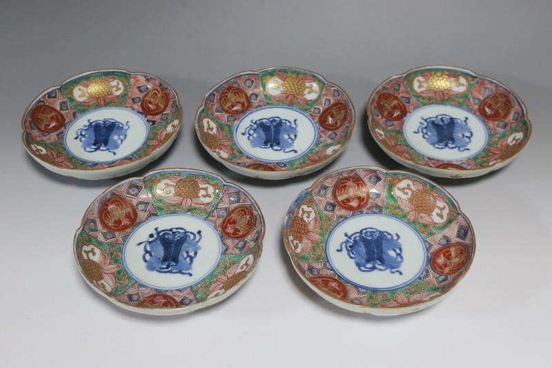 大聖寺焼 九谷 鳳凰 ザクロ文 四寸皿 5枚