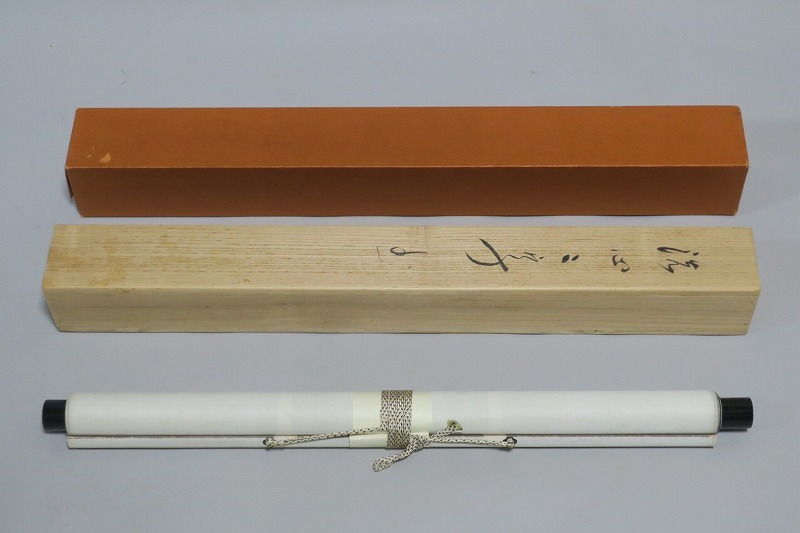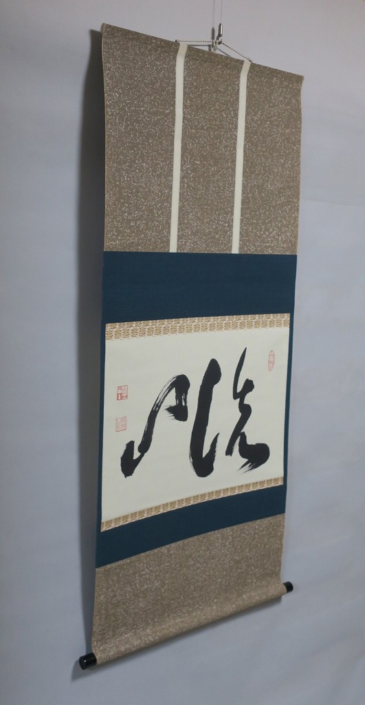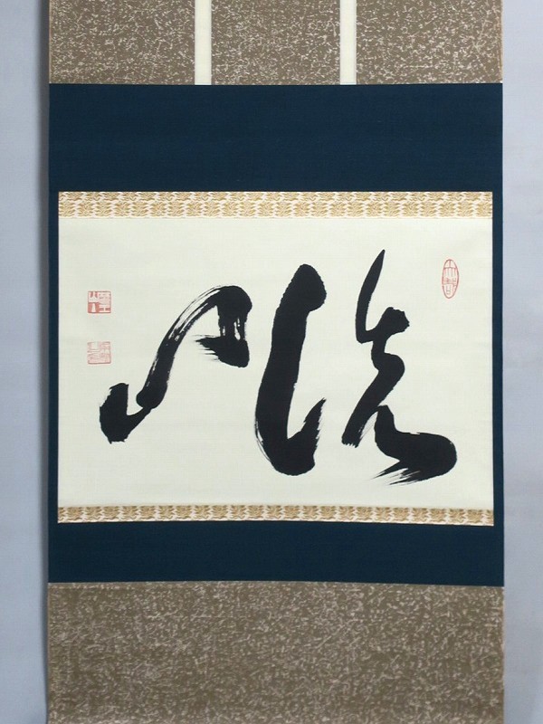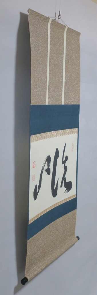 本紙サイズ 縦横 37cm×53.8cm 紙本肉筆。経年のシミや汚れ、折れがありますが、総じて良い状態です。状態は写真でご確認ください。 有馬 ョ底(らいてい、1933年〜東京生まれ)は、日本の禅僧です。久留米藩主有馬家(赤松氏流)に生まれ、臨済宗相国寺派管長となりました。1995年に相国寺、金閣寺(鹿苑寺)、銀閣寺(慈照寺)の3か寺の住職を兼ね、相国寺承天閣美術館の館長に就任しました。本品は有馬が書いた「洗心」の書。芸術文化に造形の深い僧らしい個性的な書に仕上がっており、水墨画を見るような感じがします。飾ると臨済宗の雰囲気を味わうことができるでしょう。 | ||