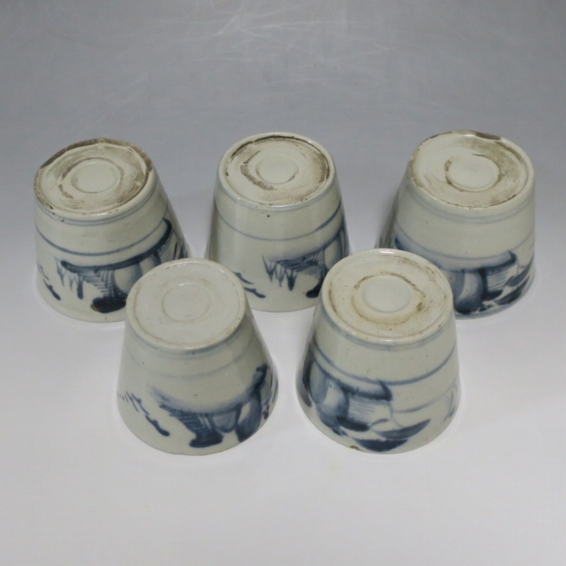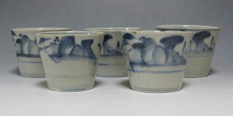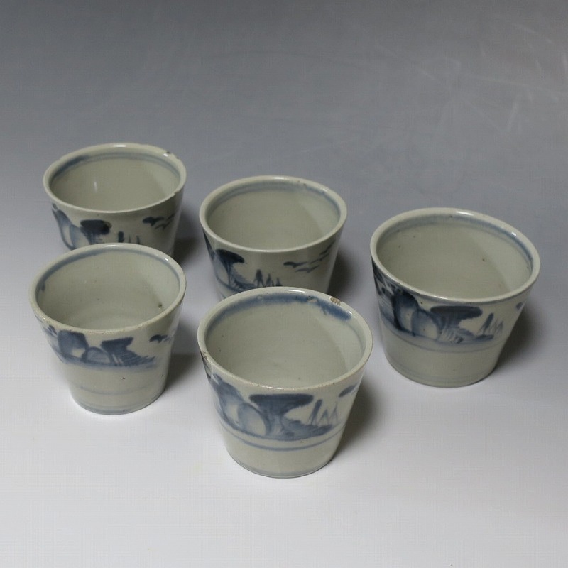 皆沢焼 染付 山水文 そば猪口5客