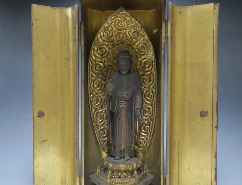 木彫 厨子入り 阿弥陀如来 立像
