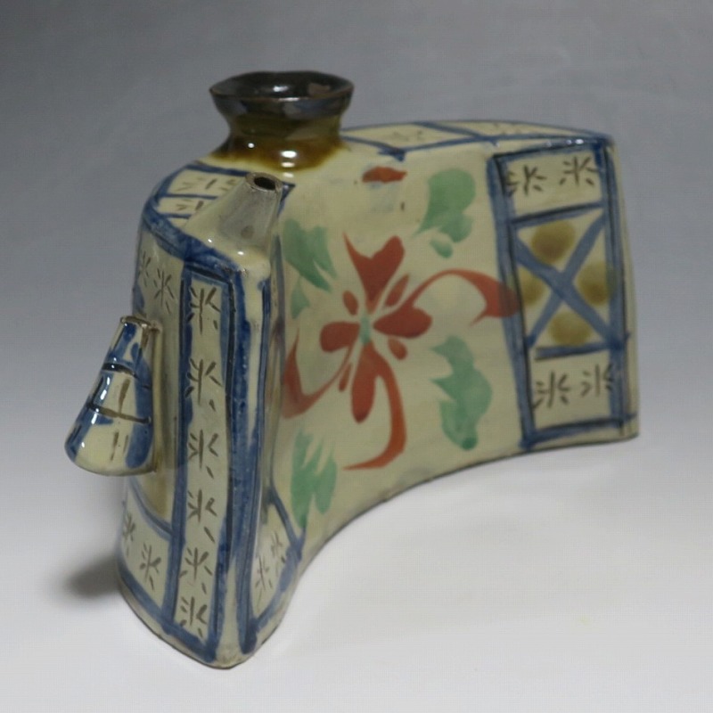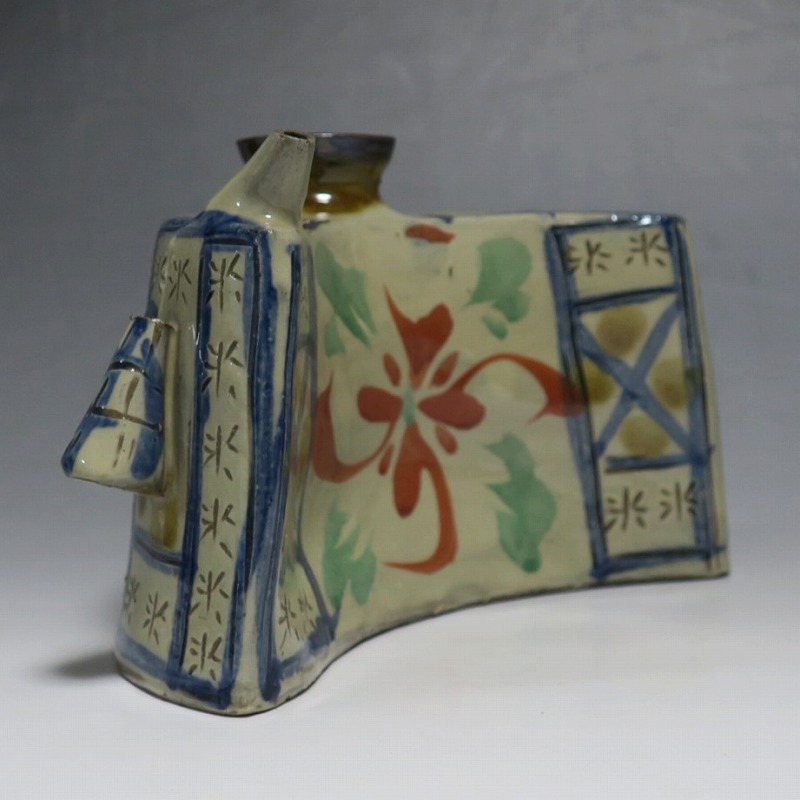 新垣栄三郎 壺屋焼 色絵きび文 抱瓶