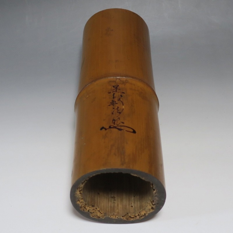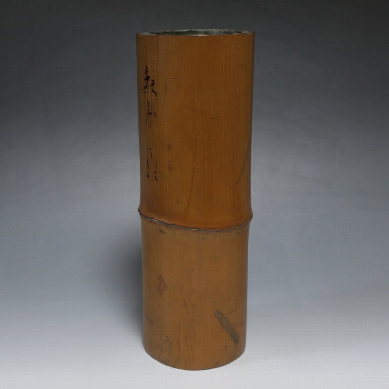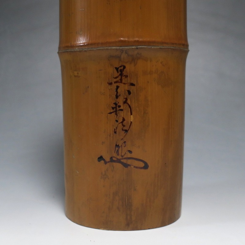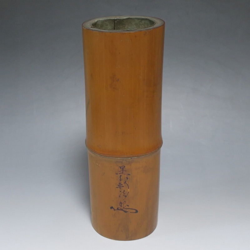 是心軒法眼 一重切 竹花入 漆 在判