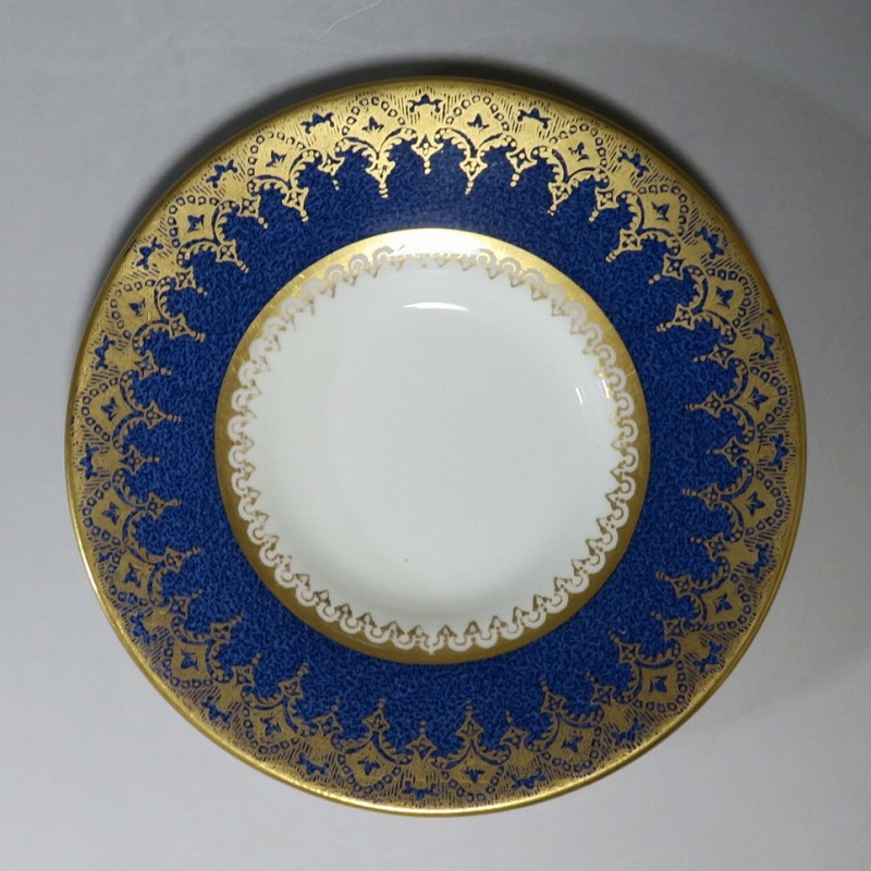 カップの口径 約5.6cm/高さ 約5.6cm/高台径 約5.3cm 完品です。状態は写真でご確認ください。 ウエッジウッド(Josiah Wedgwood and Sons)は1759年にジョサイア・ウェッジウッドによって設立されたイギリスの陶磁器メーカーです。ロイヤルドルトンと並ぶ世界最大級の陶磁器メーカーの一つで、高級食器を製造・販売しています。本品は20世紀初頭に作られた金彩パウダーブルーのデミタスカップ。薄手の器体に美しい金とブルーのデザインが施された作品です。ウエッジウッドのパウダー技法は職人が一つ一つ手作業で彩色するので手作り感があります。上品でシックな作品。本作でコーヒーを飲むと美味しいでしょう。 | ||
