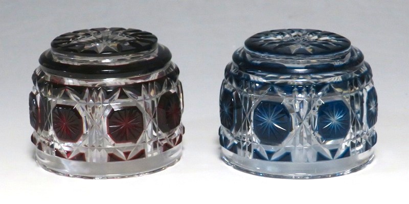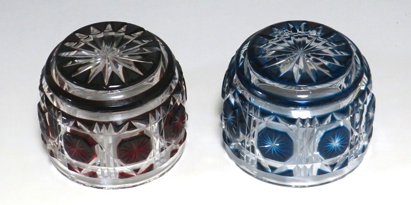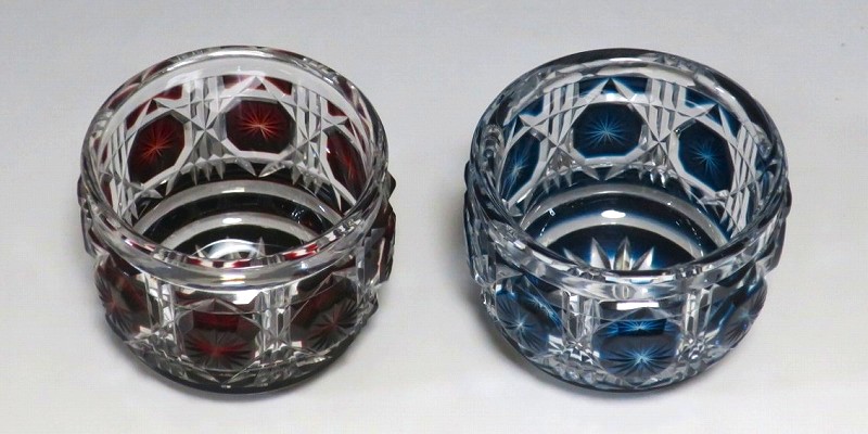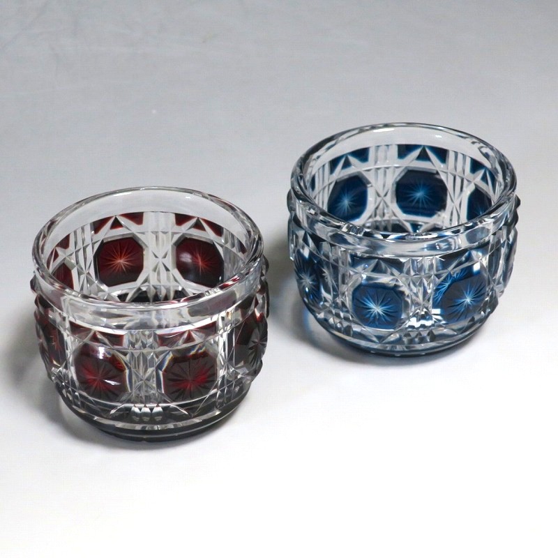 薩摩切子 赤被せ・青被せガラス 猪口 2客