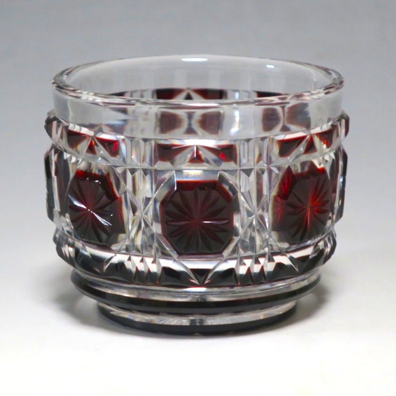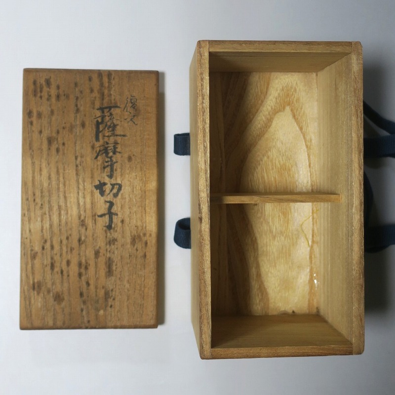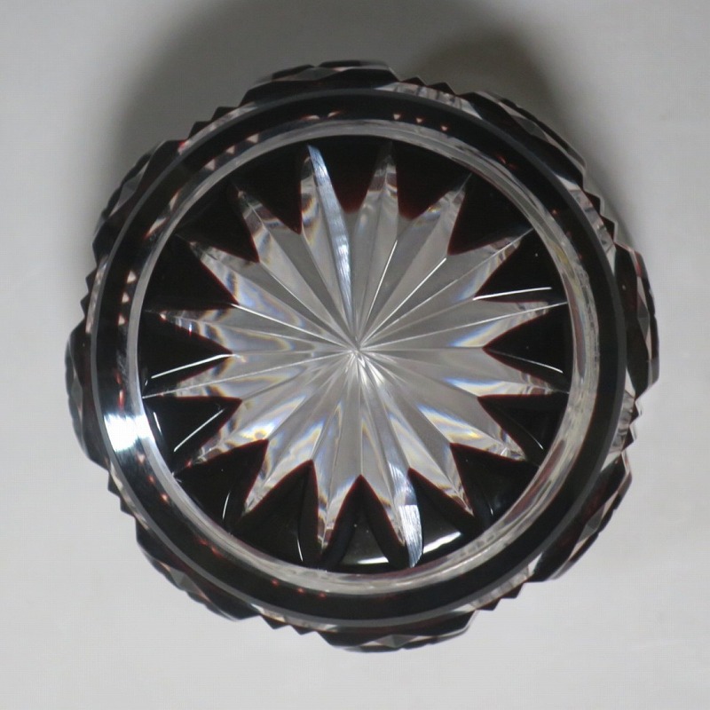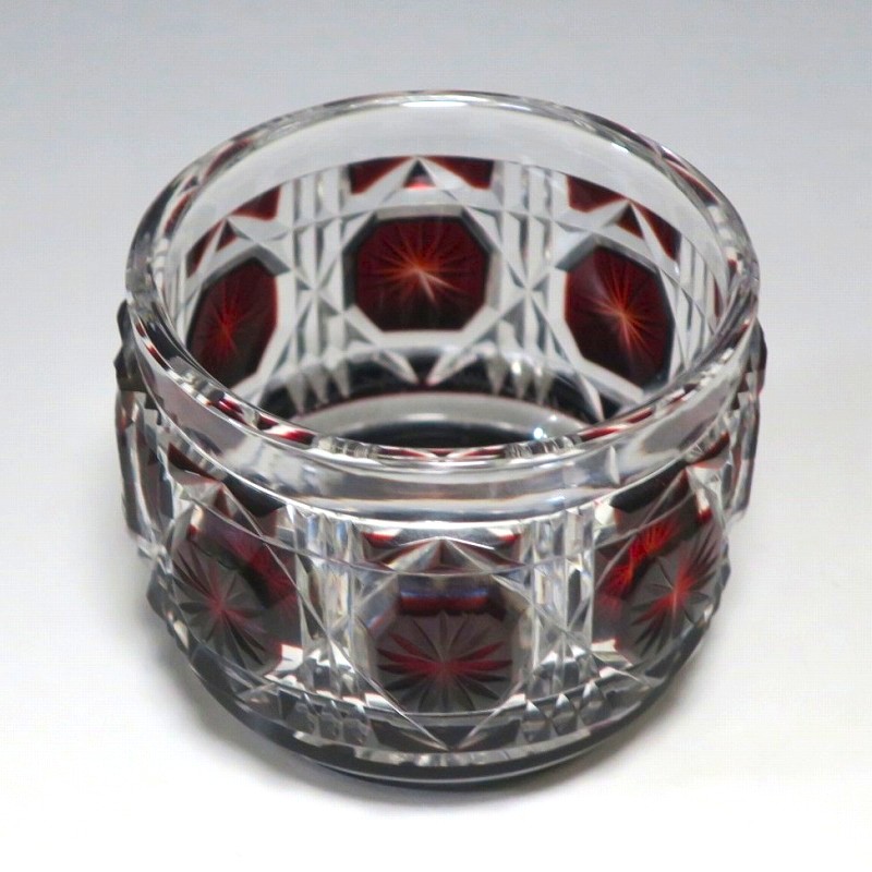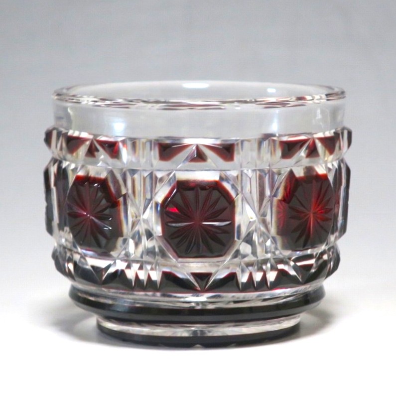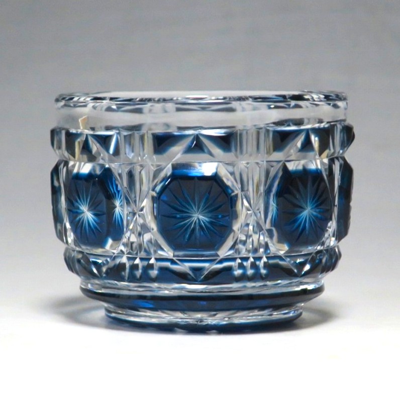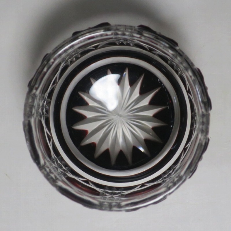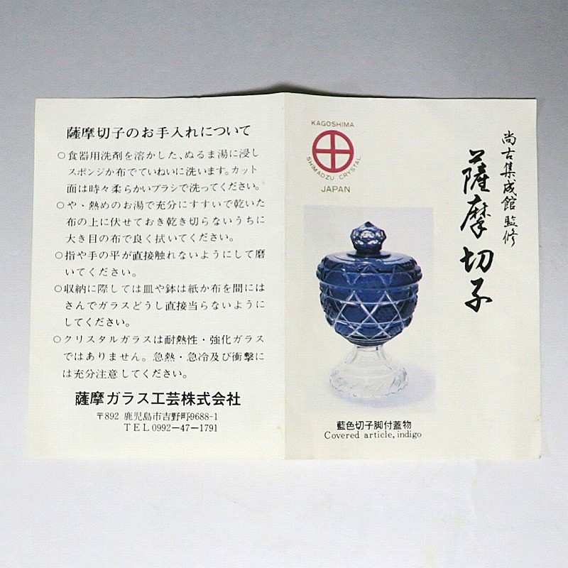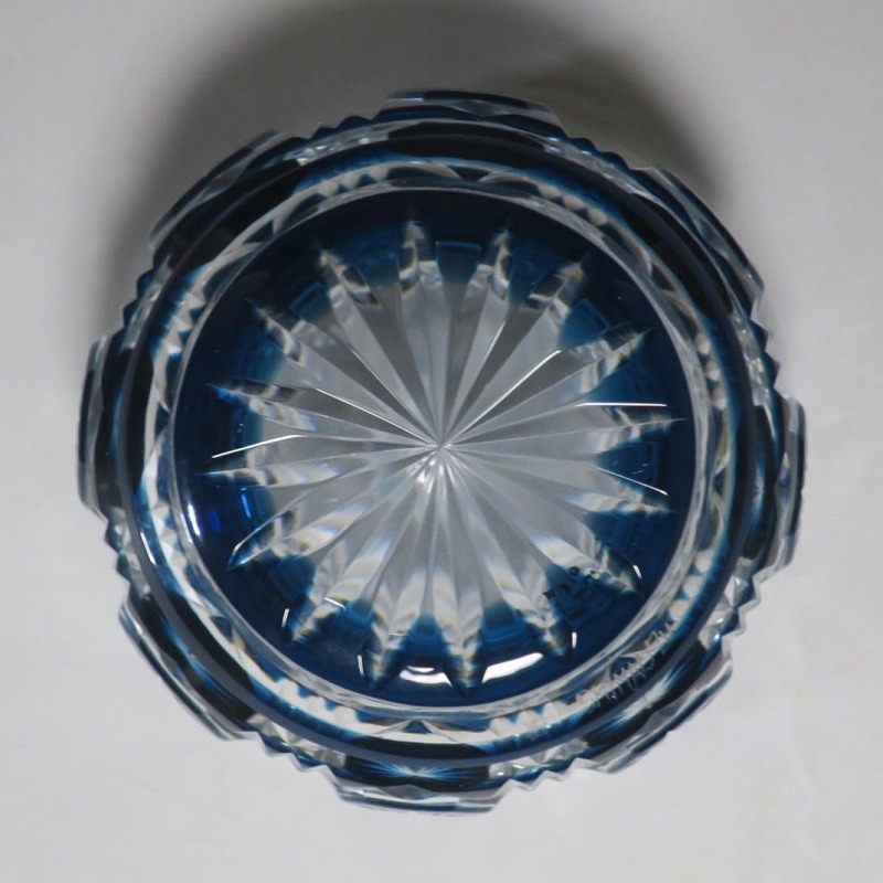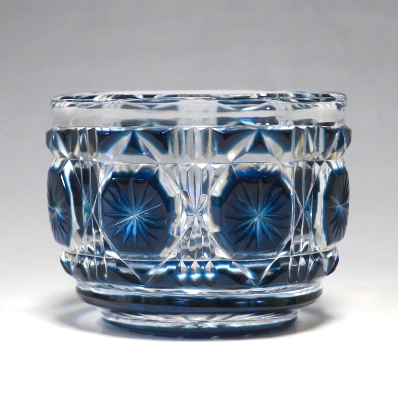 口径 約6.3cm/高さ 約5cm/高台径 約4.4cm 完品です。状態は写真でご確認ください。 薩摩切子は江戸時代後期、薩摩藩主・島津斉彬によって創製されたカットガラスです。赤や青、黄色などの色を被せ、ガラスをカットして模様をデザインしました。本品は尚古集成館監修で製作された薩摩切子の赤被せ、青被せガラス猪口2客セット。1985年に設立された薩摩ガラス工芸株式会社が製作した作品です。薩摩切子独特の厚みのある色被せとぼかしを使った手作り感のある猪口です。本品を使って日本酒を飲むと気分が良いと思います。普段使いの酒器としてお楽しみください。 | ||