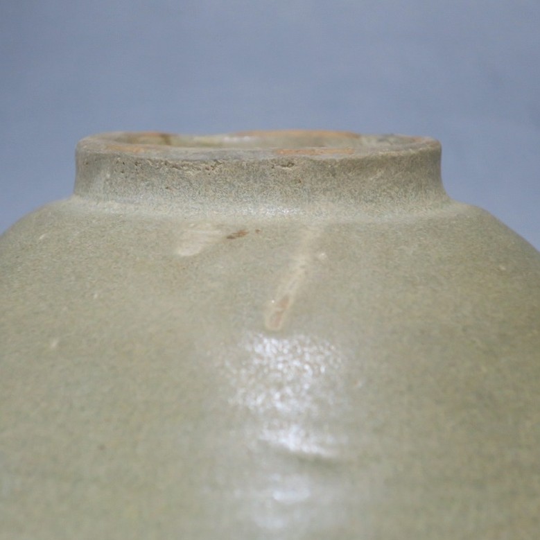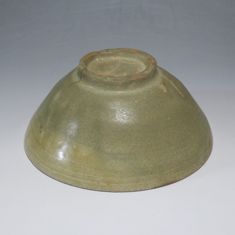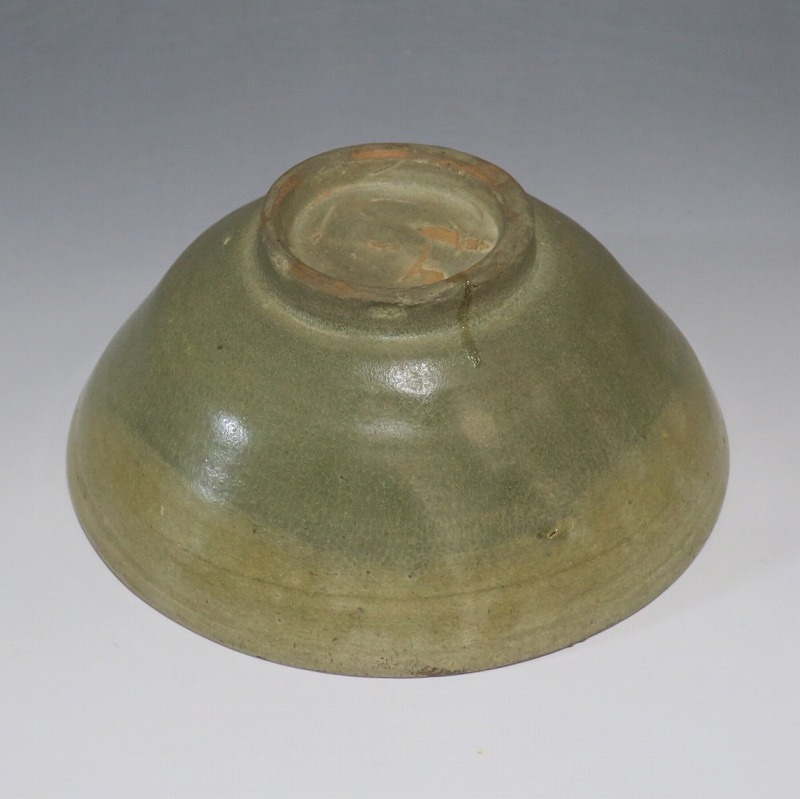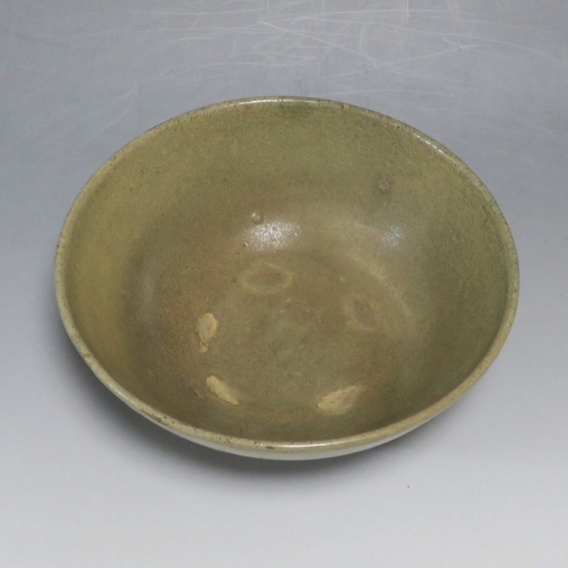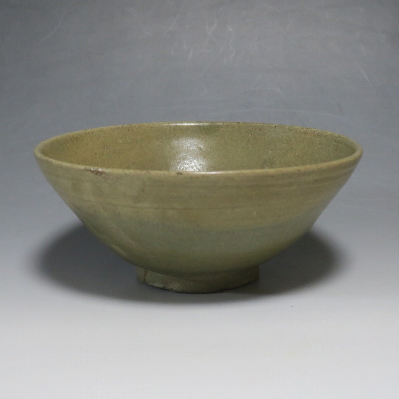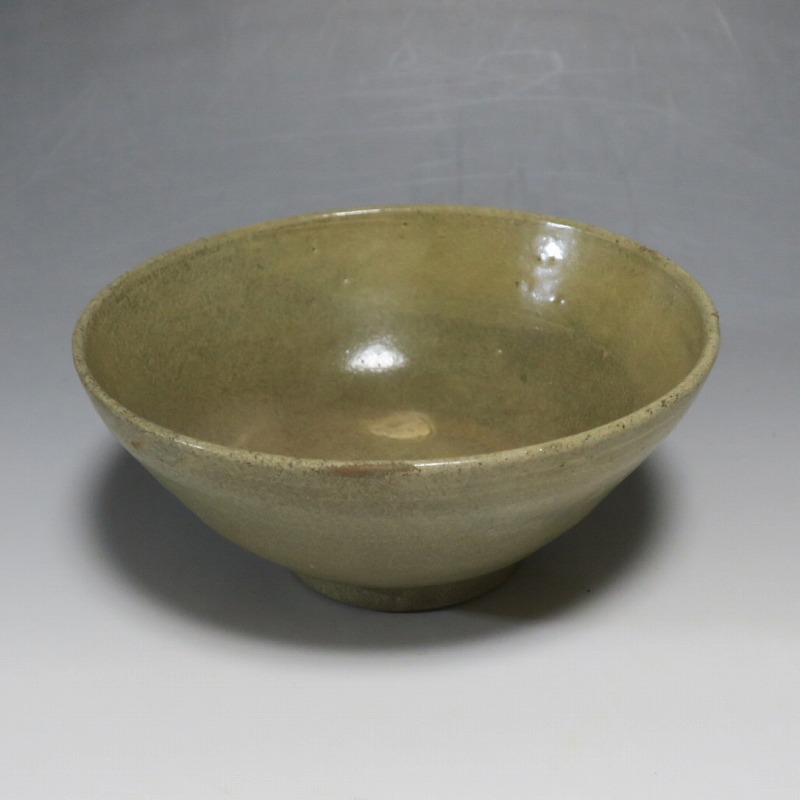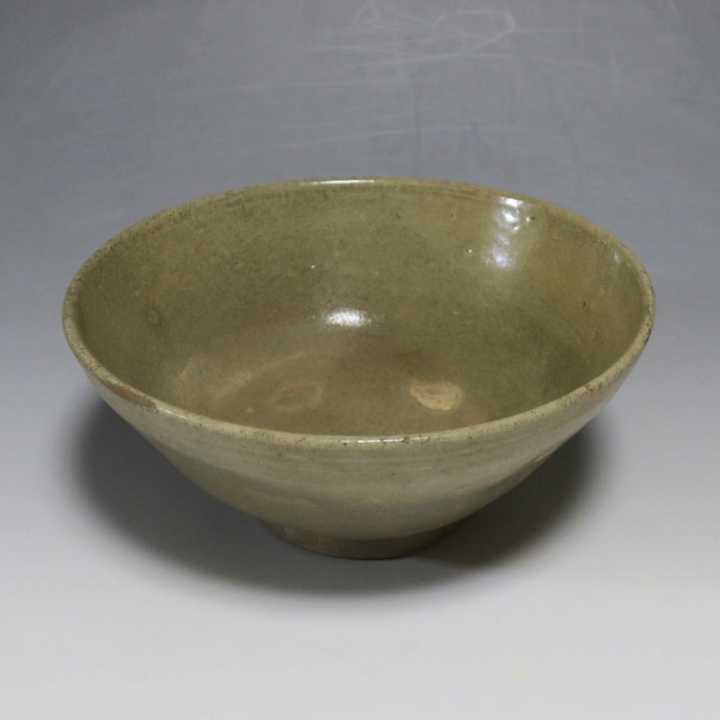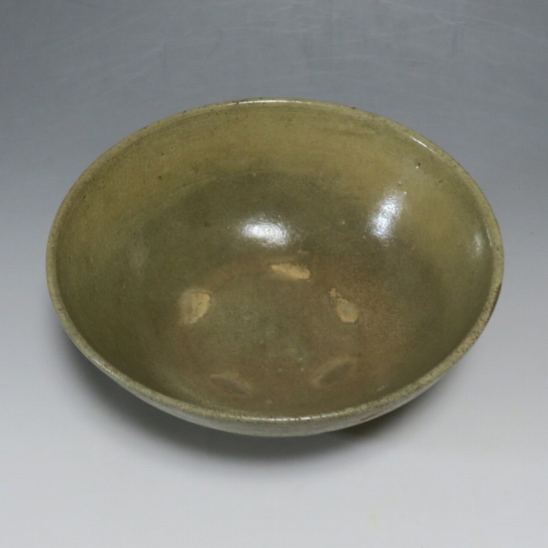 (李朝時代初期 15世紀) 商品番号 4246 口径 約16.7cm/高さ 約7.3cm/高台径 約6.5cm 見込みに釉ハゲや窯傷、高台に一部直しがあります。状態は写真でご確認ください。 高麗から李朝に政権が交代した14世紀になると粉青沙器と呼ばれる新しい様式の焼物が出現します。灰釉や刷毛目、井戸などの多様な粉青沙器は独特の味わいがあるので古美術品として人気があります。本品は日常雑器として製作された青磁の鉢。オリーブグリーンの釉薬が掛かり、唐津焼に似た雰囲気があります。釉薬の変化が景色になっています。郷土料理を盛るのに最適な民芸風の鉢。普段使いの食器にご使用ください。 | ||