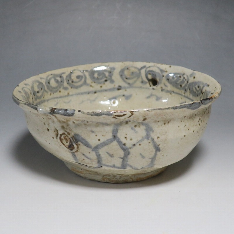 美濃焼 志野 鉄絵 亀甲 渦巻文 片口