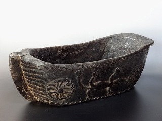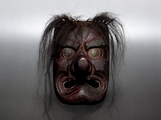 ちなみに写真は先週アップした明治時代の天狗面。 このような面を見ると、当時は日本各地で天狗祭が行われていたことを連想できます。 時間が経つにつれ時代の祭は消えて行きます。 日本の伝統的な祭や文化を保存したいものです。 高さ 約21cm/横幅 約15cm/鼻から奥行 約16cm 御売約、ありがとうございました | ||