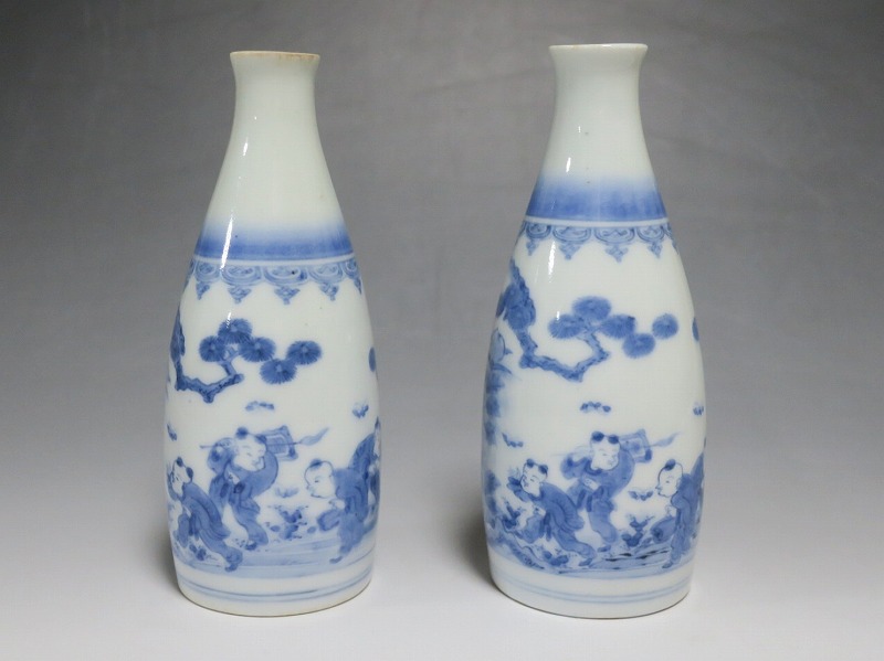 平戸焼 染付 唐子 徳利一対