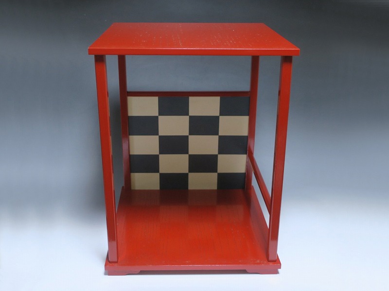 渡辺可映 朱漆器 市松文 茶棚