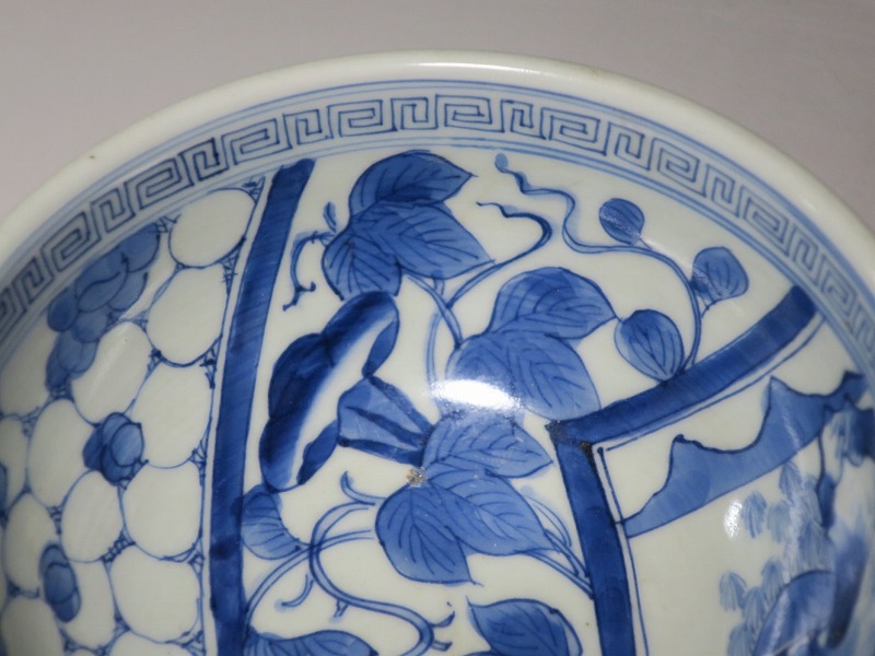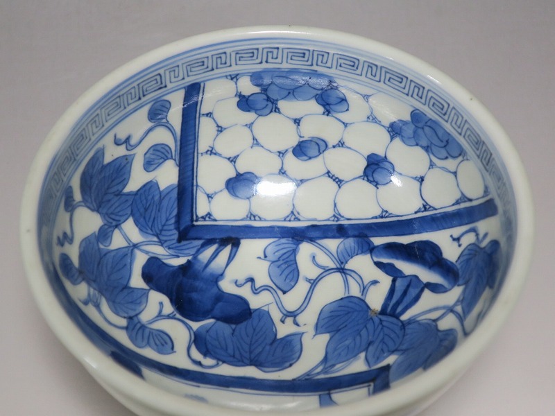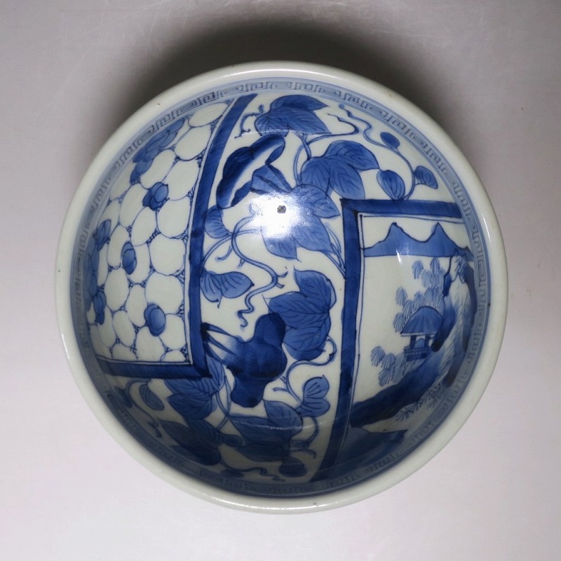 亀山焼 染付 朝顔 氷烈梅 山水文 杯洗
