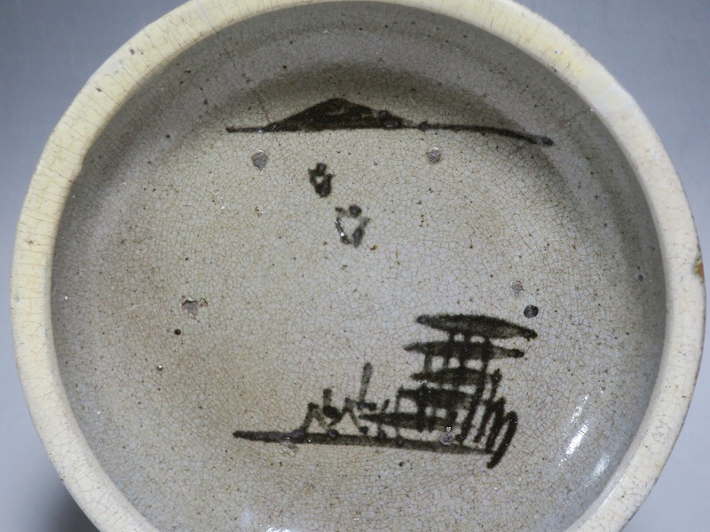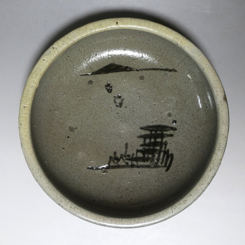 鍛冶町焼 鉄絵 山水文 鉢