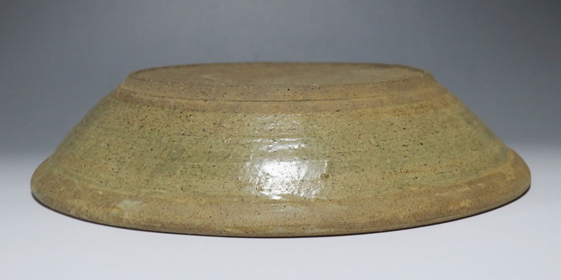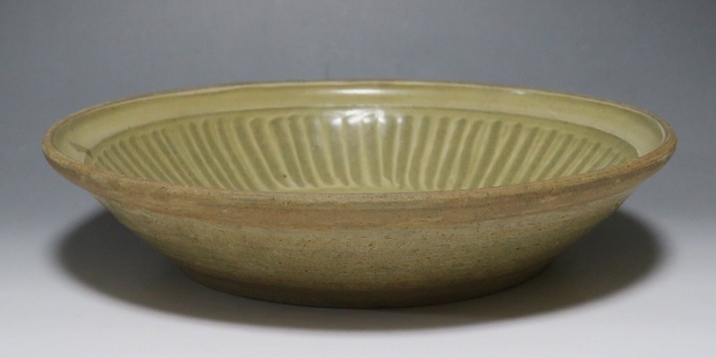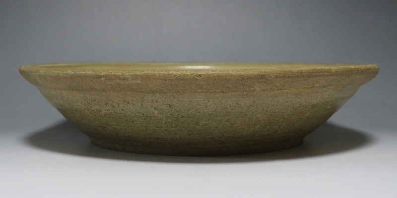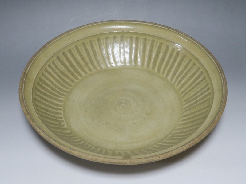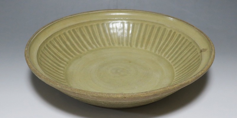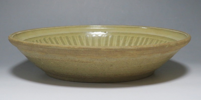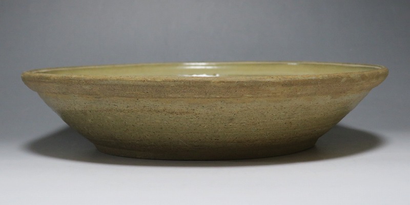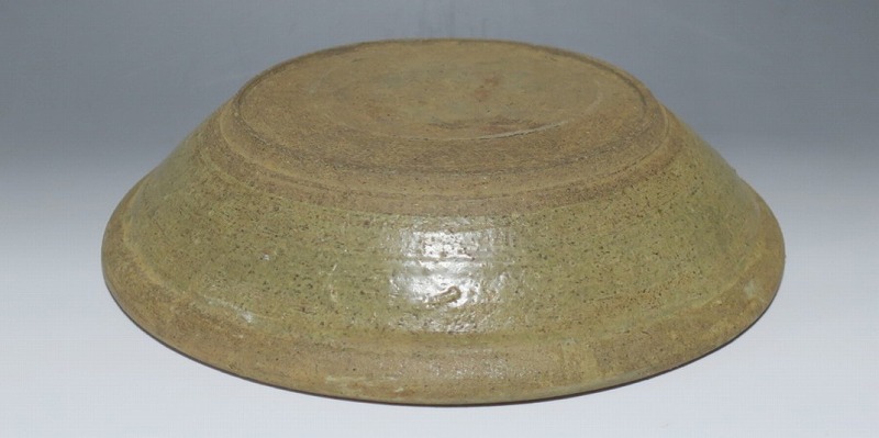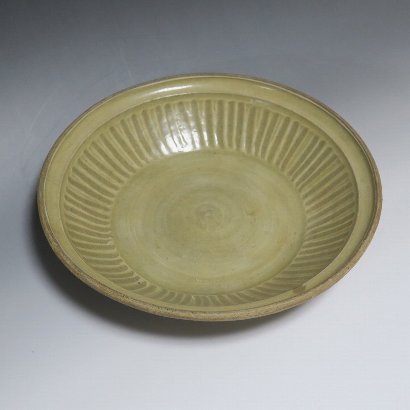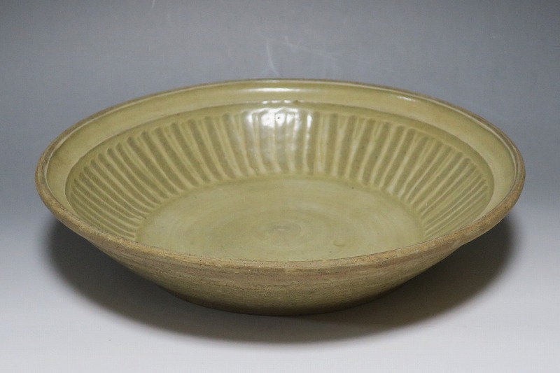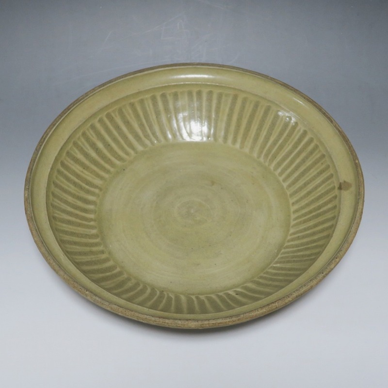 (タイ 15世紀) 商品番号 3921 口径 約28.5cm/高さ 約6cm/高台径 約17cm 窯傷がありますが、総じて良い状態です。状態は写真でご確認ください。 パーン窯は15世紀前後、北部タイで活動した窯です。当時、タイにはスンコロク窯、スコータイ窯など多くの良質な陶磁器を製作する窯がありますが、パーン窯は独特の青磁作品を製作しました。本品は淡いライトグリーン色の釉薬が掛かったしのぎ文のある尺皿。シンプルなデザインのモダンな感じがする作品です。古格、落ち着いた雰囲気があります。エスニック料理の食器としてお楽しみください。 | ||