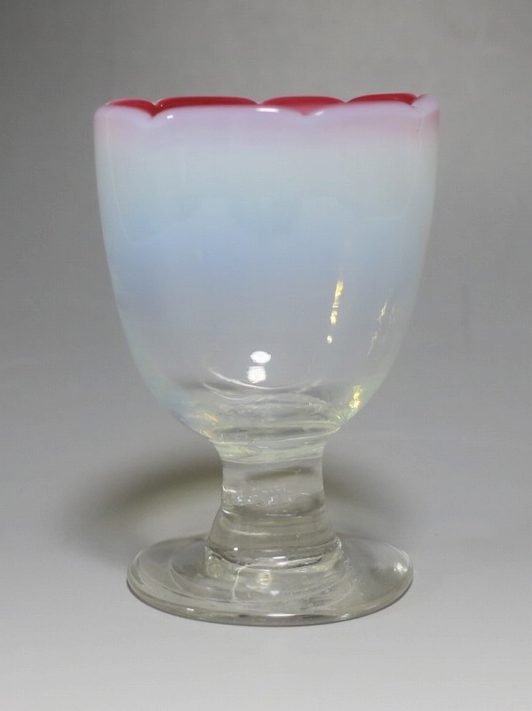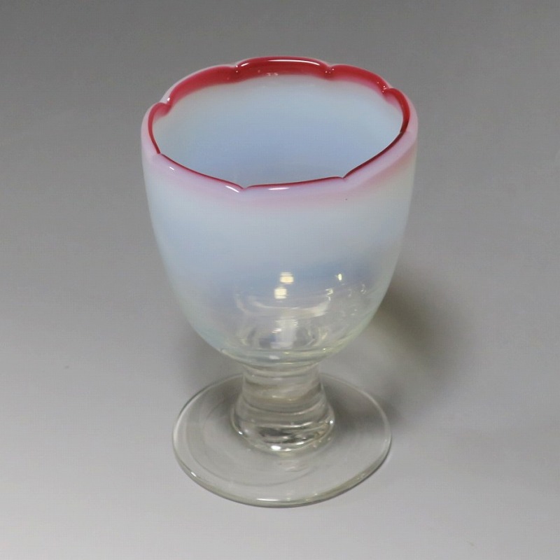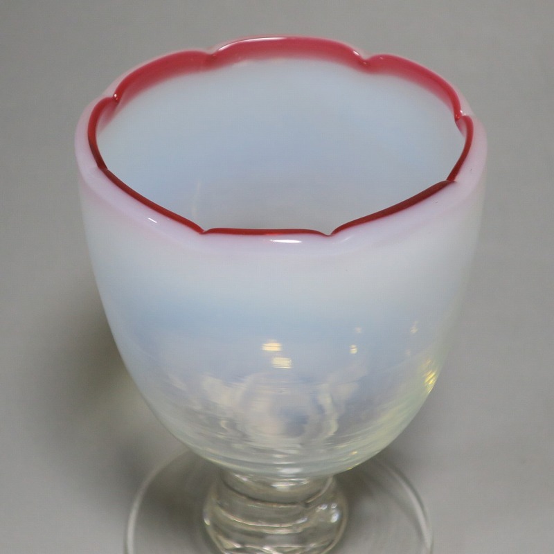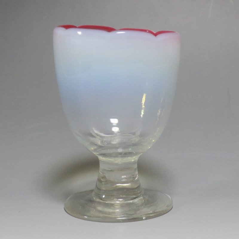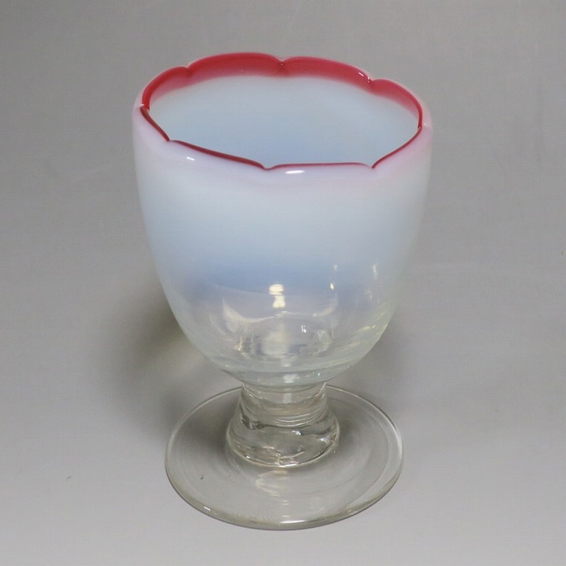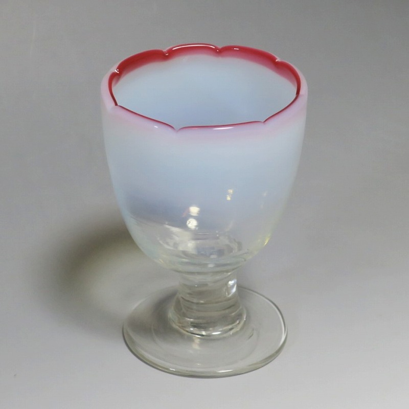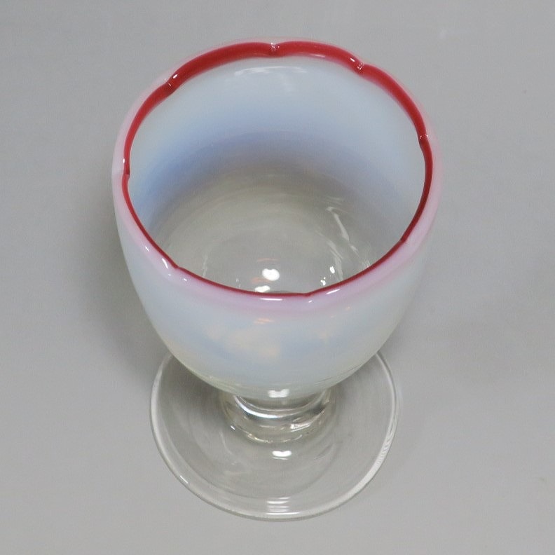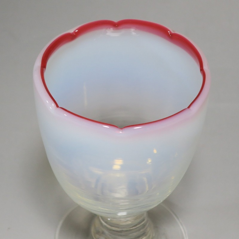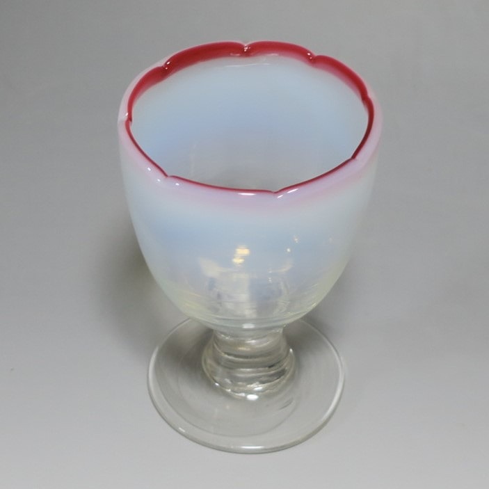 吹きガラス 赤縁乳白 なつめ型輪花 氷コップ