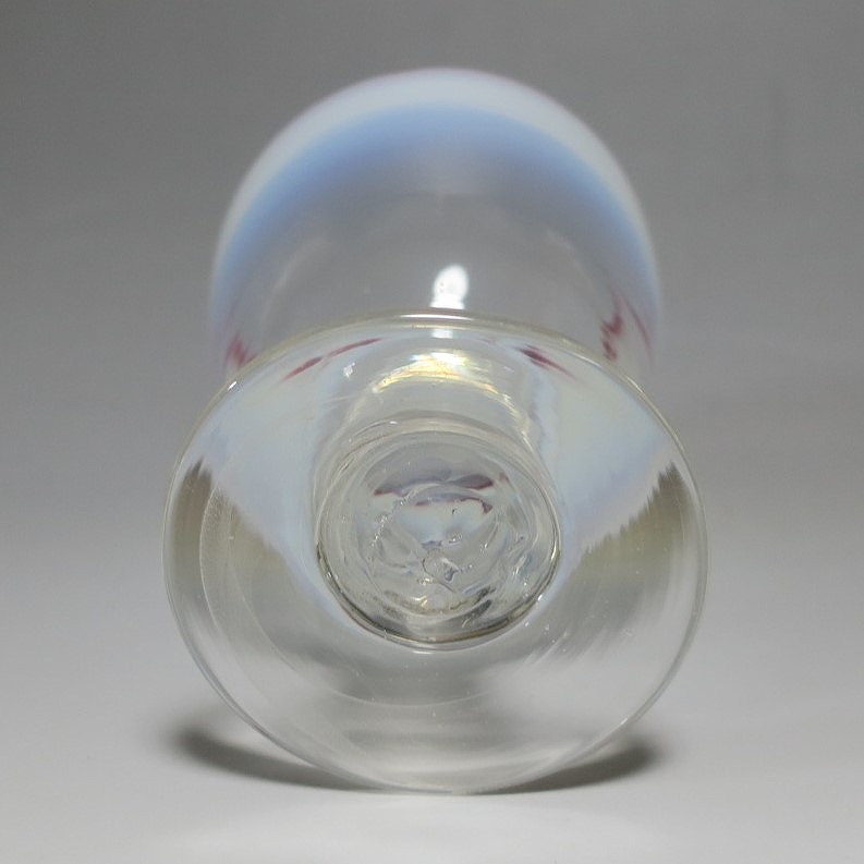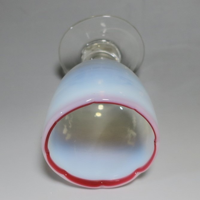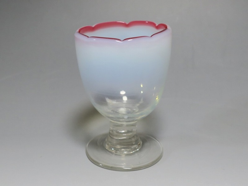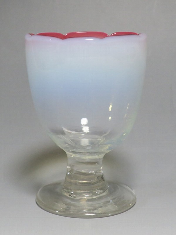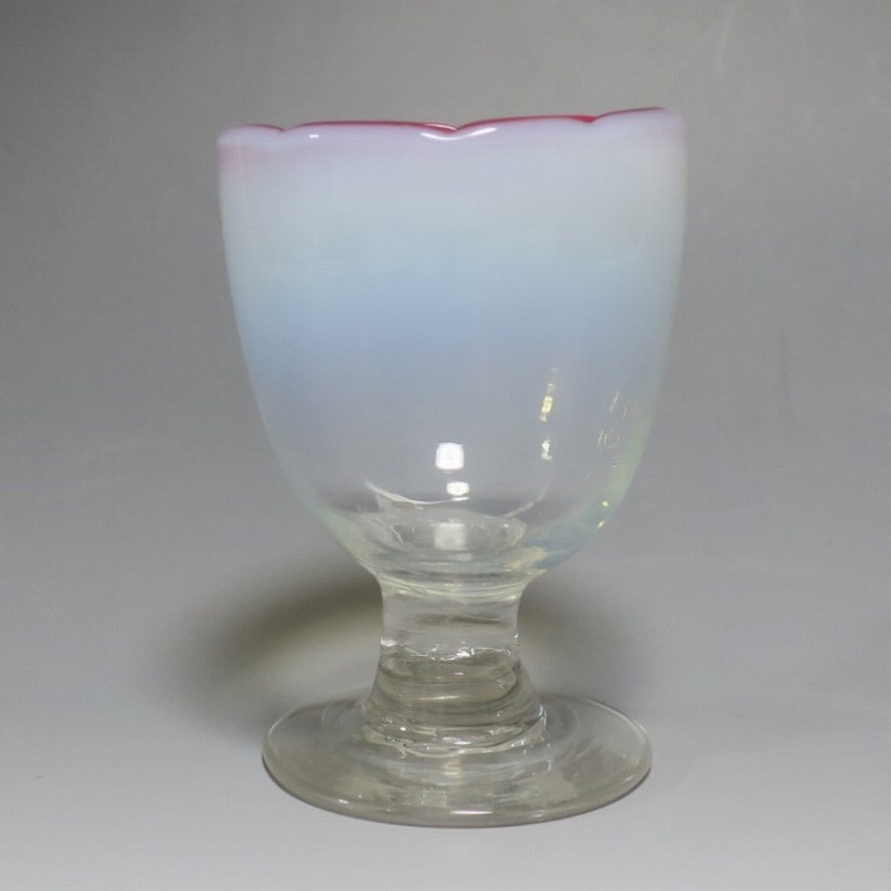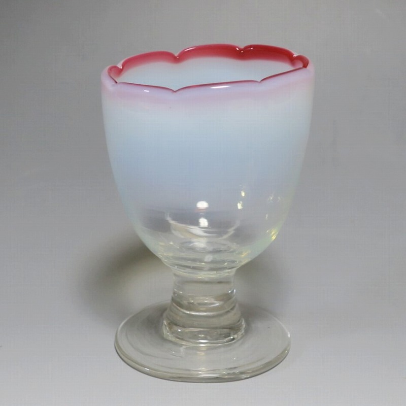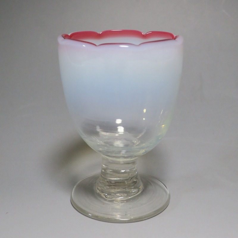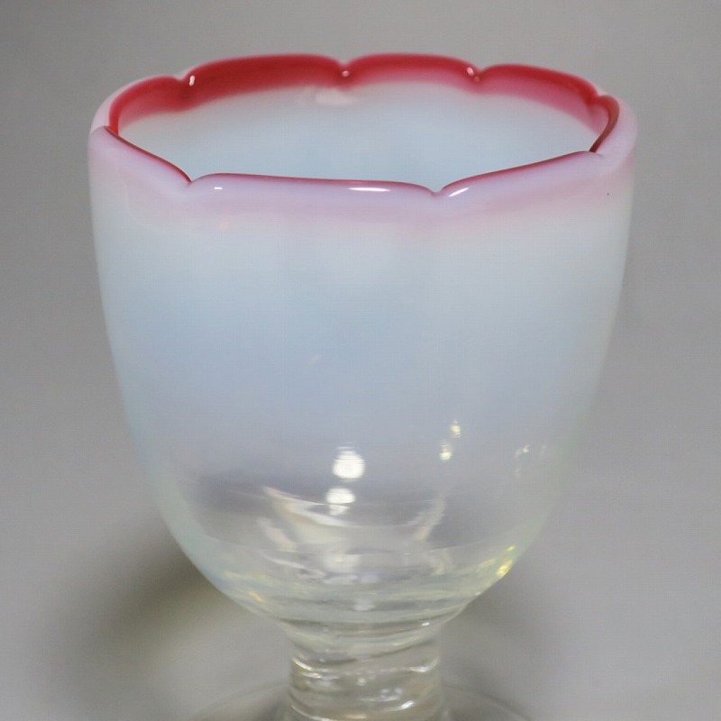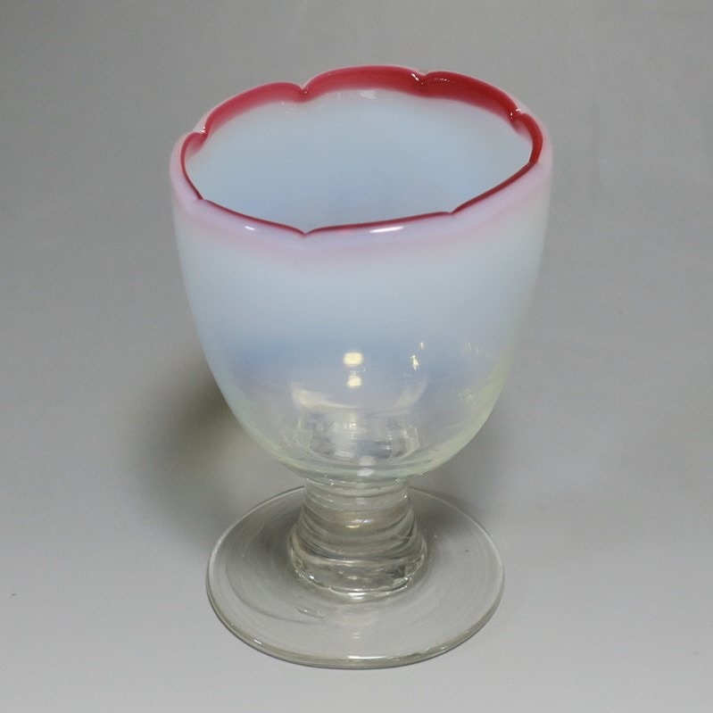 吹きガラス 赤縁乳白 なつめ型輪花 氷コップ