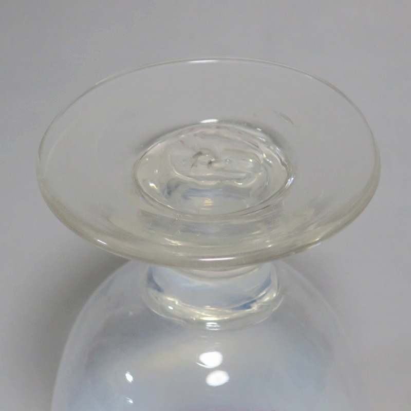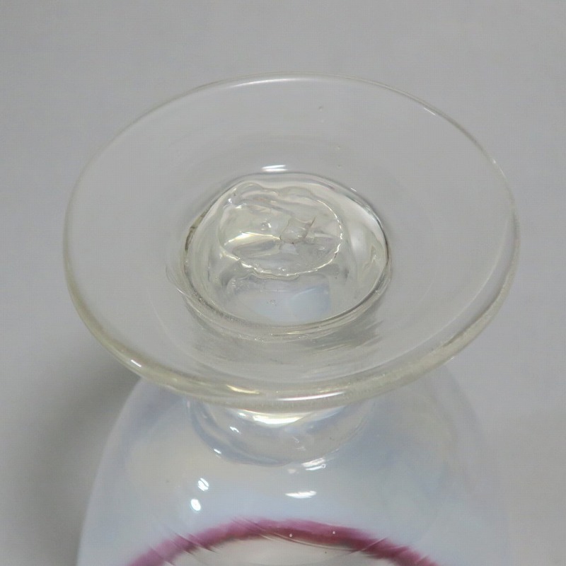 (大正時代 20世紀前半) 商品番号 3924 口径 約7.7cm/高さ 約11.5cm/高台径 約7cm 窯傷がありますが、完品です。状態は写真でご確認ください。 明治時代末期、製氷機が普及するようになると庶民は夏にかき氷や冷やした果実を食べるようになります。その器として大正時代になると多様な氷コップが製作されました。それらの作品は手作り感があり、懐かしさを感じさせてくれるのでレトロな商品として人気があります。本品は口辺に赤色の輪花、胴部に乳白色が施された高台付きの氷コップ。レトロ感のある美しい作品です。氷コップの他、アイスクリーム、果物入れ、ビールやジュースを飲むコップとして使えます。使用すると季節を感じることができるでしょう。 | ||