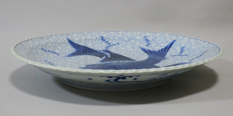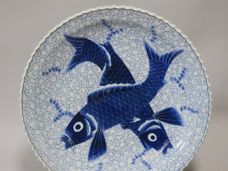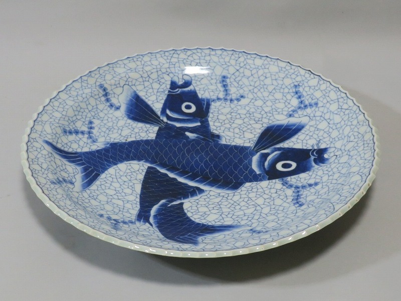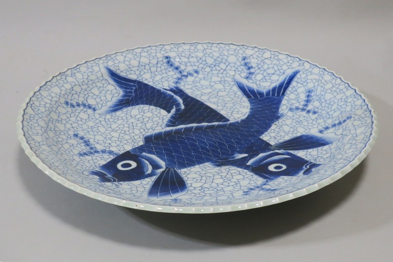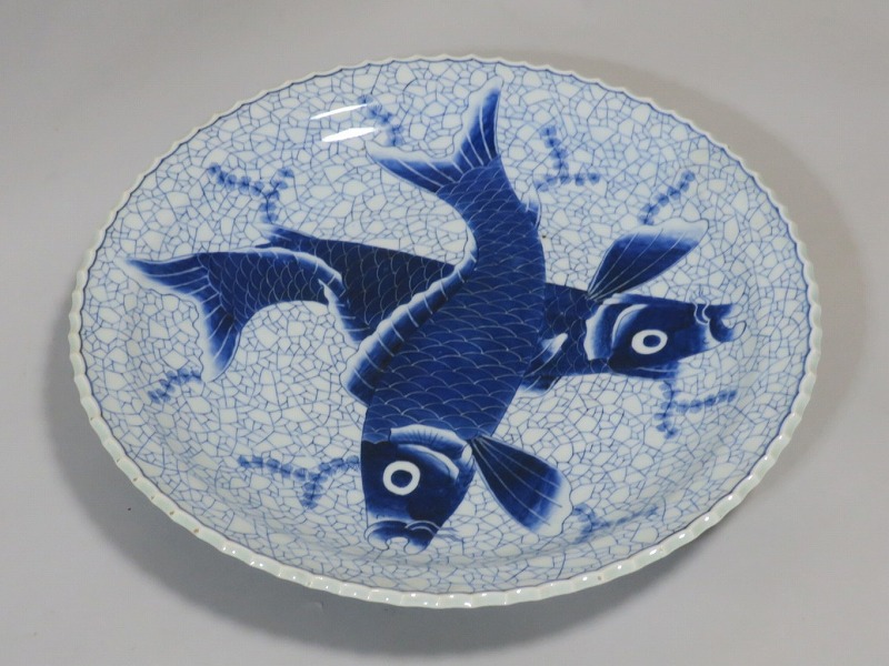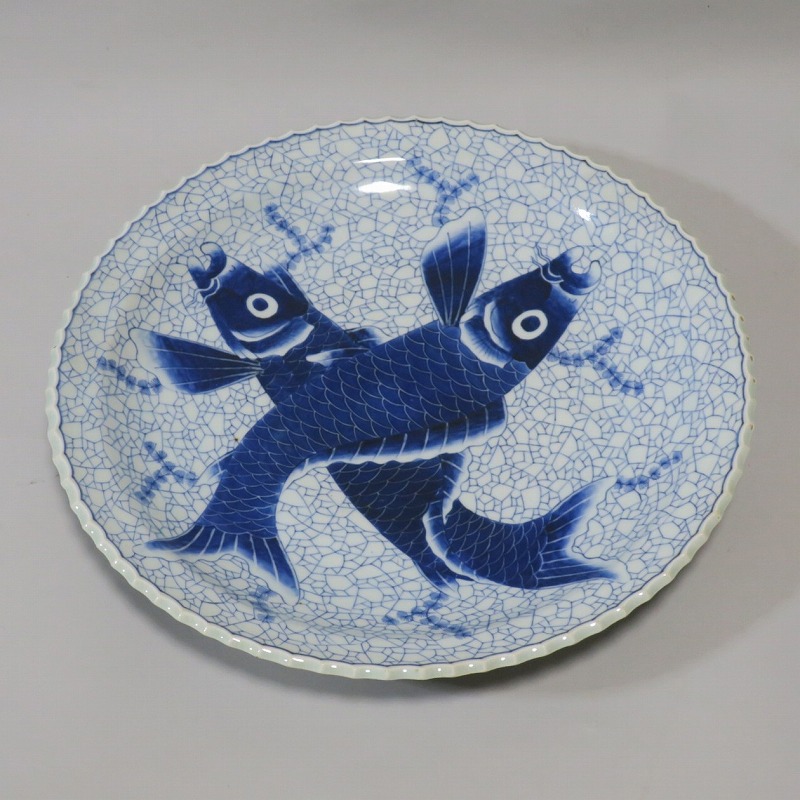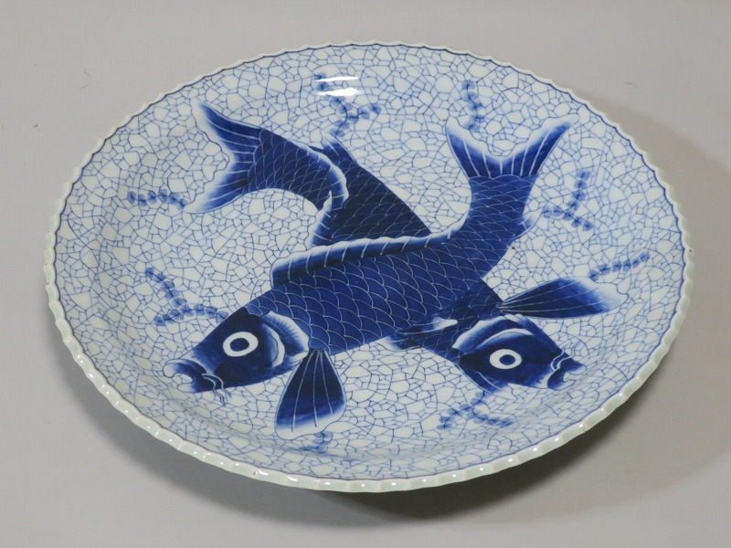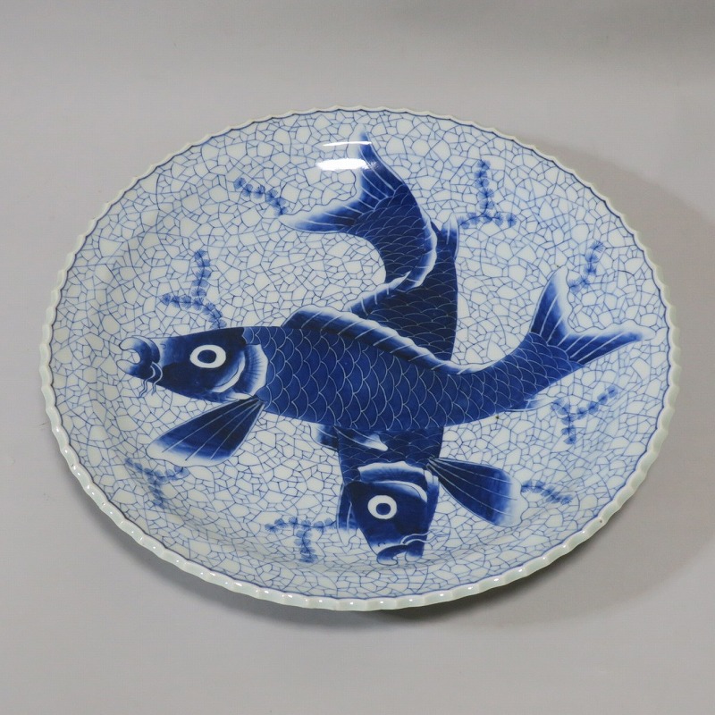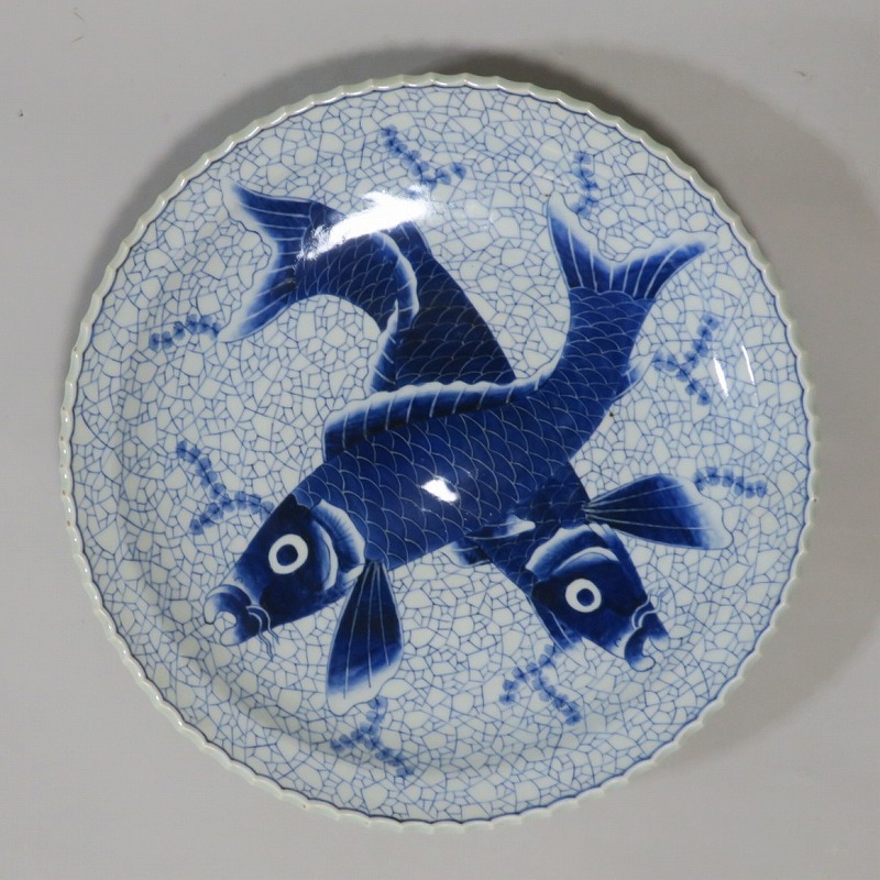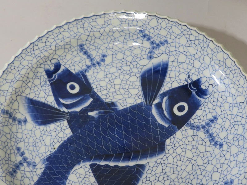 伊万里焼 染付 氷烈双魚文 いげ大皿