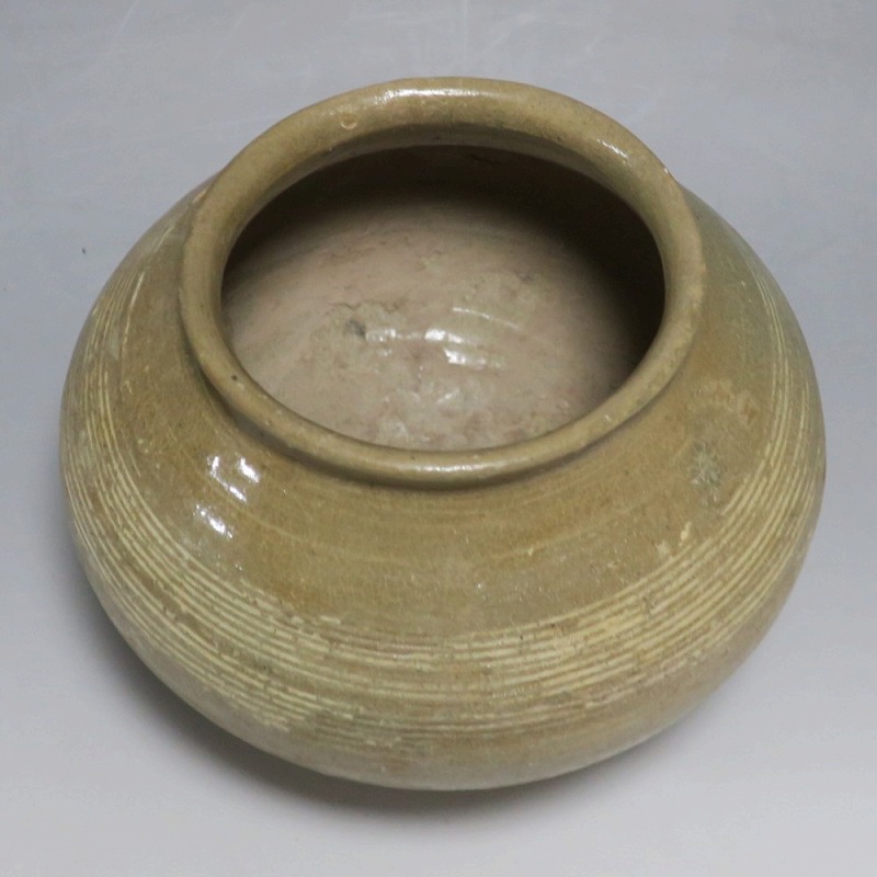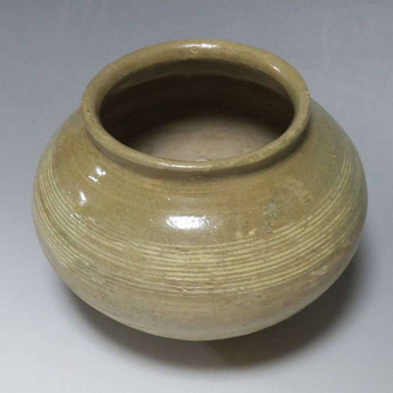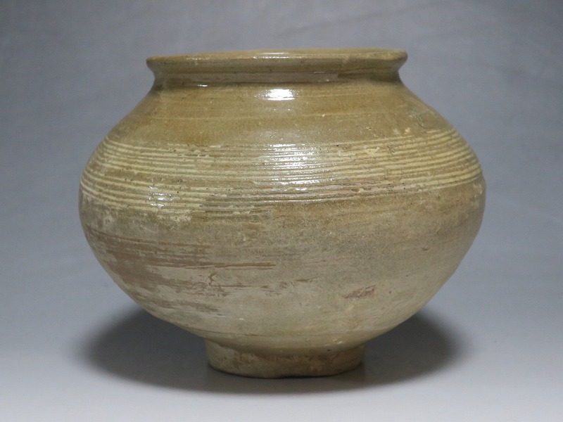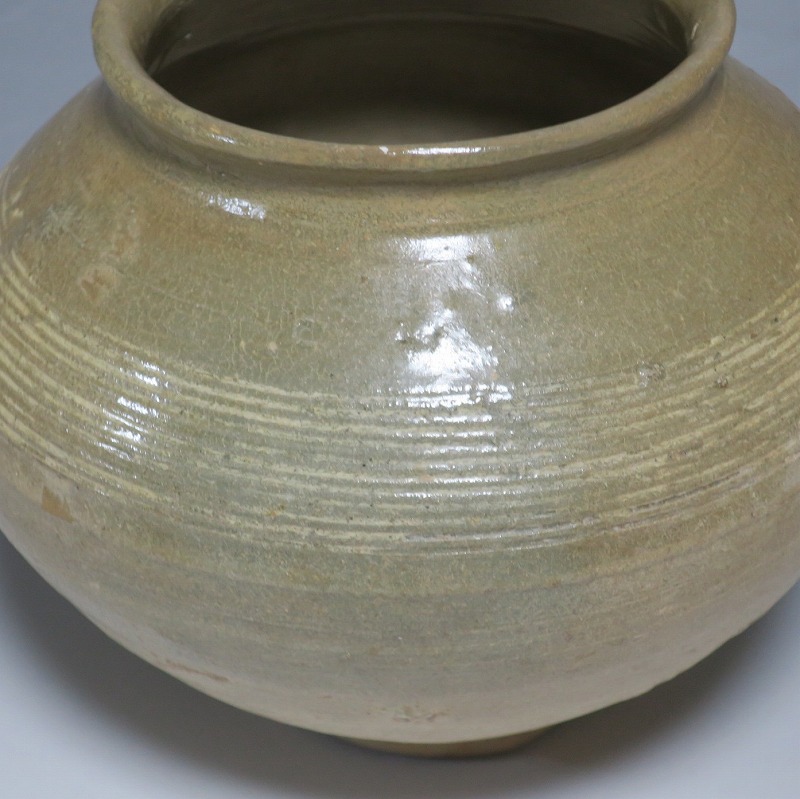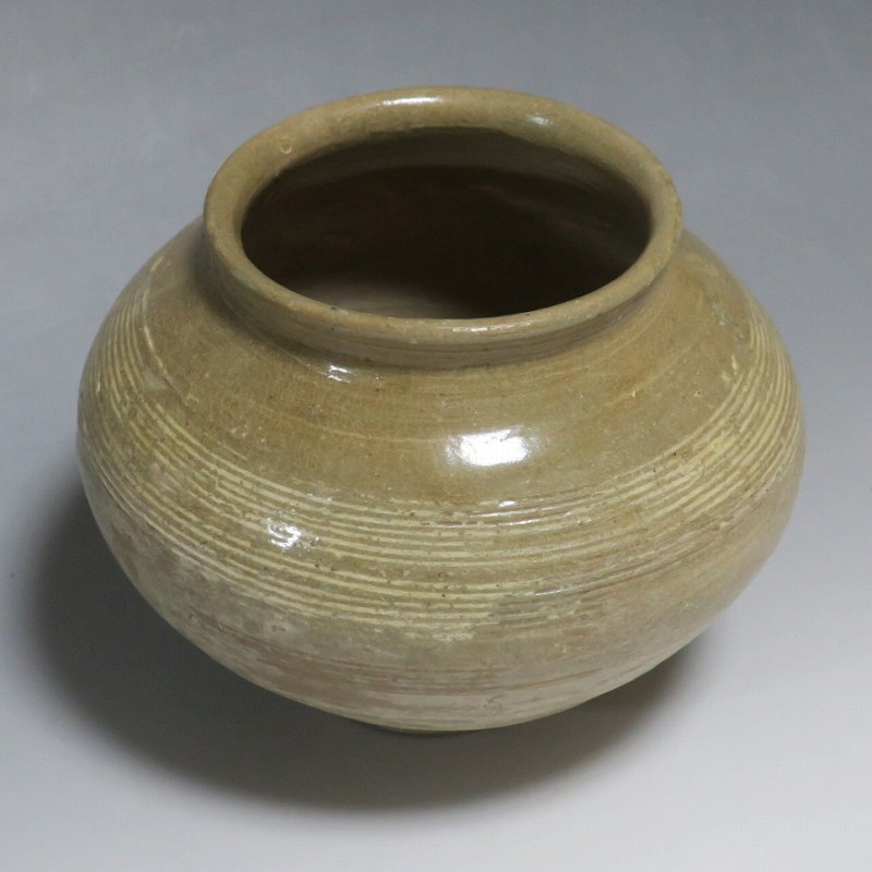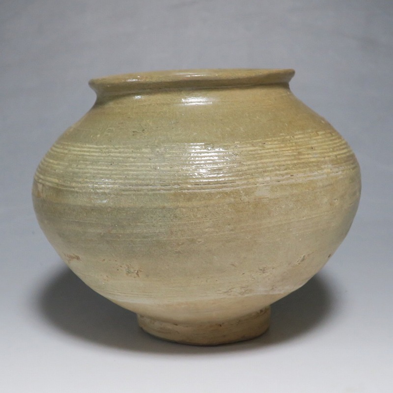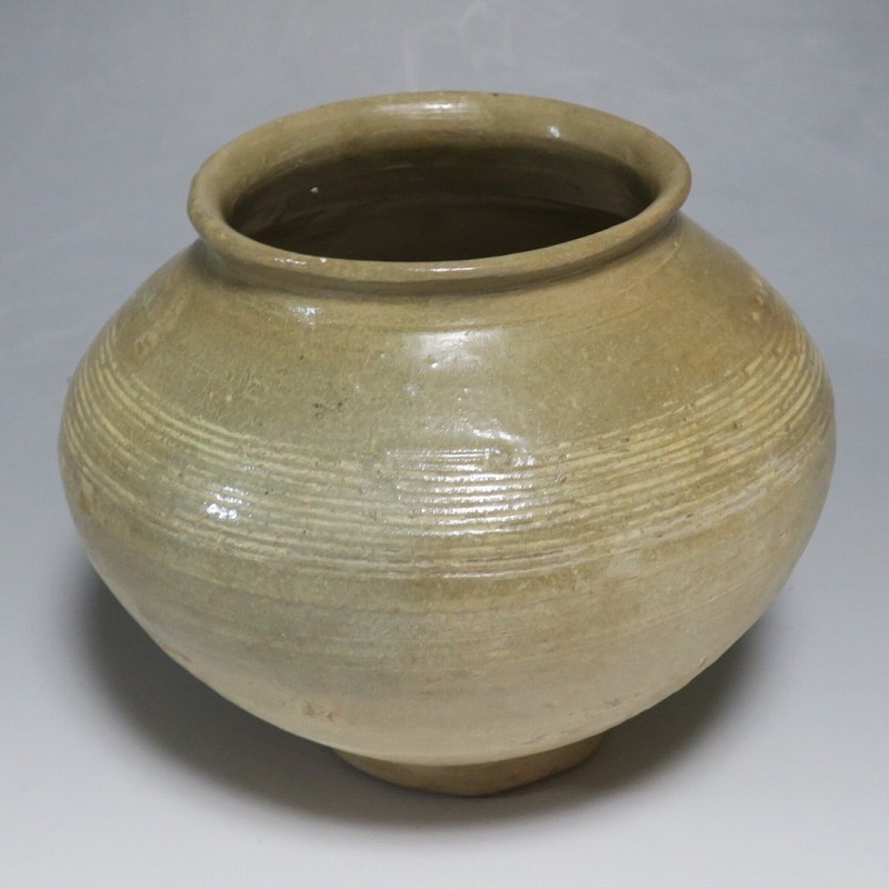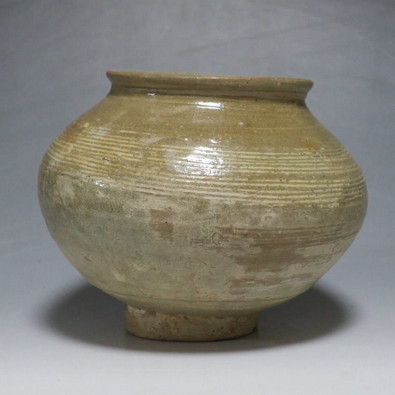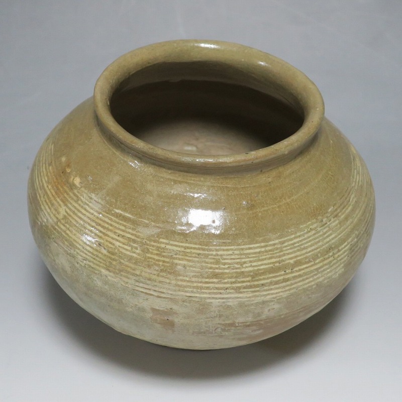 高さ 約13cm/胴径 約16cm 口辺の3分の1に共直し、発掘時の土がつき、高台や胴部に窯傷があり水が漏れます。花を生ける場合はオトシをご使用ください。状態は写真でご確認ください。 高麗から李朝に政権が交代した14世紀、粉青沙器と呼ばれる新しい様式の焼物が出現します。灰釉、刷毛目、井戸などの多様な粉青沙器は独特の味わいがあるので古美術品として人気があります。本品は16世紀に作られた象嵌輪線文壺。シンプルなデザインの作品です。李朝独自の造形、由宇町の変化のある味わい深い壺。インテリア、落としを使って花器としてお楽しみください。 | ||