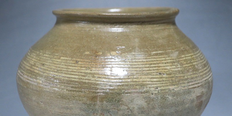 李朝 粉青沙器 象嵌輪線文 壺