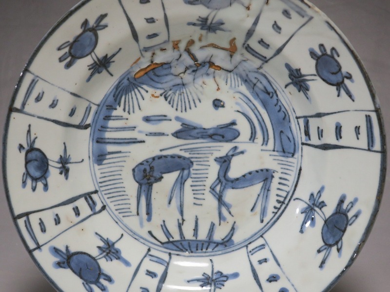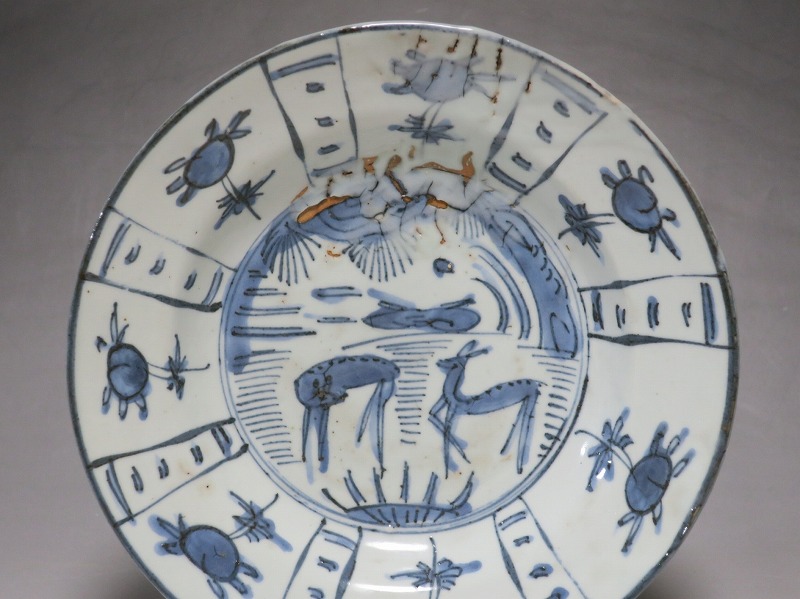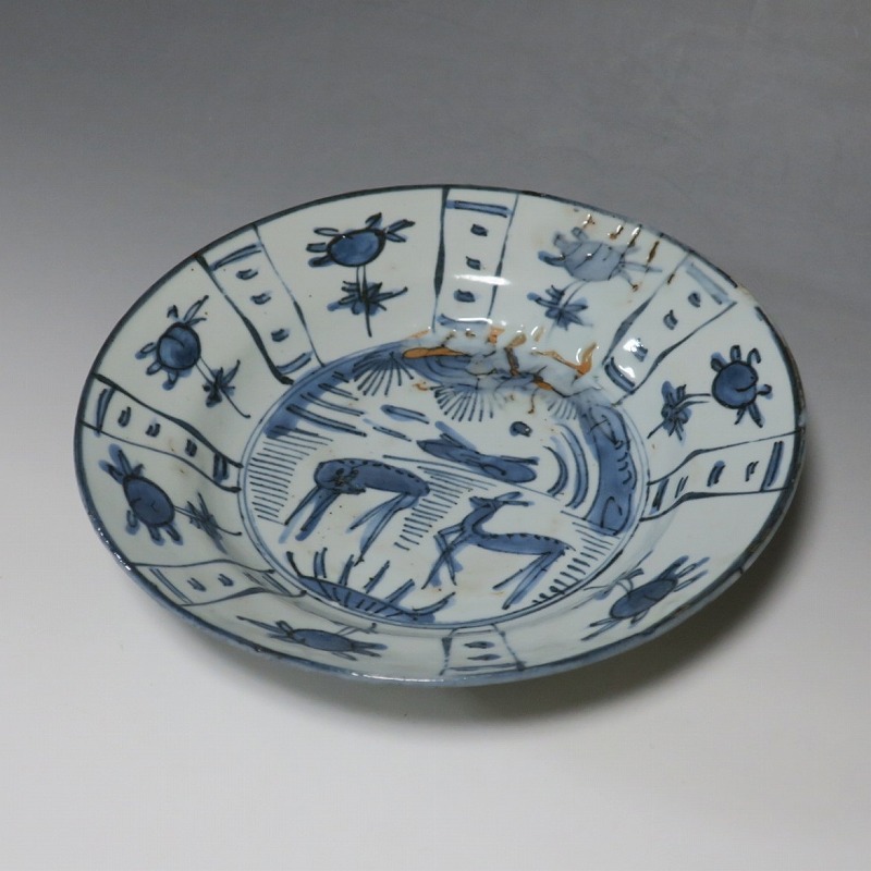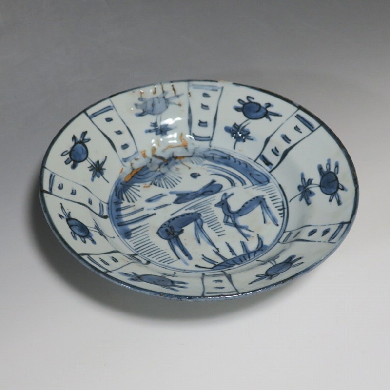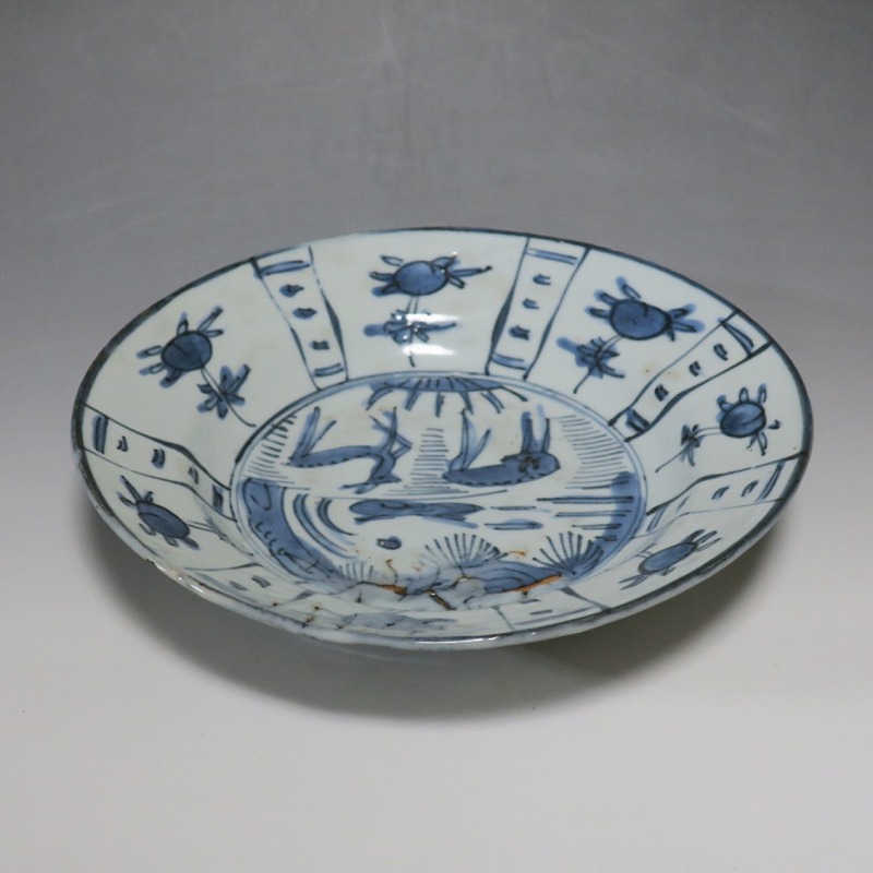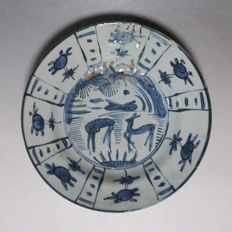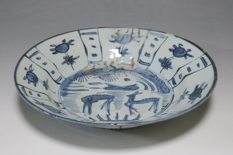 古染付 芙蓉手 鹿文 7寸皿