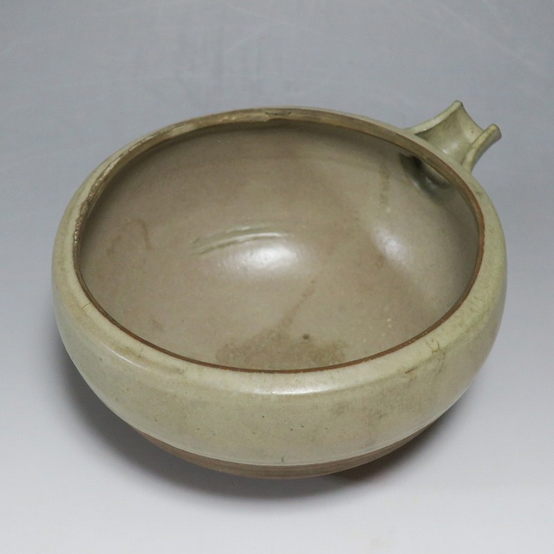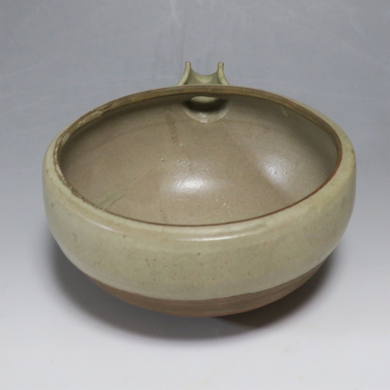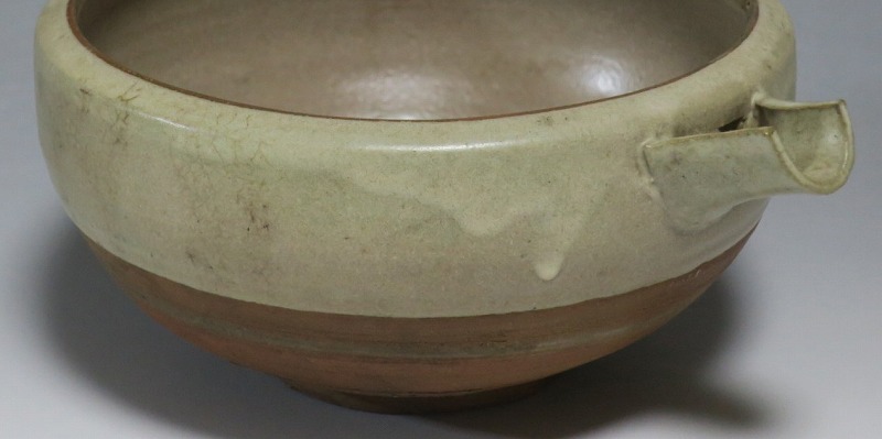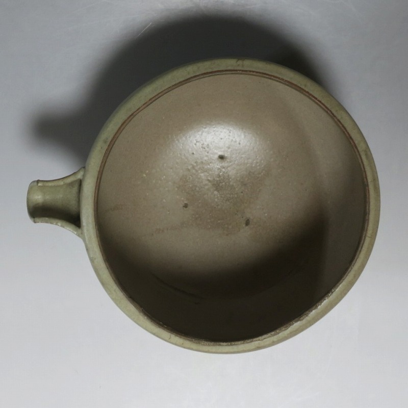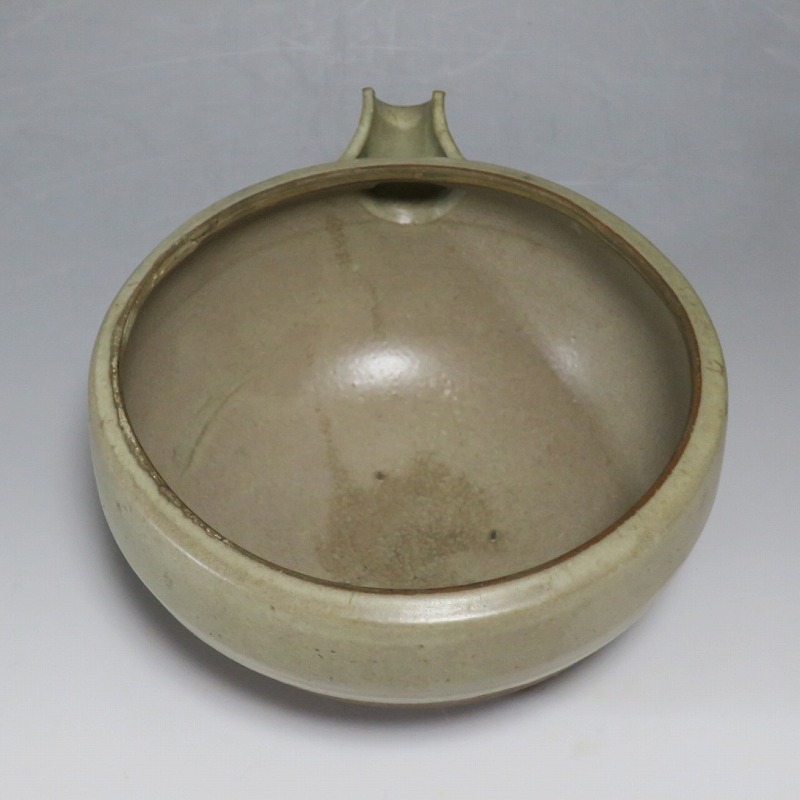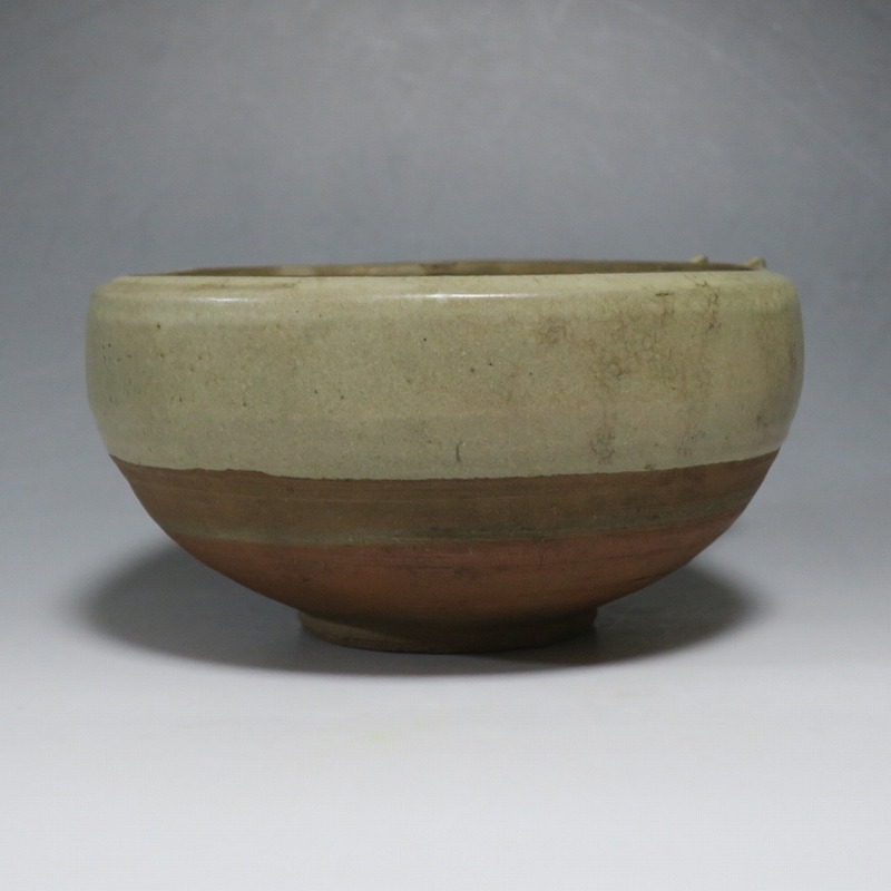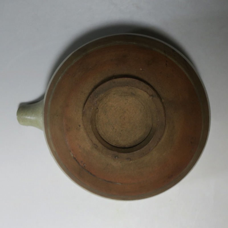 口径 約13.5cm/胴径 約15.3cm/横幅 約18cm 窯傷はありますが完品です。状態は写真でご確認ください。 丹波焼は、兵庫県今田町周辺で生産される焼物で鎌倉時代初期から現在まで窯が続いています。 江戸時代後期に窯が立杭へ移ると丹波焼の陶技も多彩になり、様々な意匠の作品が製作されるようになります。本品は幕末期前後に作られた灰釉の片口。酒屋などで量り売りをする時に使用された道具です。現在、片口は焼酎容器や料理鉢として使われています。本品を使って郷土料理などを食べると楽しいでしょう。 | ||