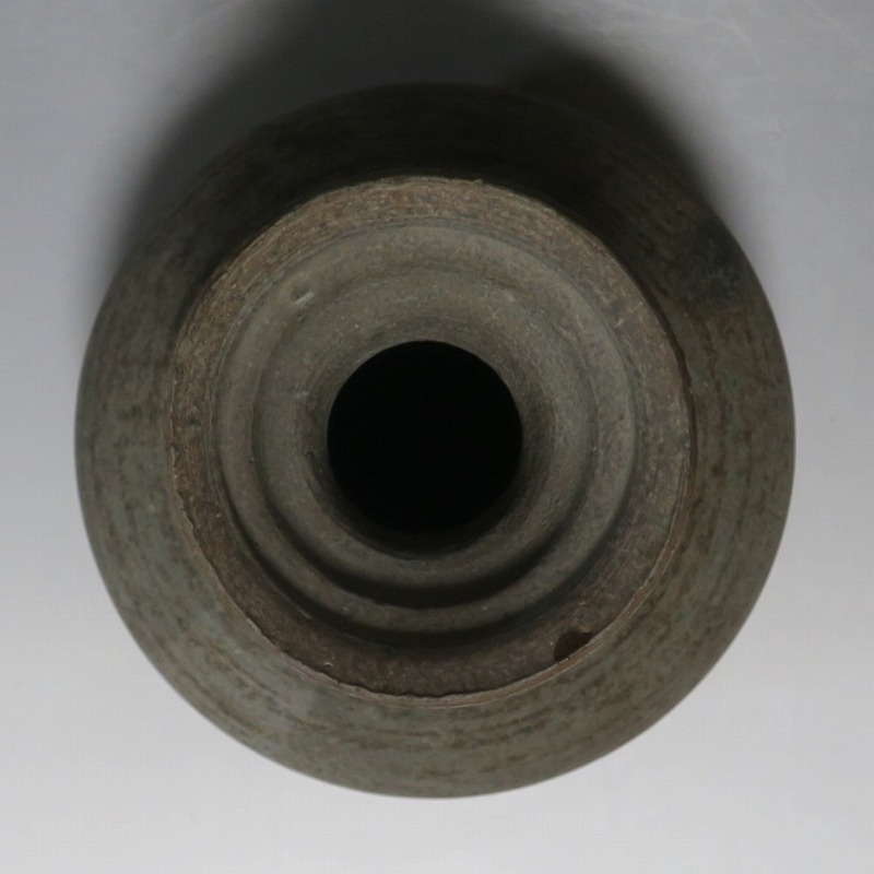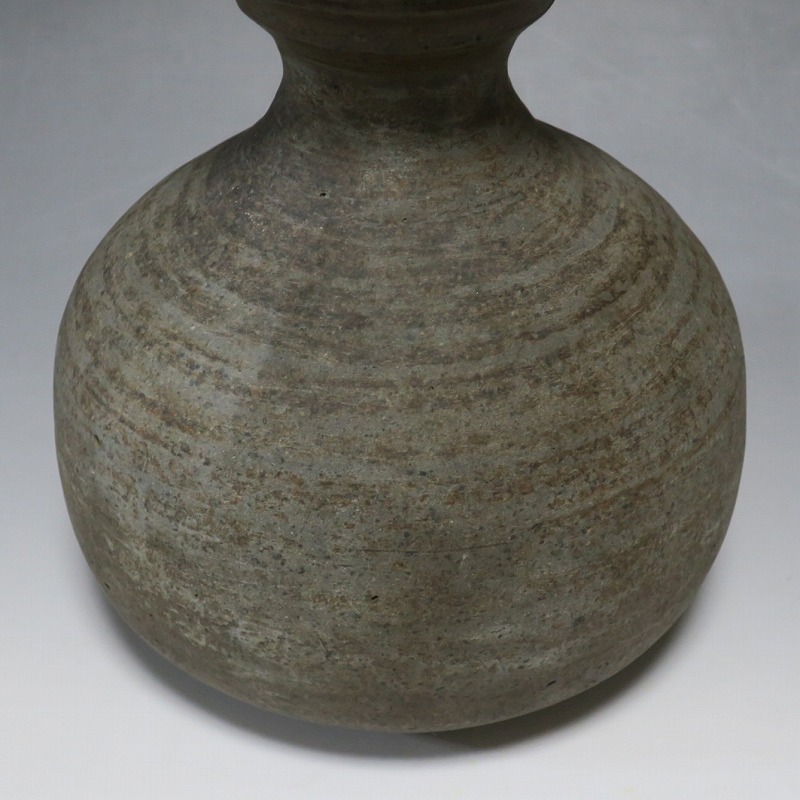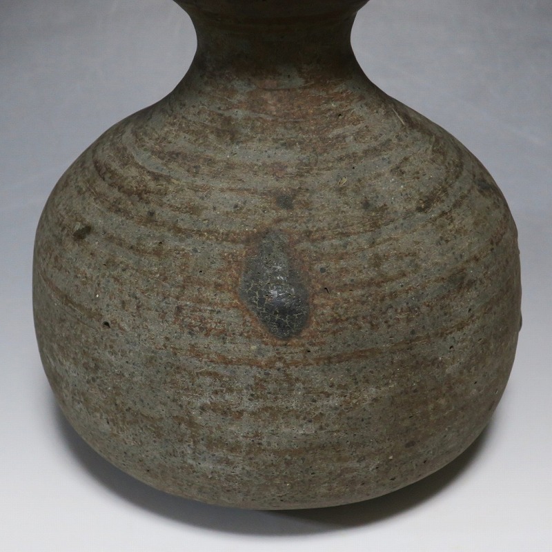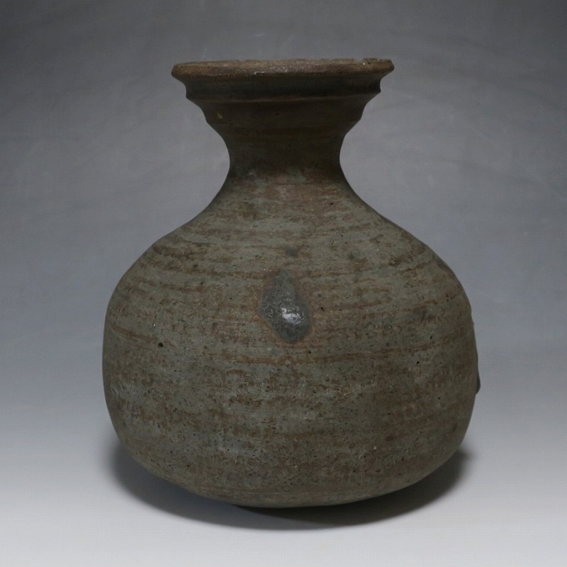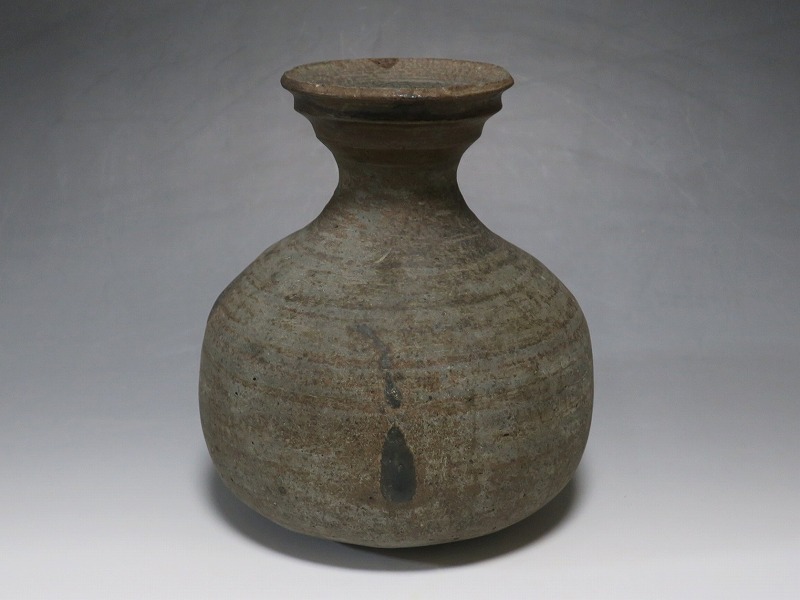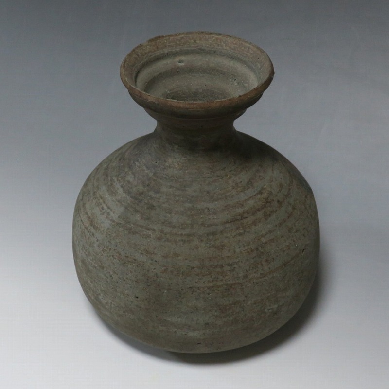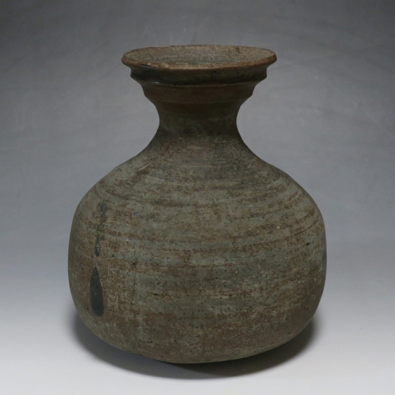 (カンボジア 14世紀) 商品番号 4028 高さ 約20.3cm/胴径 約18.4cm/口径 約10cm 口辺に若干の欠けがありますが、総じて良い状態です。状態は写真でご確認ください。 クメール王朝は9世紀から15世紀まで続いたクメール人(カンボジア)の王国です。11世紀から12世紀になると褐釉を掛けたクメール陶器が盛んに作られるようになりました。本品は14世紀前後に焼き締めで製作された壺。銅器の壺などを写した陶器作品です。胴部に数カ所、釉薬の溜まりがありアクセントになっています。日本の中世陶に似た雰囲気があります。インテリア、花器としてお楽しみください。 | ||