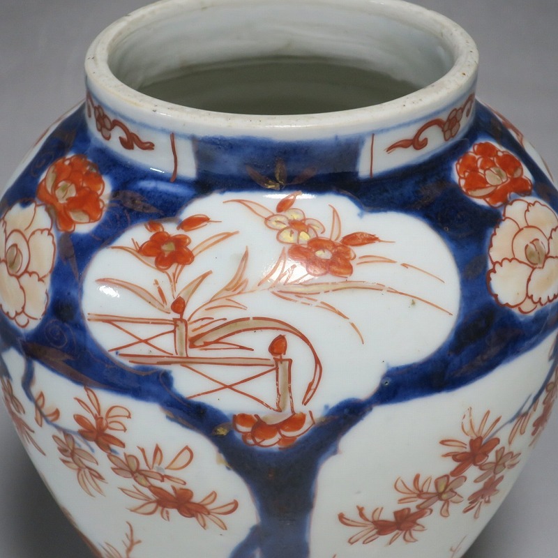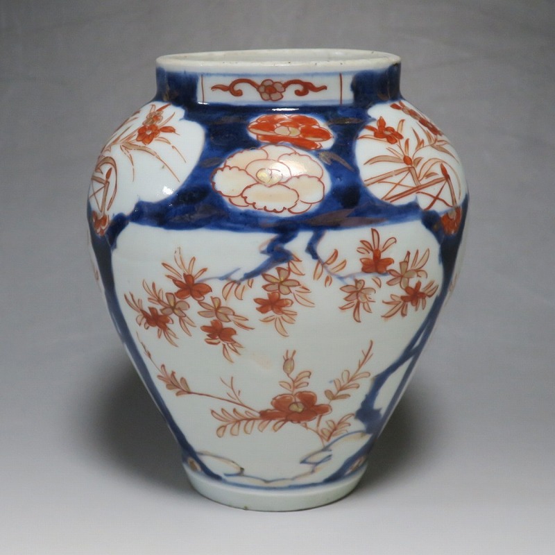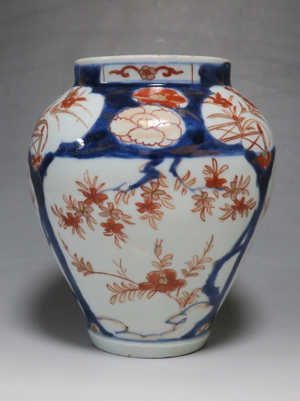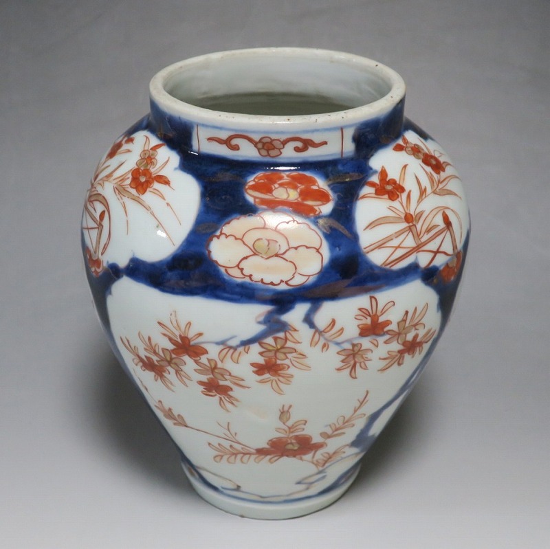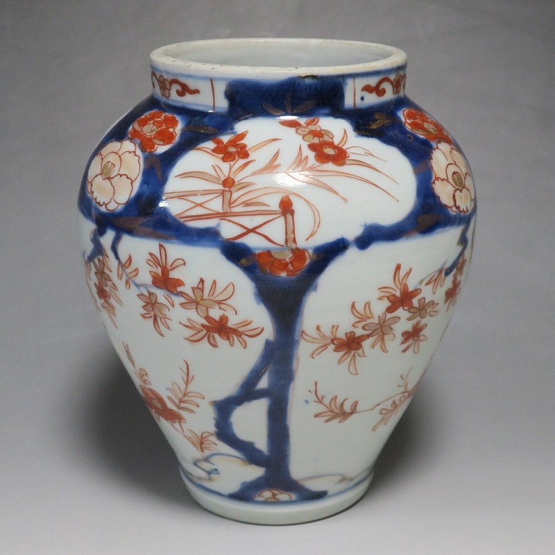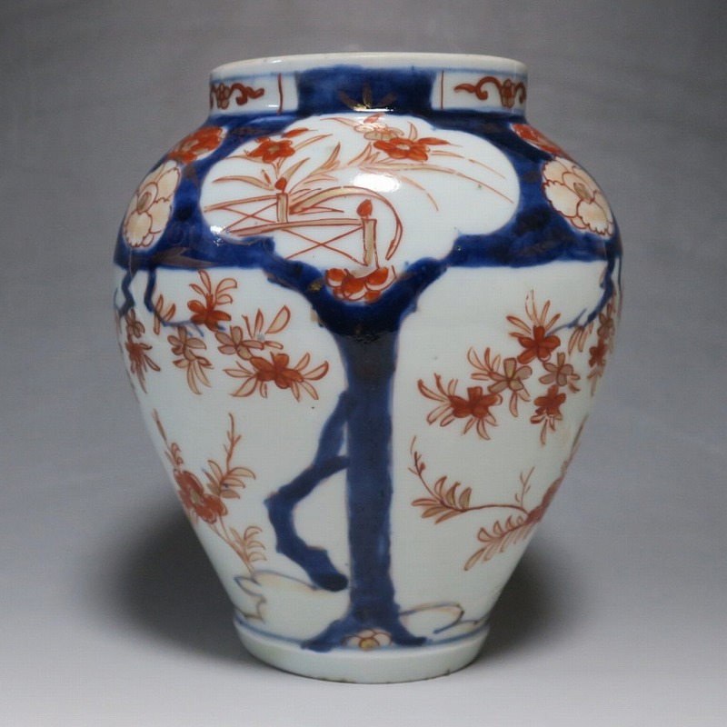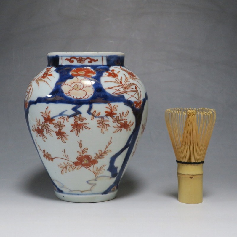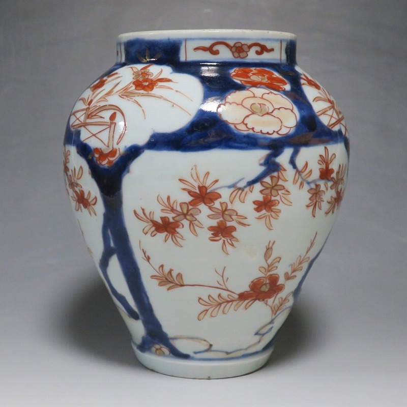 高さ 約17.5cm/胴径 約15cm 蓋はありませんが、総じて良い状態です。状態は写真でご確認ください。 元禄時代まで伊万里焼は公家や上級武士の贈答品として扱われた高級品でした。当時、最高峰の技術者たちが最高の材料を使って作品を製作、現在でもその時代の伊万里焼の美しさは人々を魅了しています。本品は色絵染付で桜やあやめなどの花文を描いた沈香壺。通称「元禄伊万里」と呼ばれるヨーロッパに輸出した作品です。かわいい花が明るさを表現しています。インテリアとしてお楽しみください。 | ||