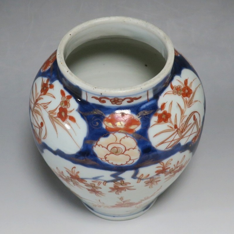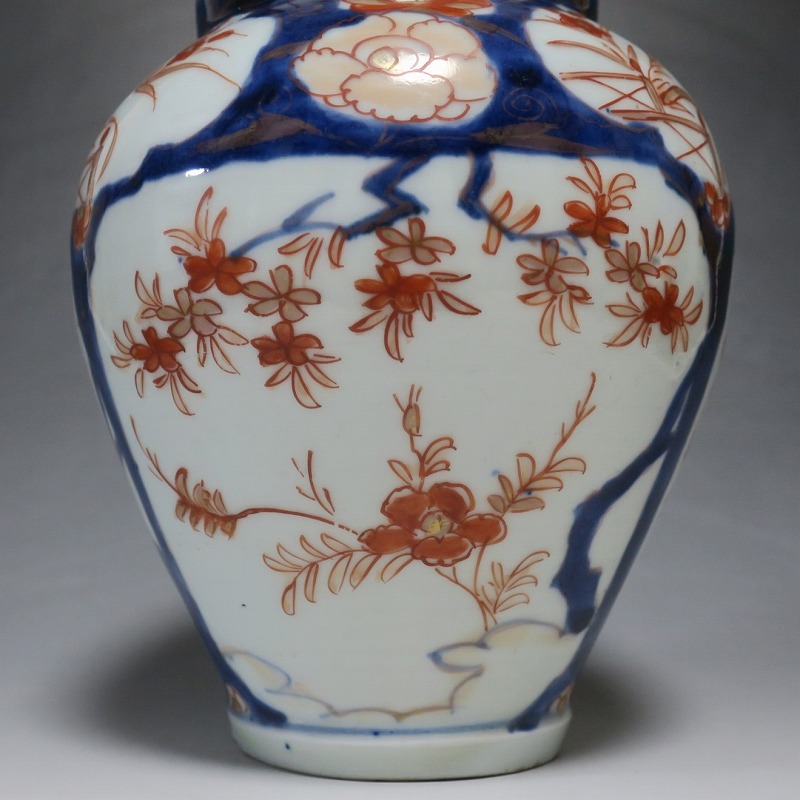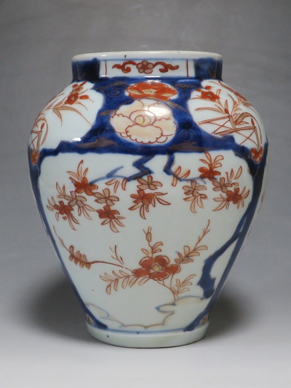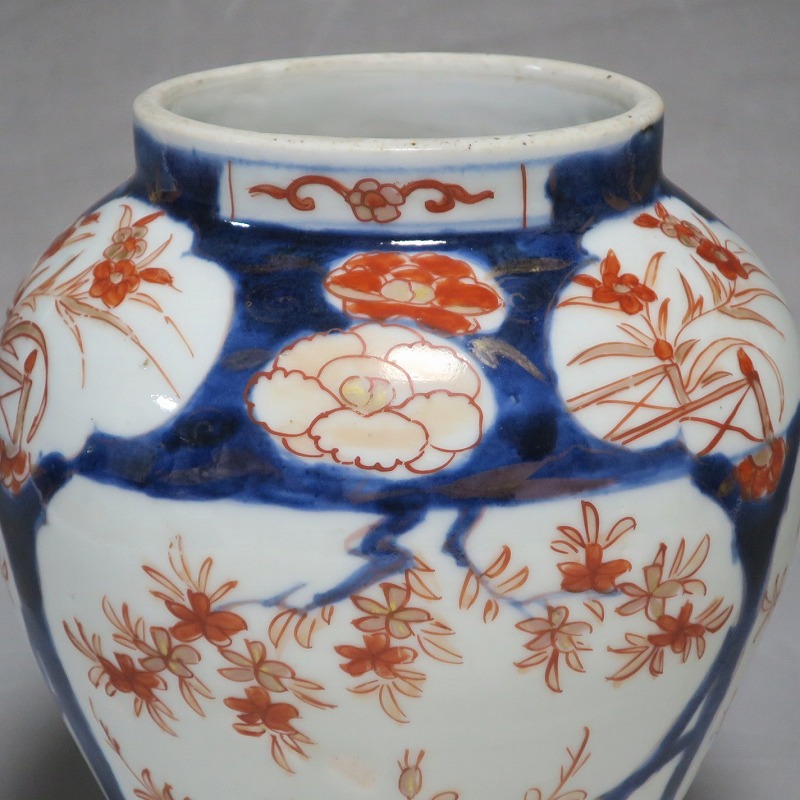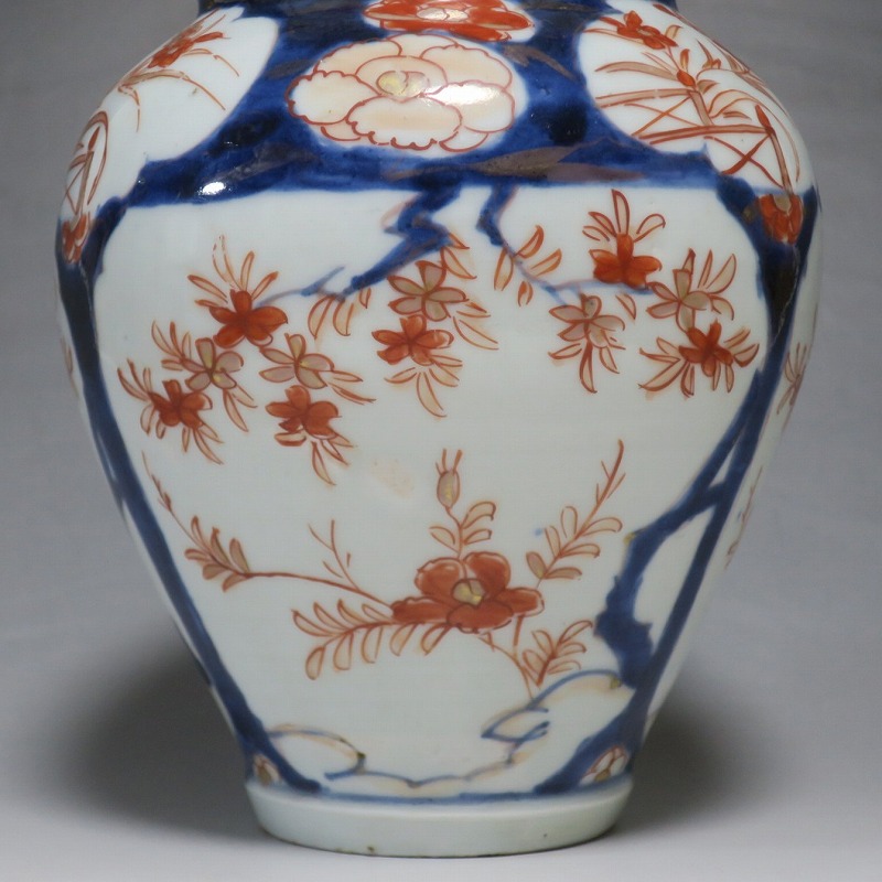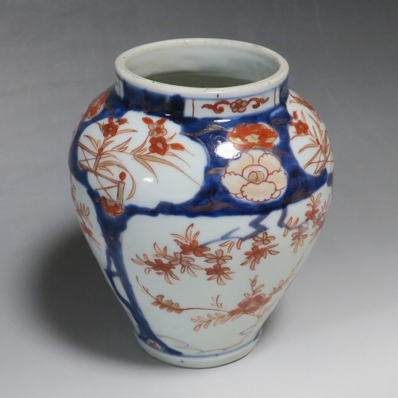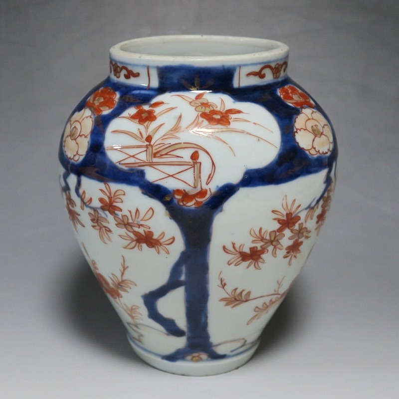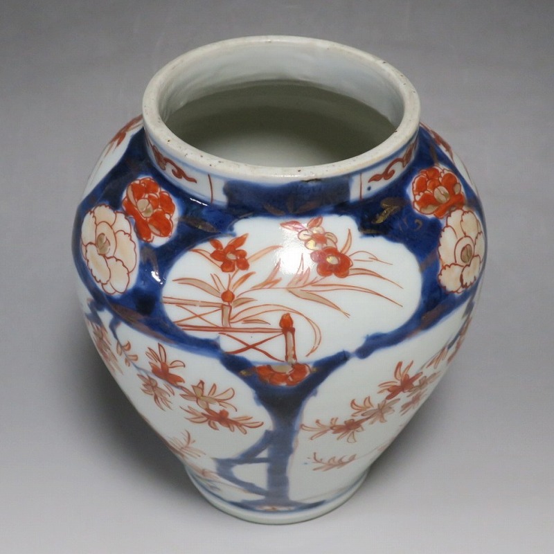 高さ 約17.5cm/胴径 約15cm 蓋はありませんが、総じて良い状態です。状態は写真でご確認ください。 元禄時代まで伊万里焼は公家や上級武士の贈答品として扱われた高級品でした。当時、最高峰の技術者たちが最高の材料を使って作品を製作、現在でもその時代の伊万里焼の美しさは人々を魅了しています。本品は色絵染付で桜やあやめなどの花文を描いた沈香壺。通称「元禄伊万里」と呼ばれるヨーロッパに輸出した作品です。かわいい花が明るさを表現しています。インテリアとしてお楽しみください。 | ||