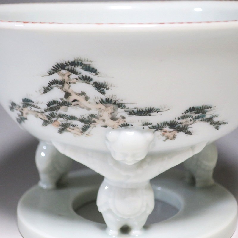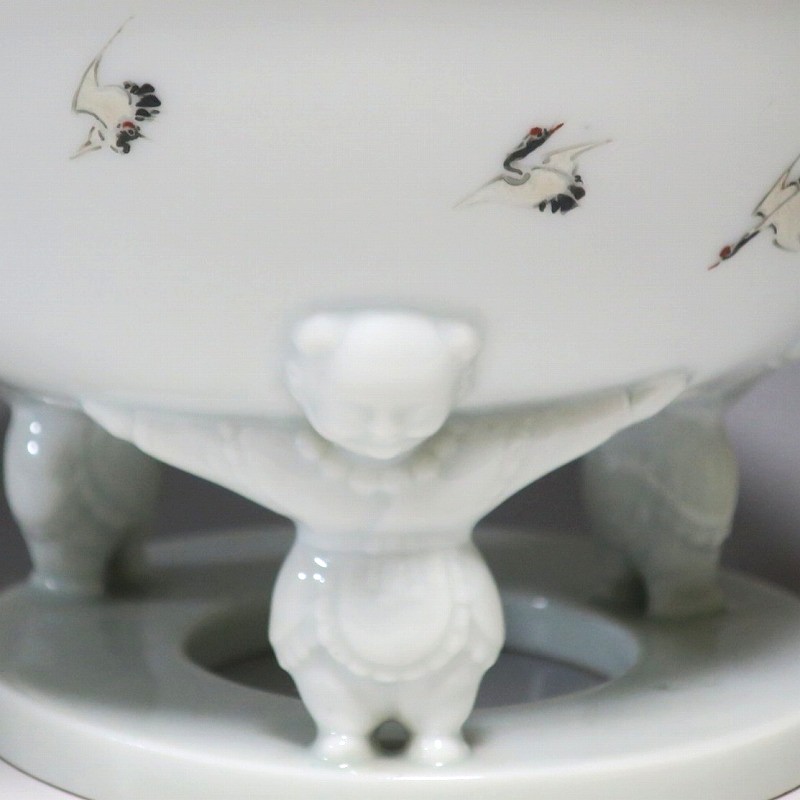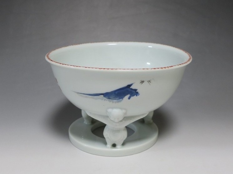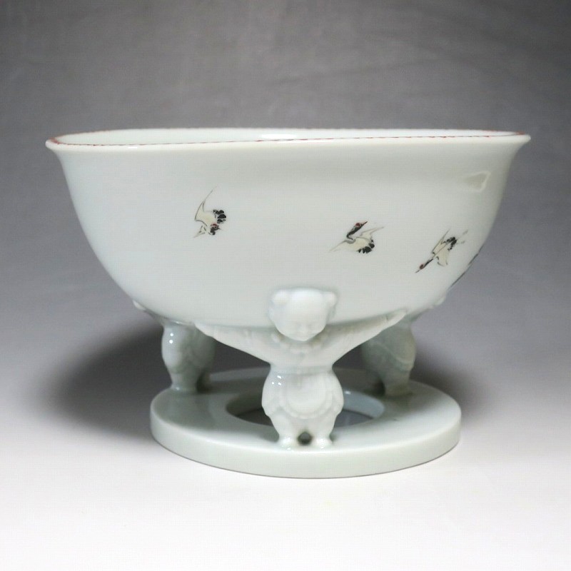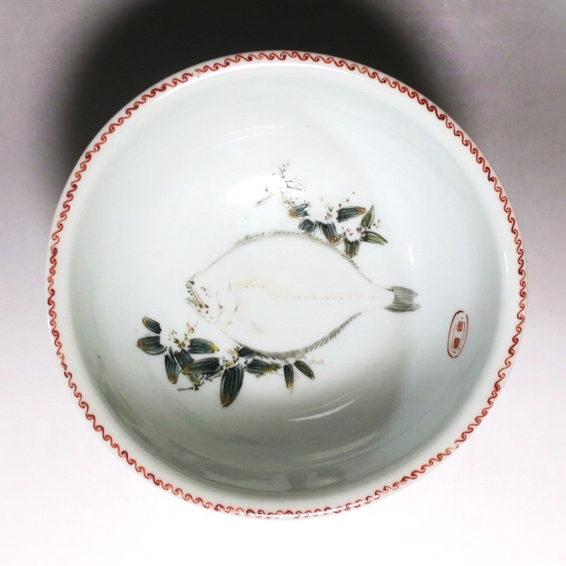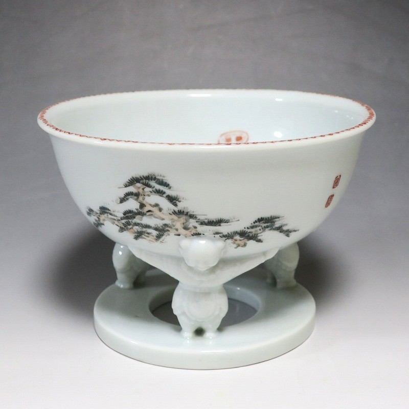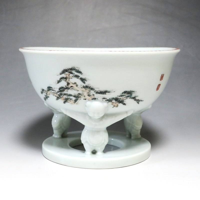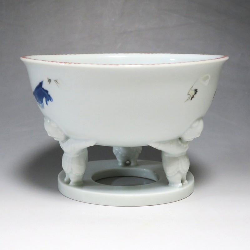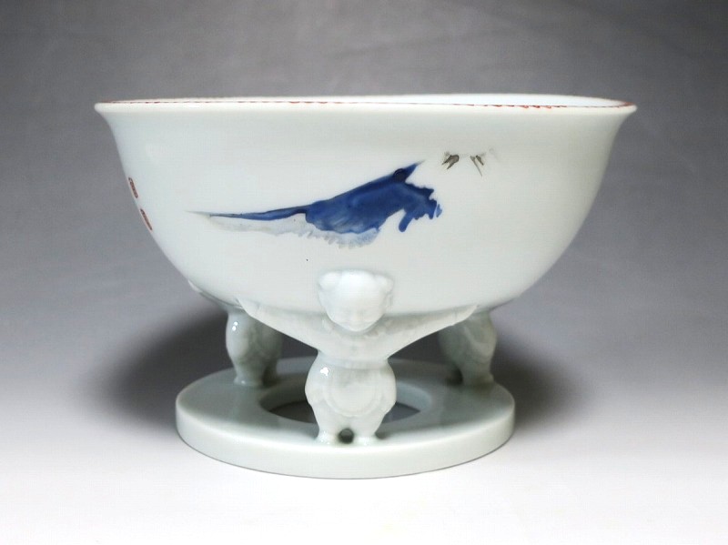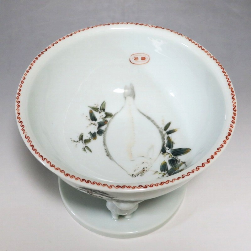 渋草焼 色絵 ヒラメ文 唐子三脚 杯洗