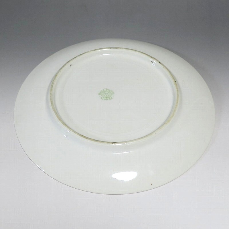 (大正時代 20世紀前半) 商品番号 4068 口径 約22.4cm/高さ 約2.5cm/高台径 約14cm 窯傷はありますが、完品です。状態は写真でご確認ください。 「オールドノリタケ」は日本陶器合名会社(現ノリタケ・カンパニー・リミティッド)が明治時代から戦前に欧米へ輸出した陶磁器の名称です。芸術的な絵付けや繊細な細工が施された作品は現在でも人気があります。本品は色絵で秋の公園を描いた7.5寸皿。紅葉した木々と鳥の飛ぶ池が描かれています。1911年(明治44年)から使用されたアメリカ輸出向けのマークが入っています。飾ると季節感を楽しむことができるでしょう。 | ||