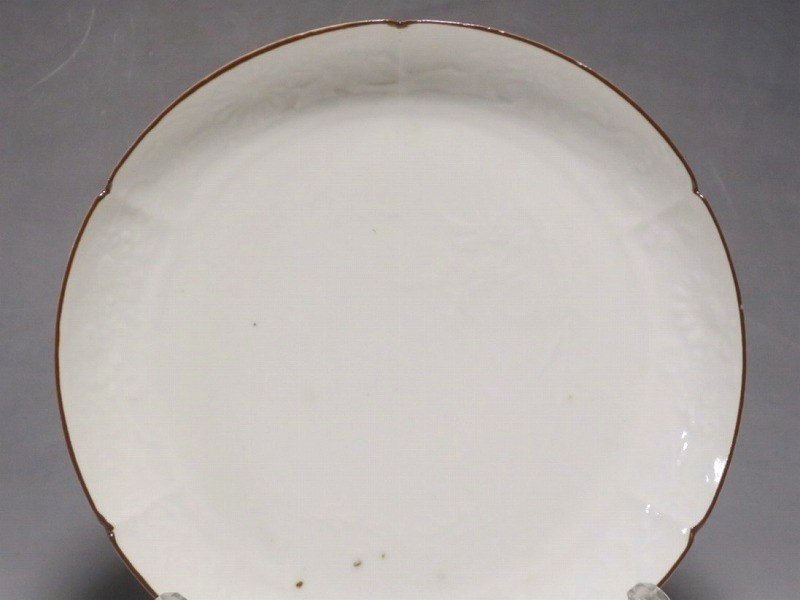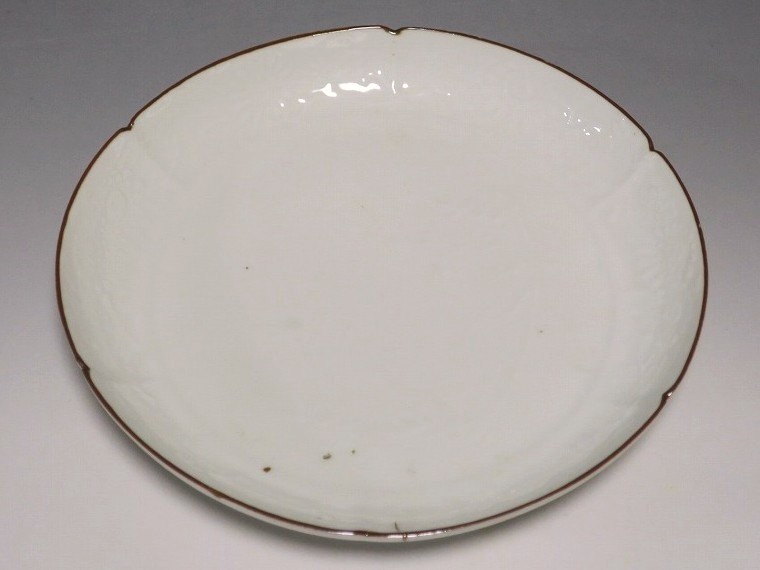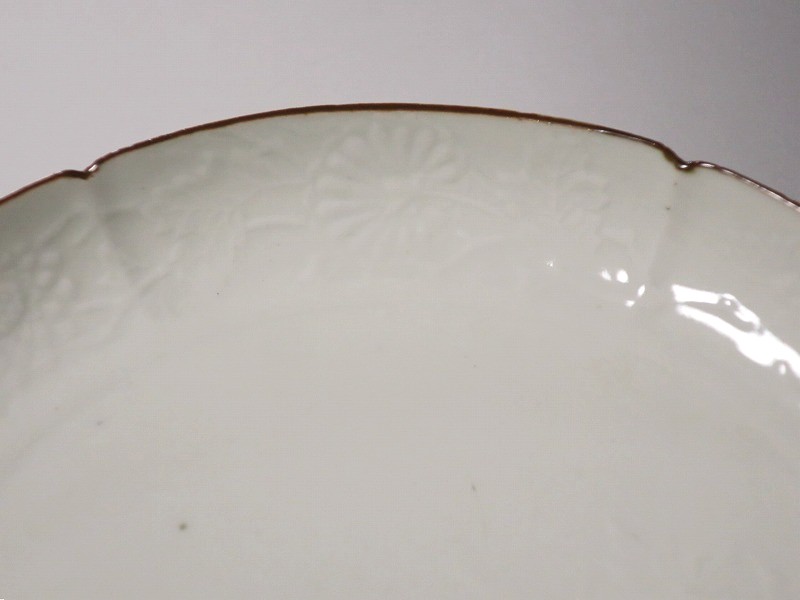 伊万里焼 白磁陽刻 輪花 菊文 六寸皿