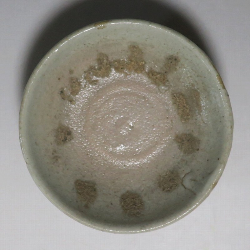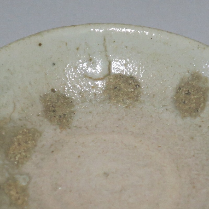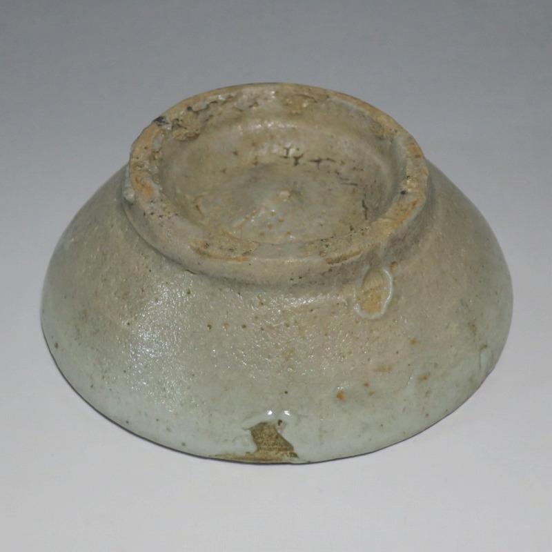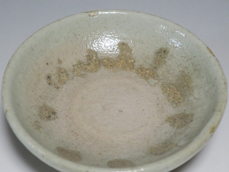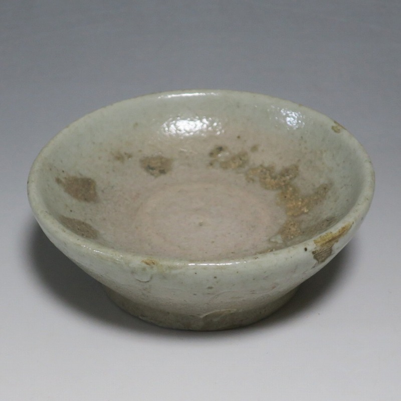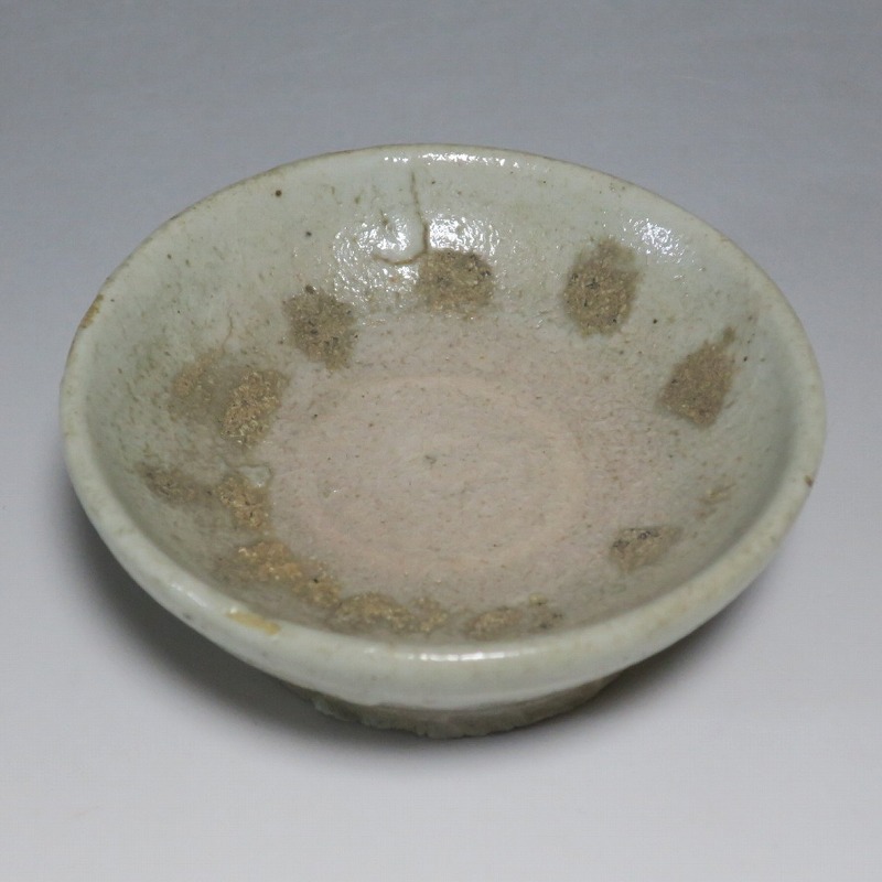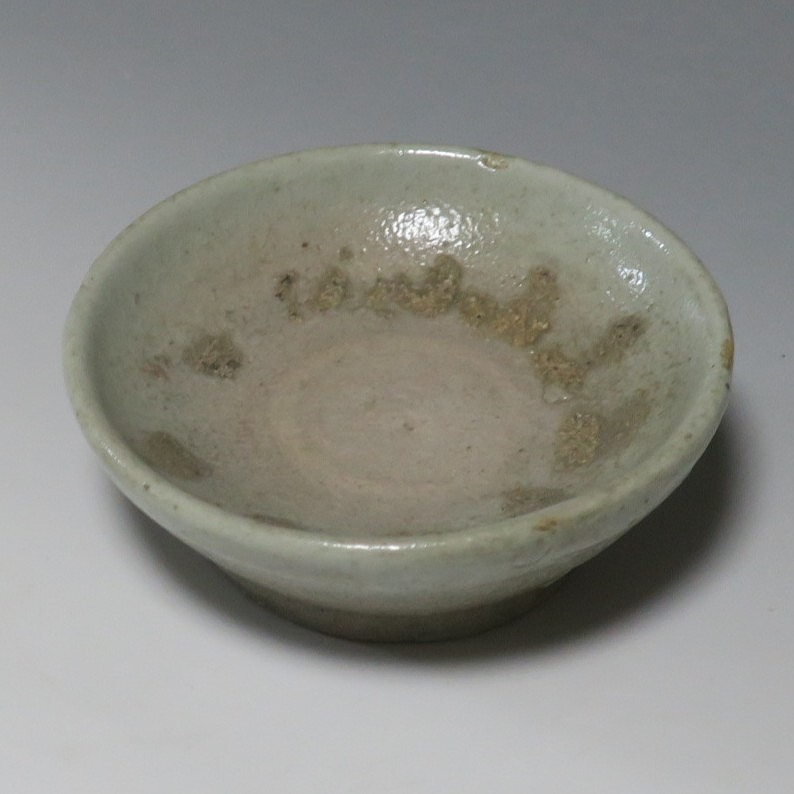 (李朝時代後期 19世紀前半) 商品番号 4084 口径 約9.7cm/高さ 約3.5cm/高台径 約6cm 窯傷はありますが完品です。状態は写真でご確認ください。 李朝には日本の唐津焼、萩焼などのルーツとなる陶器作品があります。それらの作品は暖色をしているので温かさを感じさせてくれます。本品は李朝時代後期に作られた灰釉の小皿。萩焼のような肌合いをした作品です。見込みの目跡が景色となっています。市場で見かけないタイプの珍しい作品。日本酒を飲む時の酒の当てを盛ると雰囲気が出るでしょう。 | ||