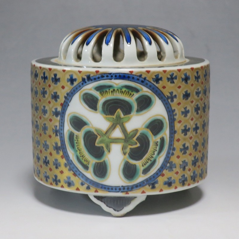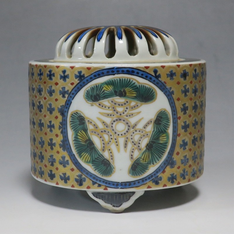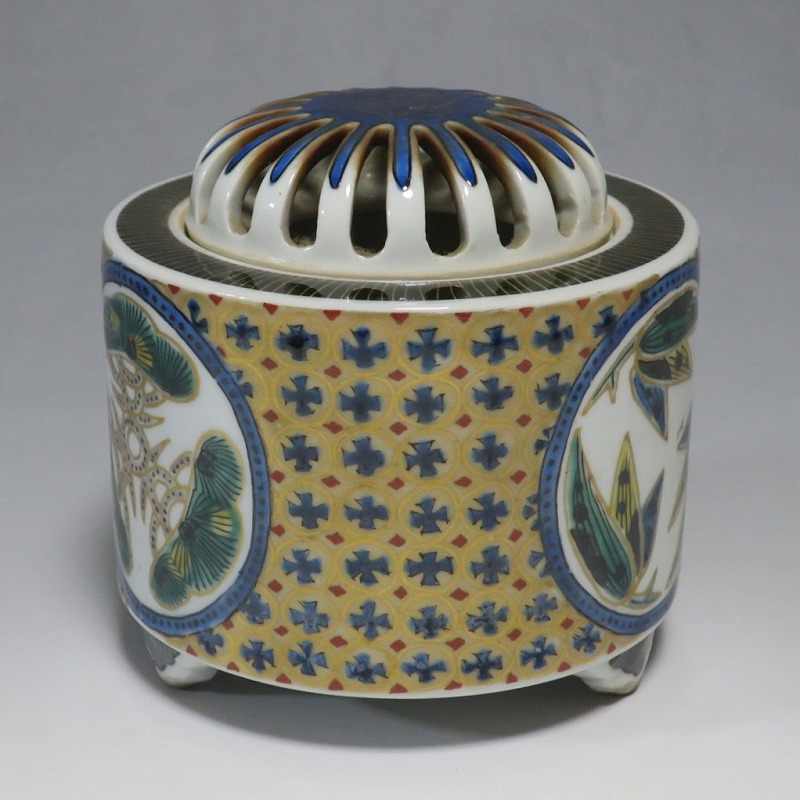 在銘 九谷焼 色絵 松竹梅文 香炉