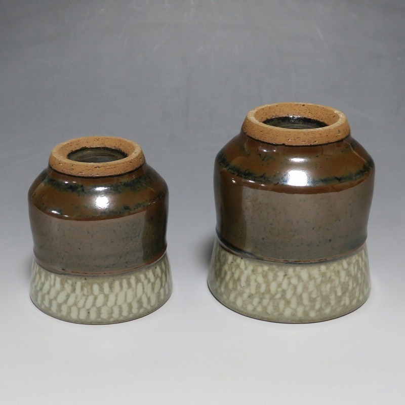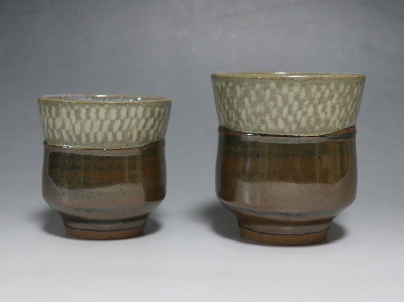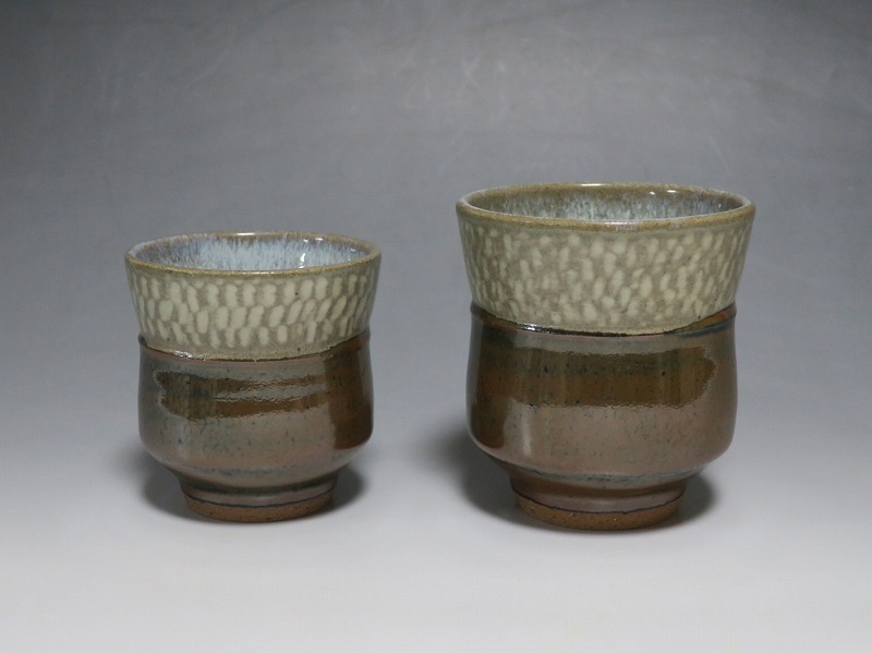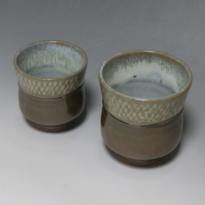 島岡達三 象嵌海鼠釉 鉄釉 夫婦湯呑 一対