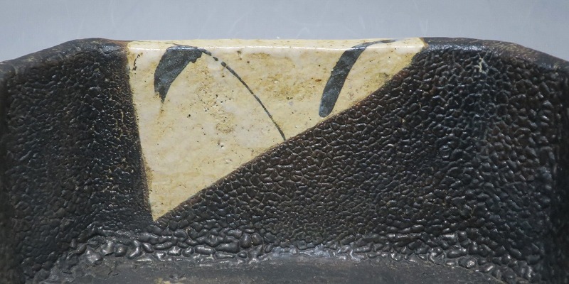 美濃焼 黒織部 草文 隅切り大鉢