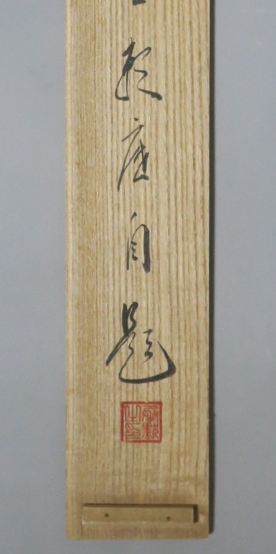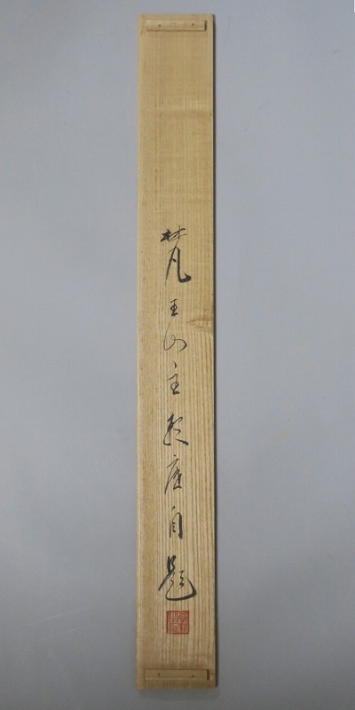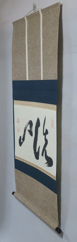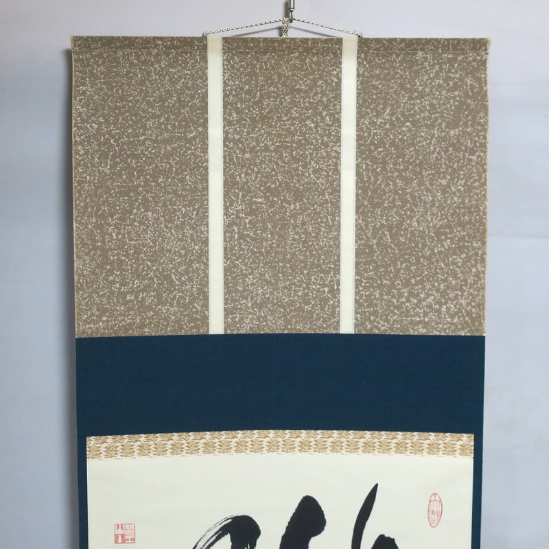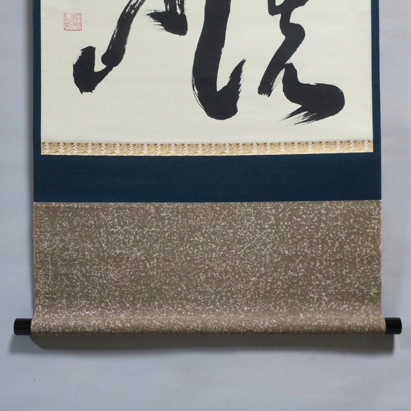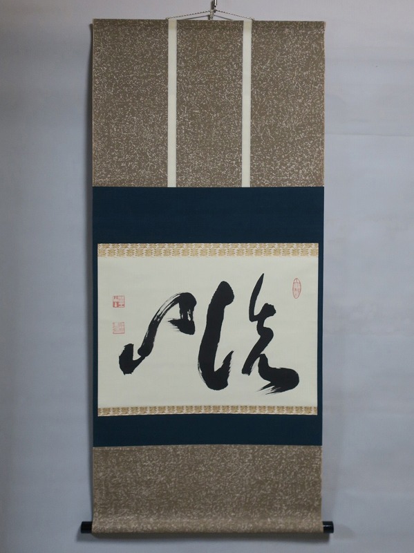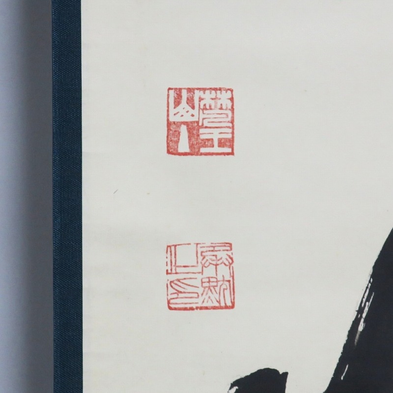 本紙サイズ 縦横 37cm×53.8cm 紙本肉筆。経年のシミや汚れ、折れがありますが、総じて良い状態です。状態は写真でご確認ください。 有馬 ョ底(らいてい、1933年〜東京生まれ)は、日本の禅僧です。久留米藩主有馬家(赤松氏流)に生まれ、臨済宗相国寺派管長となりました。1995年に相国寺、金閣寺(鹿苑寺)、銀閣寺(慈照寺)の3か寺の住職を兼ね、相国寺承天閣美術館の館長に就任しました。本品は有馬が書いた「洗心」の書。芸術文化に造形の深い僧らしい個性的な書に仕上がっており、水墨画を見るような感じがします。飾ると臨済宗の雰囲気を味わうことができるでしょう。 | ||