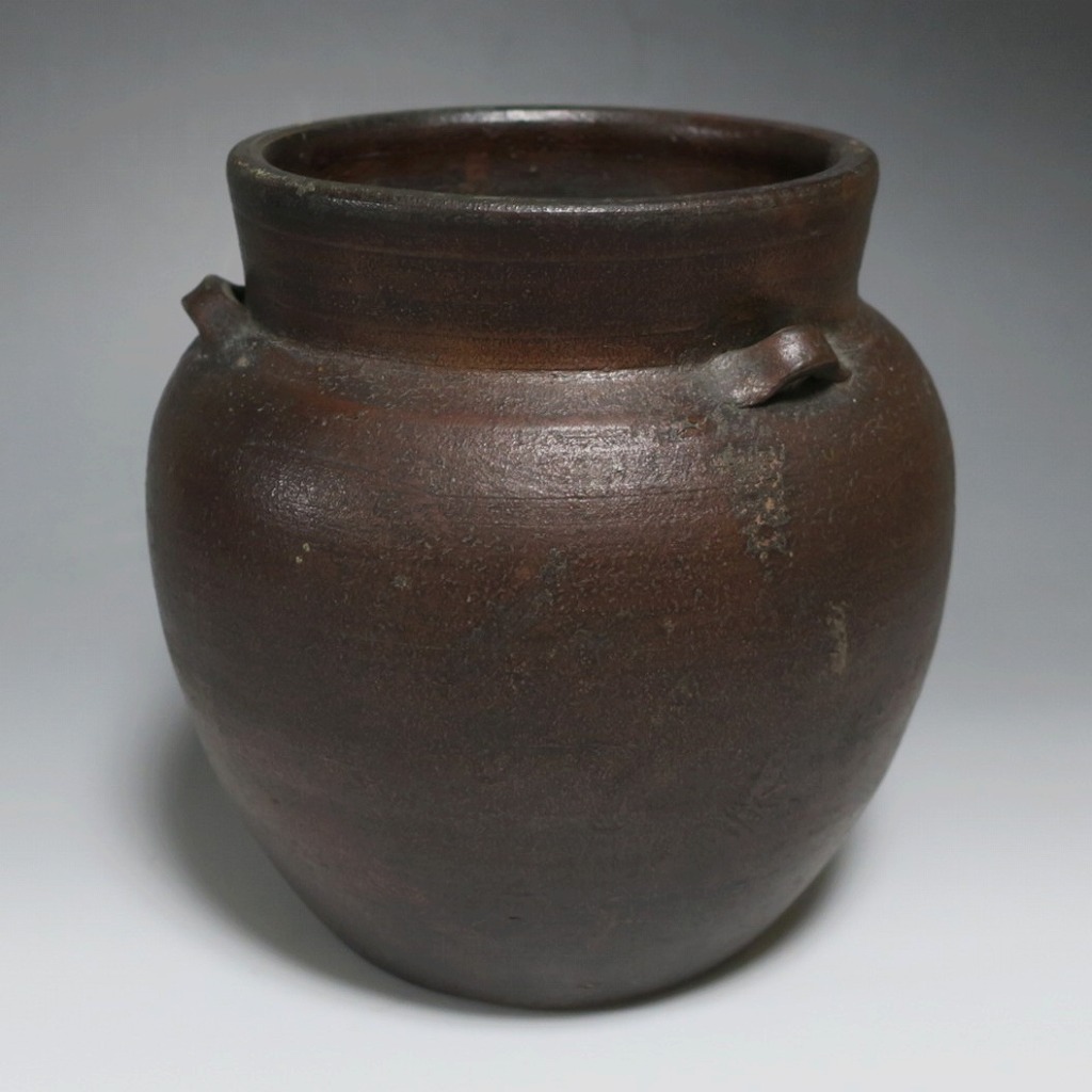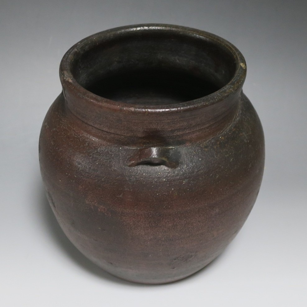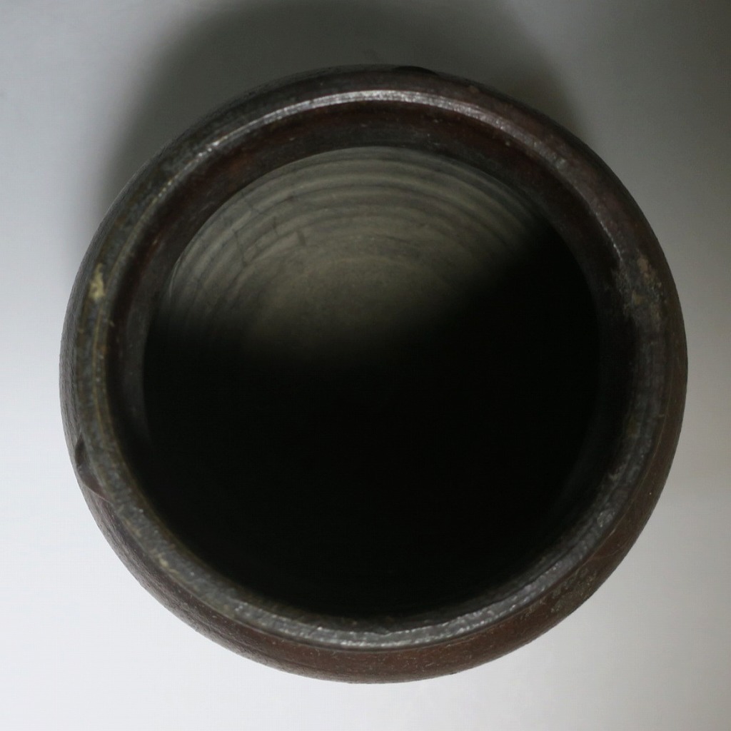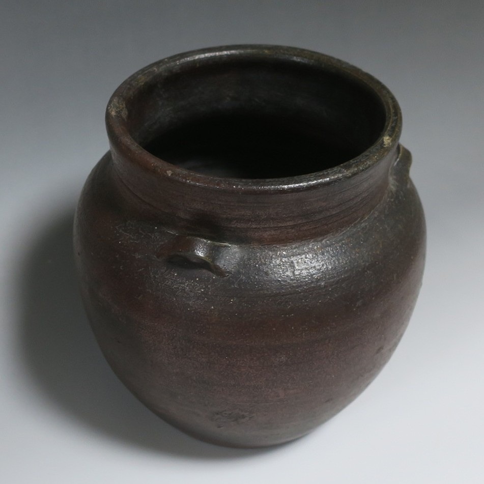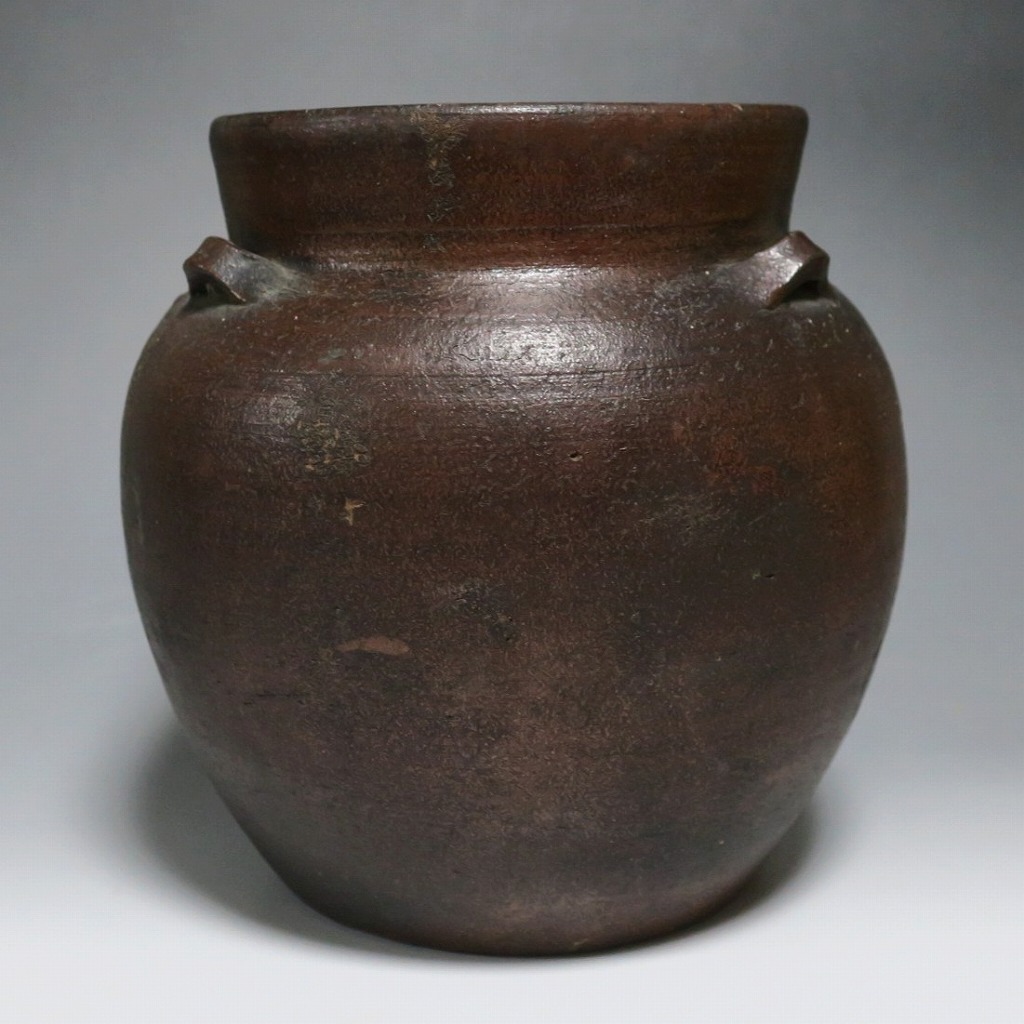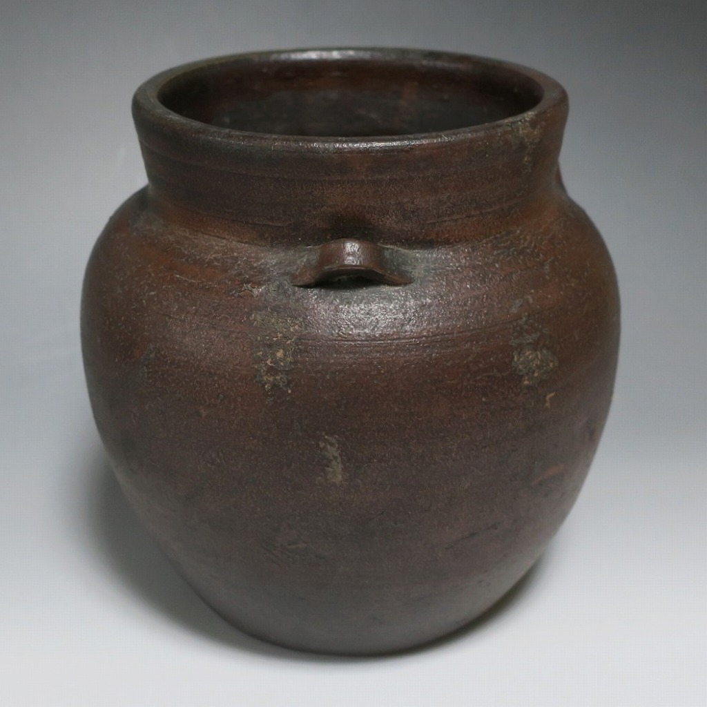 高さ 約19.5cm/胴径 約19cm 窯傷はありますが、総じて良い状態です。状態は写真でご確認ください。 備前焼は、古代から備前市周辺(岡山県)で製作される須恵器(b器)の流れを汲む焼物です。中世六古窯の一つで桃山時代は茶陶を作る窯として栄え、現在に至っています。本品は生活雑器として作られた三耳壺。種もみや銭などを保存する容器です。珍しい三耳が付いた胴部に丸みのある作品。備前焼独特の雰囲気があります。インテリア、花器としてお楽しみください。 | ||