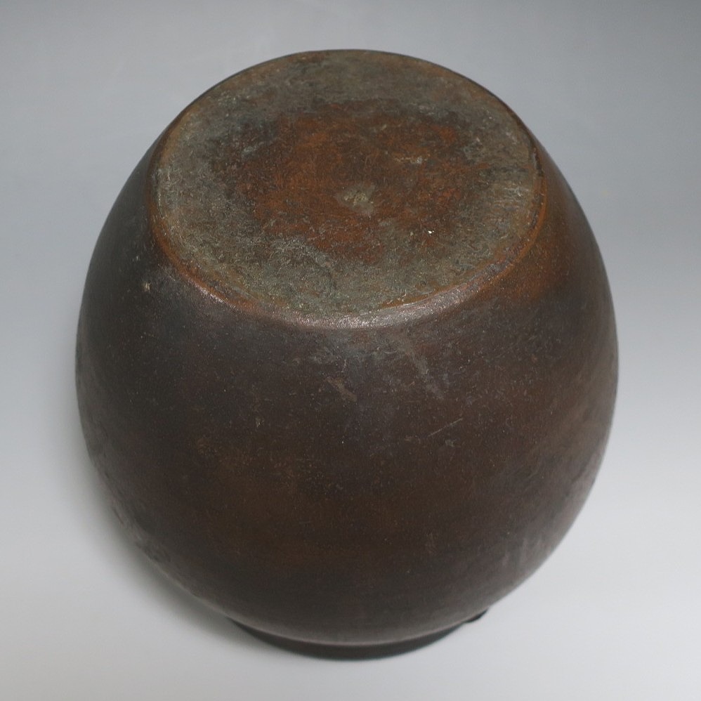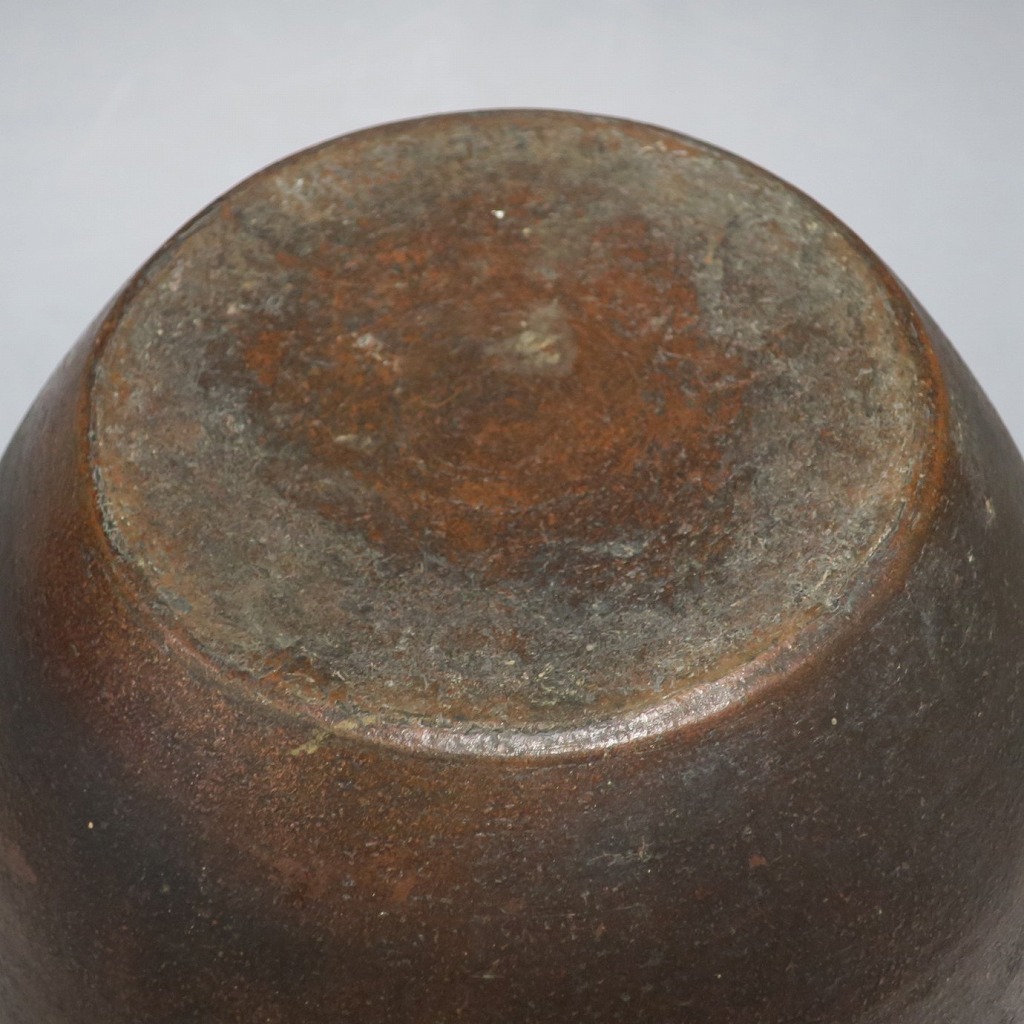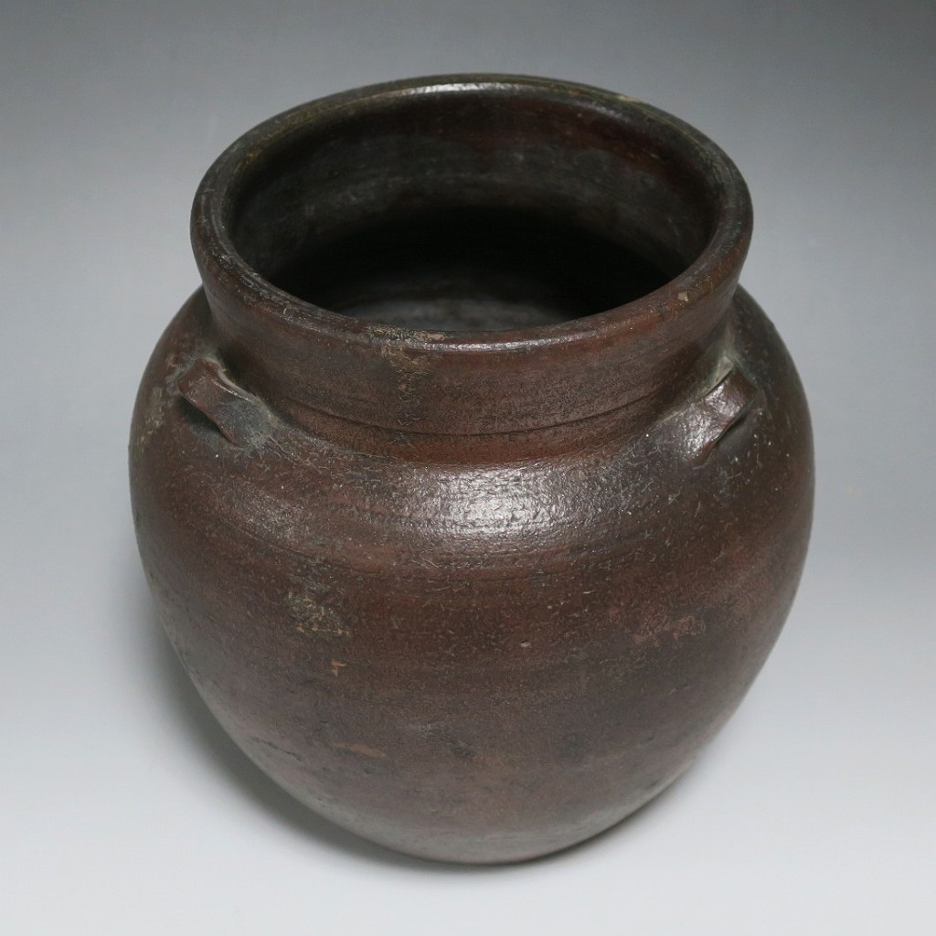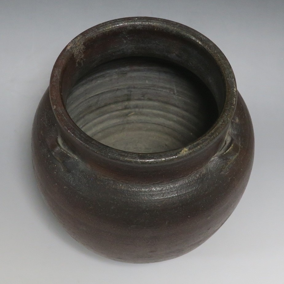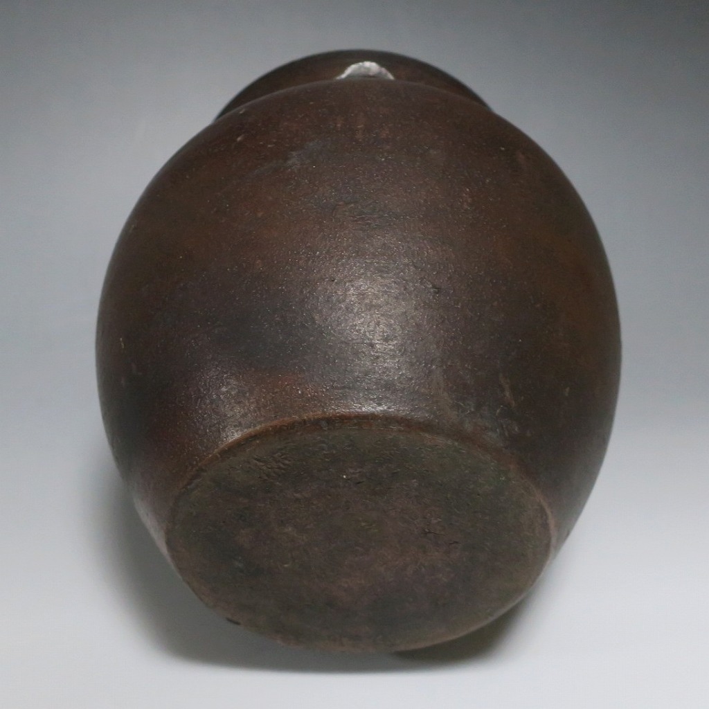 高さ 約19.5cm/胴径 約19cm 窯傷はありますが、総じて良い状態です。状態は写真でご確認ください。 備前焼は、古代から備前市周辺(岡山県)で製作される須恵器(b器)の流れを汲む焼物です。中世六古窯の一つで桃山時代は茶陶を作る窯として栄え、現在に至っています。本品は生活雑器として作られた三耳壺。種もみや銭などを保存する容器です。珍しい三耳が付いた胴部に丸みのある作品。備前焼独特の雰囲気があります。インテリア、花器としてお楽しみください。 | ||