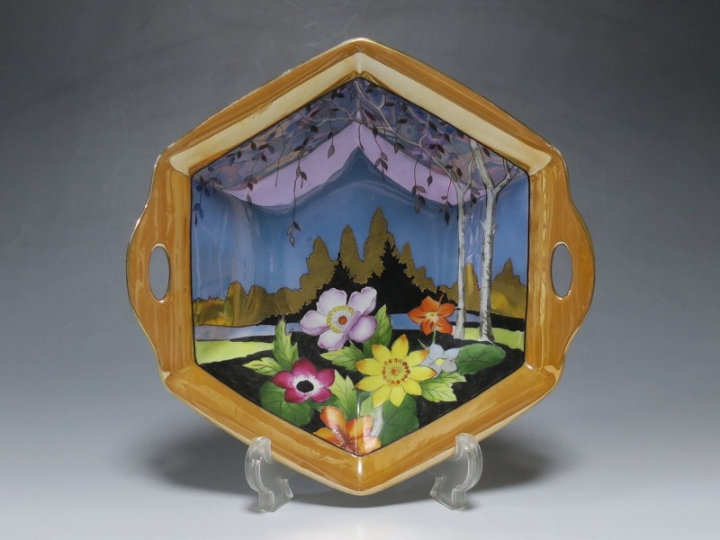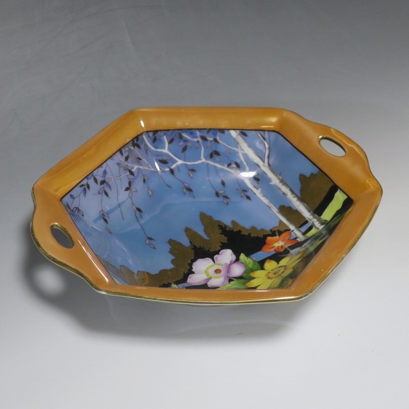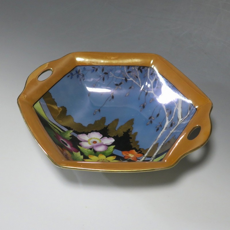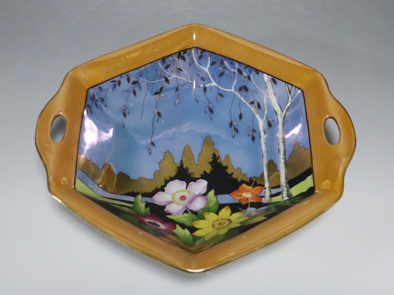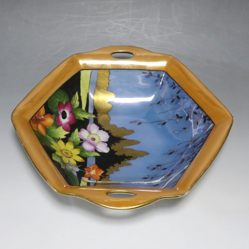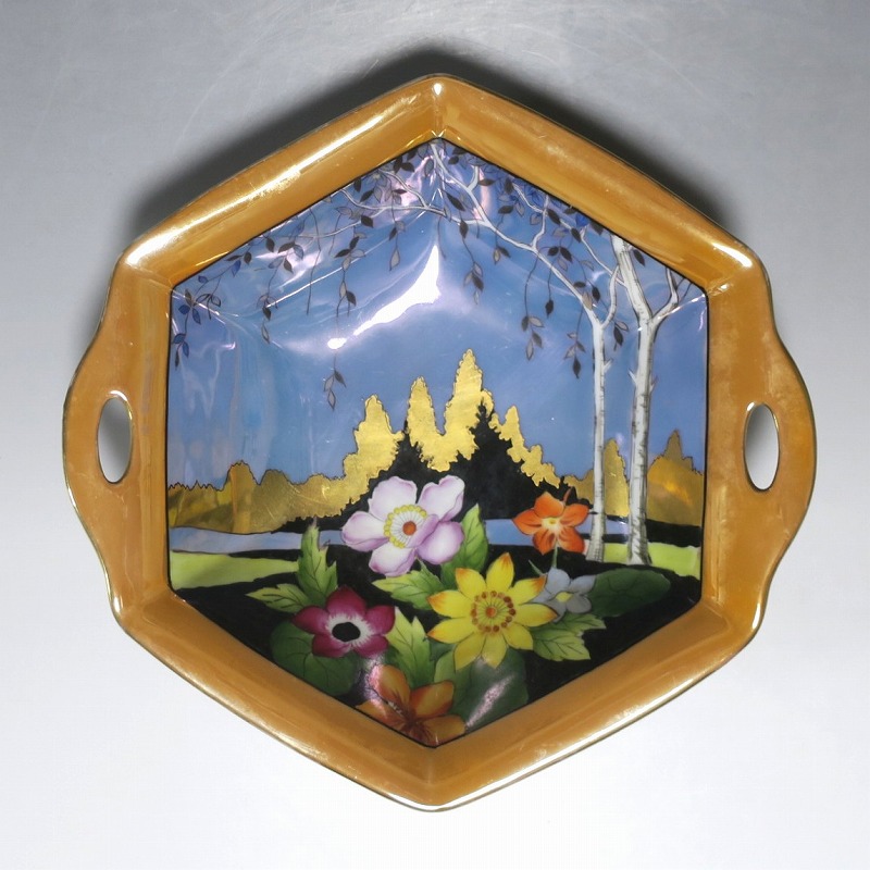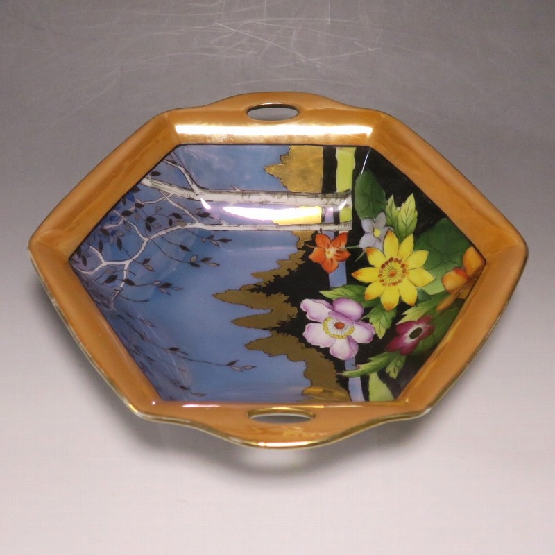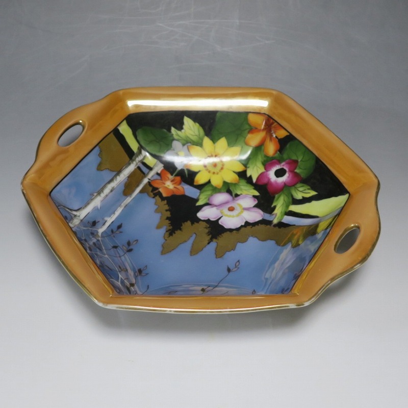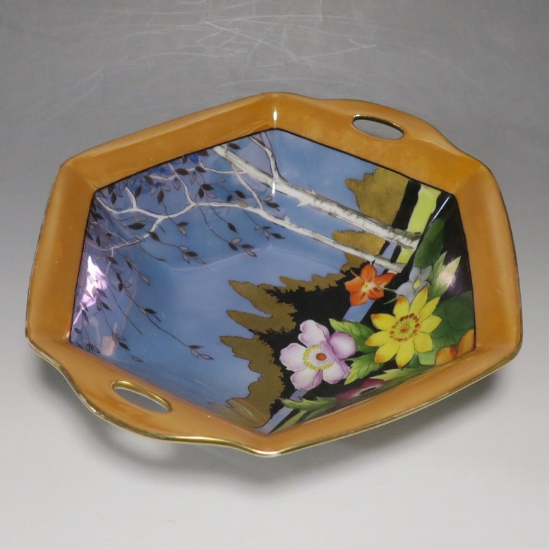 オールドノリタケ ラスターウェアー 花尽くし 六角トレー