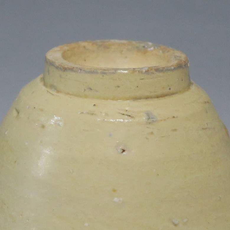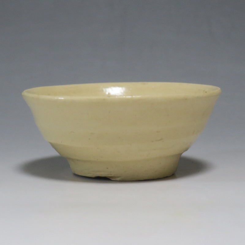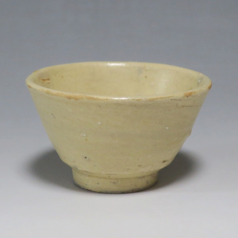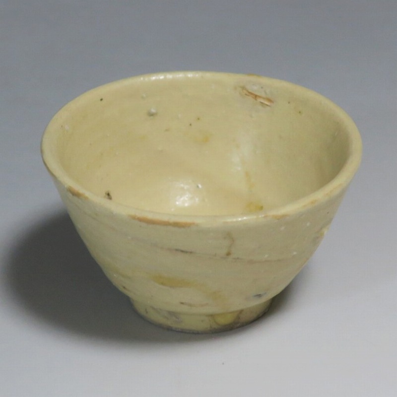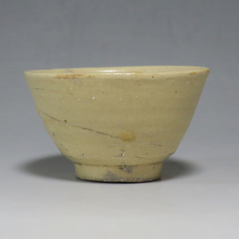 (左)口径 約7.4cm/高さ 約3.2cm/高台径 約4cm 窯傷はありますが、総じて良い状態です。状態は写真でご確認ください。 19世紀末から20世紀初頭に朝鮮半島には外国文化が流入、陶工たちはそれまでなかったタイプの陶磁器作品を始めます。一般的にそのような作品は「大正李朝」と呼ばれ、李朝の近代工芸として人気があります。本品は20世紀初頭に作られた大正李朝の盃2点。2種類の形の違う作品のセットです。平らな盃は水を入れると斑紋が出るので日本酒を飲ませるうちに育っていき、違った景色を味わうことができるでしょう。日本の瀬戸焼の石皿に似た温かい色調をしています。熱燗、ぬる燗が似合いそうな民芸調の酒器です。 | ||
